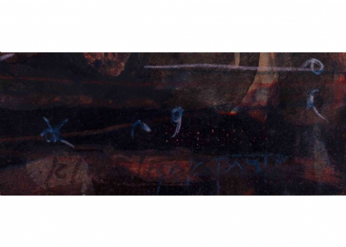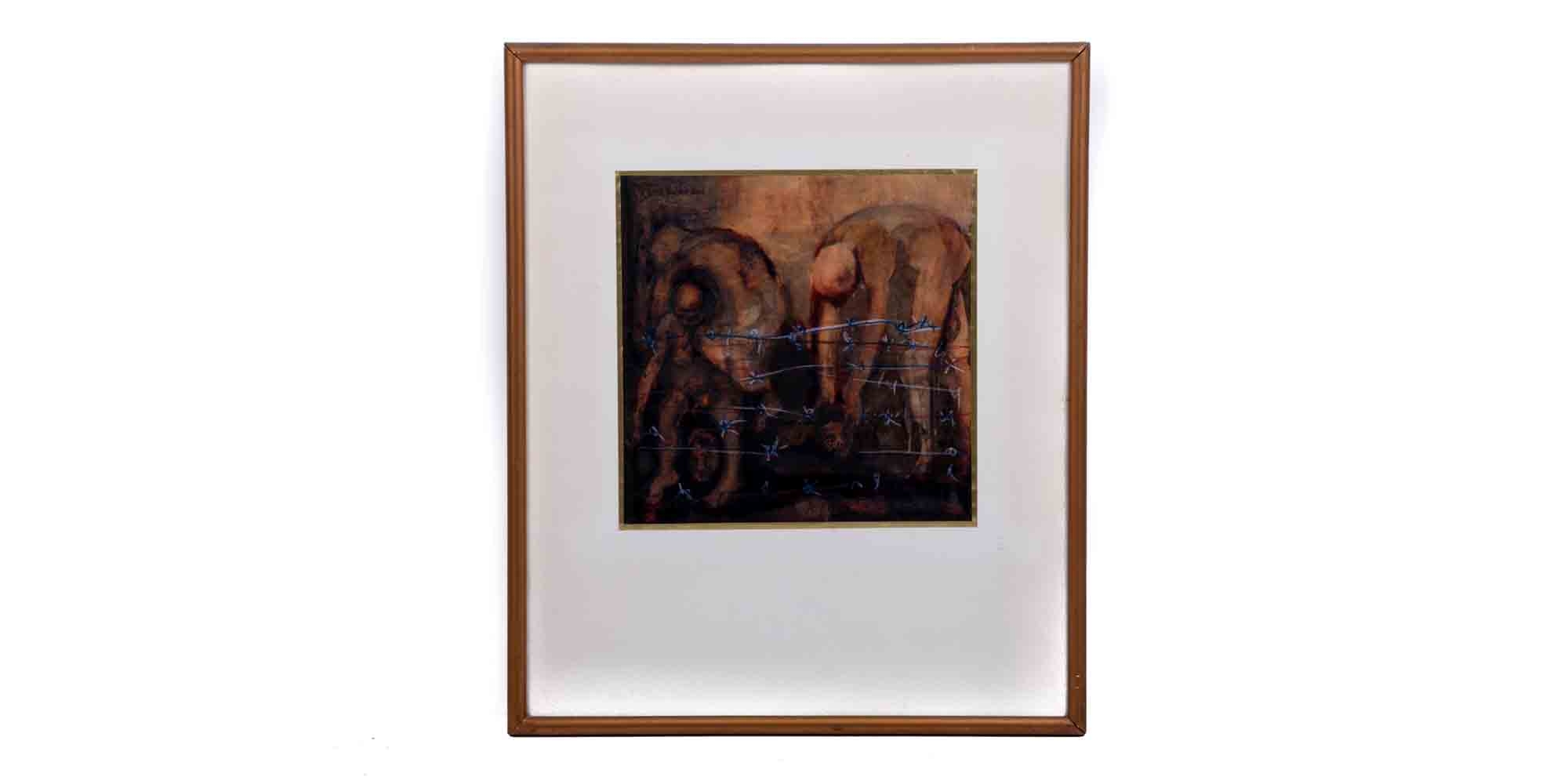 'ערומים בגטו' - ציור ישן, אקוורל על נייר, חתום בחתימה לא ברורה (*נשמח לעזרה בזיהוי האמן), מידות: 22X22 ס"מ.
