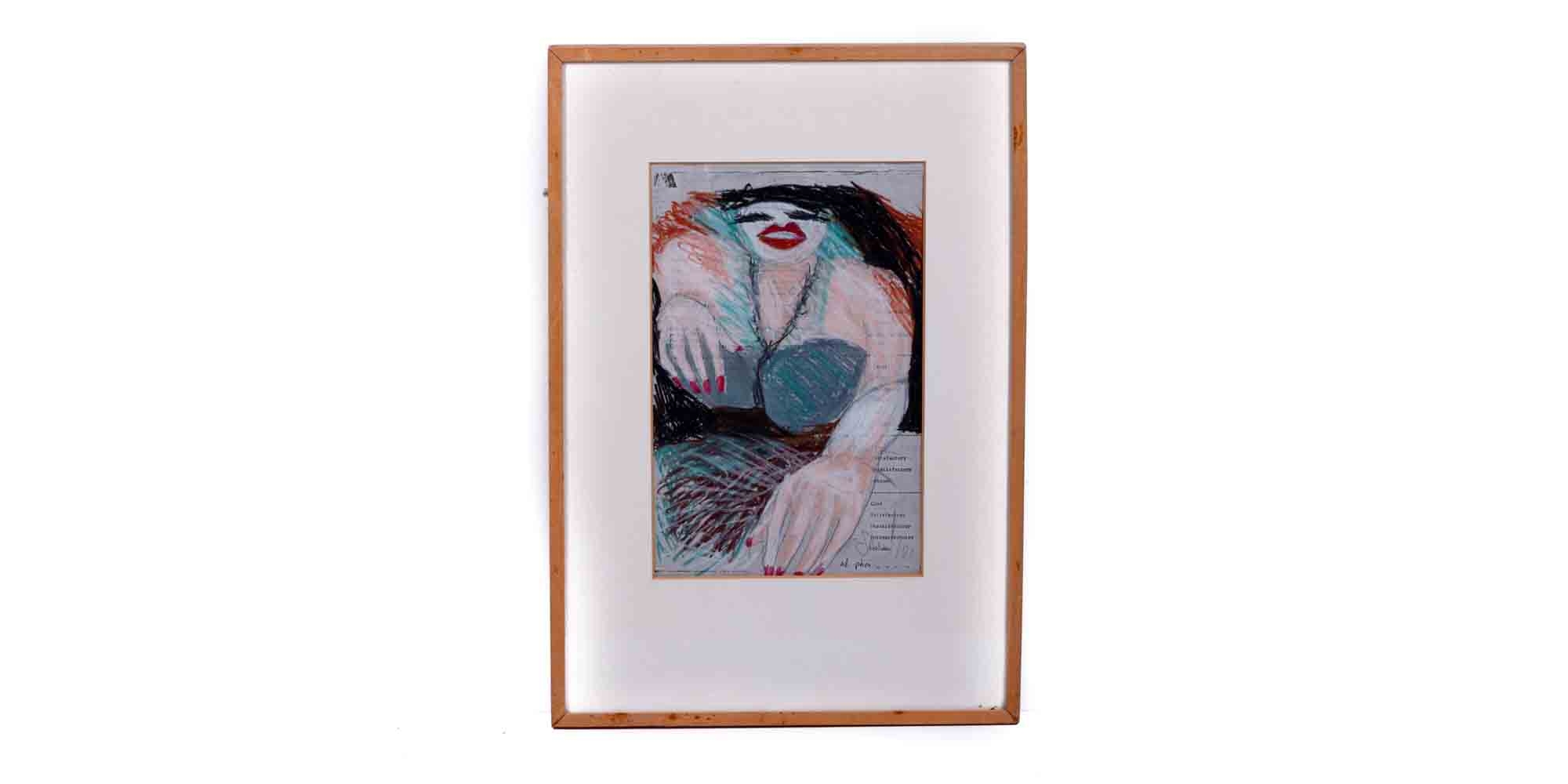 'נפקנית 1' - גירי פנדה על נייר מודפס, חתום ומתוארך: 1981, מידות: 32X20 ס"מ. (*נשמח לעזרה בזיהו האמן או האמנית).