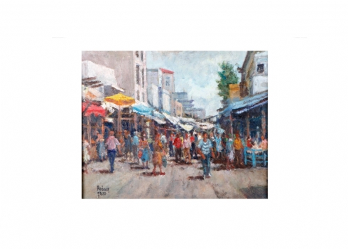 יהודה רודן - 'שוק הכרמל', שמן על בד, חתום, מידות: 46X61 ס"מ.