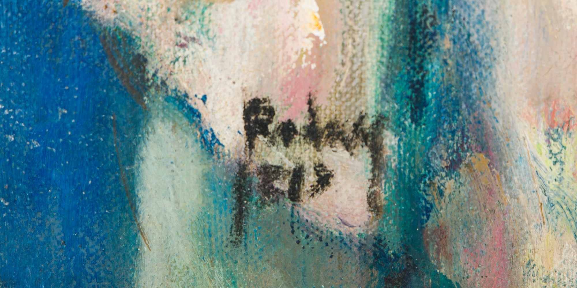 יהודה רודן - 'נערה בשמלה ורודה על רקע כחול'