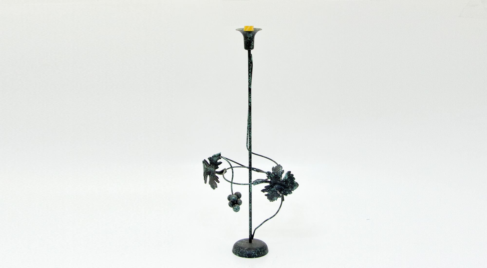 פמוט עשוי מתכת מעוטר בעלי גפן