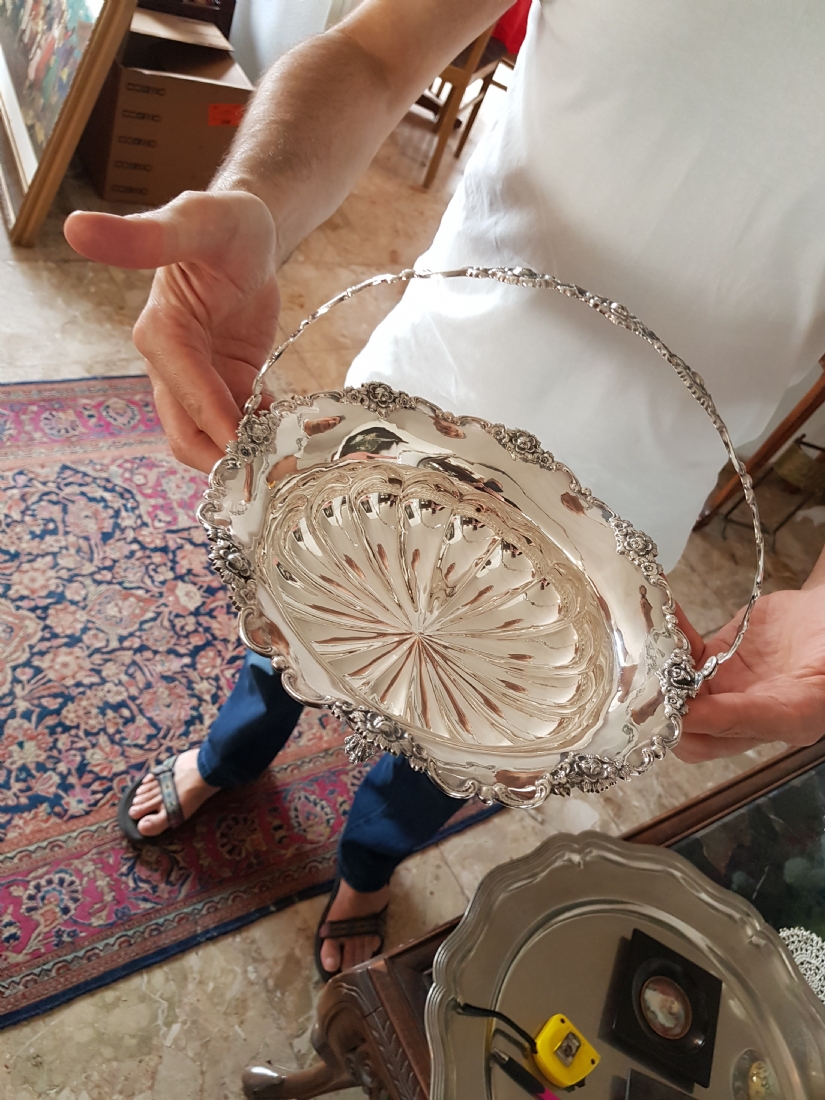 קנקן כסף אמריקאי ישן למים קרים מתוצרת: 'POOLE' עשוי כסף 'סטרלינג' (Sterling) כלי אמריקאי עתיק מפואר ומרשים, מתוצרת: 'BARBOUR SILVER CO', עשוי מתכת מצופה כסף אגרטל ישן ואיכותי במיוחד עשוי קריסטל מלוטש ביד ושפה עליונה עשויה כסף כלי עתיק למי ורדים (Rosewater Sprinkler) מהמאה ה-19 כפי הנראה הודי בסגנון מוגולי לוט של 7 מזלגות כסף גרמנים עתיקים, חתומים: '12', משקל כולל: 326 גרם קערת רחצה צרפתית עתיקה וגדולה סט כלי הגשה אנגלי עתיק (ויקטוריאני) מפואר מסוף המאה ה-19 להגשת קפה ותה כד פורצלן ארט נובו מעוטר כסף (Silver Overlay Porcelain) על רקע קובלט כחול כהה דקנטר גרמני ארט נובו עתיק, משנת 1900 בקירוב, מתוצרת: 'WMF' כלי כסף אנגלי, עשוי כסף סטרלינג, מתוצרת: 'Adie Brothers Ltd' בברמינגהם, חתום צלחת כסף פרסית עתיקה ויפה, חתומה לוט פרטי סכו"ם אנגלי ישן מתוצרת: 'Walker & Hall', עשויים מתכת מצופה כסף, חתומים כלי אנגלי ישן לרוטב (רוטביה), מתוצרת: 'Walker & Hall', עשוי מתכת מצופה כסף, חתום כלי הגשה ומכסה תואם, עשויים מתכת מצופים כסף, חתום כלי הגשה וכיבוד מרובע, עשוי מתכת מצופה כסף, חתום מיחם (סמובר) אמריקאי ישן ואיכותי מתוצרת 'Reed & Barton', חתום, עשוי מתכת מוכספת קופסא עתיקה מסוף המאה ה-19, עשויה מתכת  ומשובצת אבני חן טבעיות מגש ישן ויפה בסגנון עתיק, עשוי מתכת מצופה כסף, חתום, נתמך על ארבע רגליות כד רוסי עתיק, מתחילת המאה העשרים, עשוי גוף קריסטל מלוטש בעבודת יד מיחם אנגלי עתיק (ויקטוריאני) מסוף המאה ה-19, עשוי פיוטר מצופה כסף סט של שלושה כלי כסף הודים (קשמיריים) עתיקים מהמאה ה-19 סט אנגלי עתיק (ויקטוריאני) להגשת דגים כלי מוכסף להגשה וכיבוד קנקן ארט דקו ישן לשתייה קרה קנקן מתוצרת: 'Mappin & Webb' שני כלי כסף עתיקים כף הגשה אוסטרית עתיקה כלי הגשה ישן, עשוי נחושת מצופה כסף כלי מוכסף ומעמד תואם סלסלה עתיקה עשויה פליז מצופה כסף