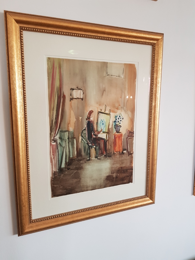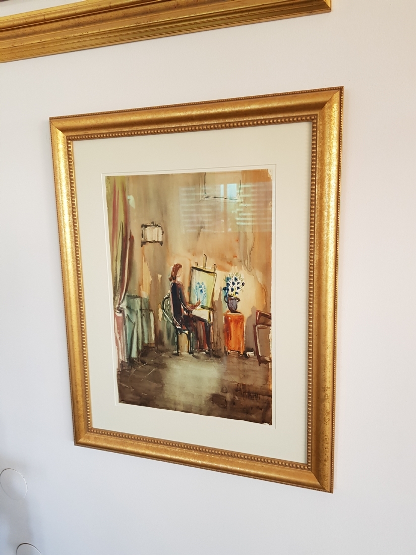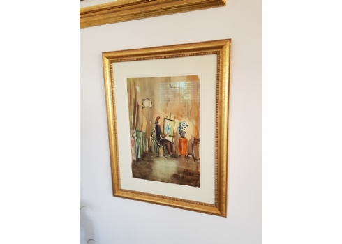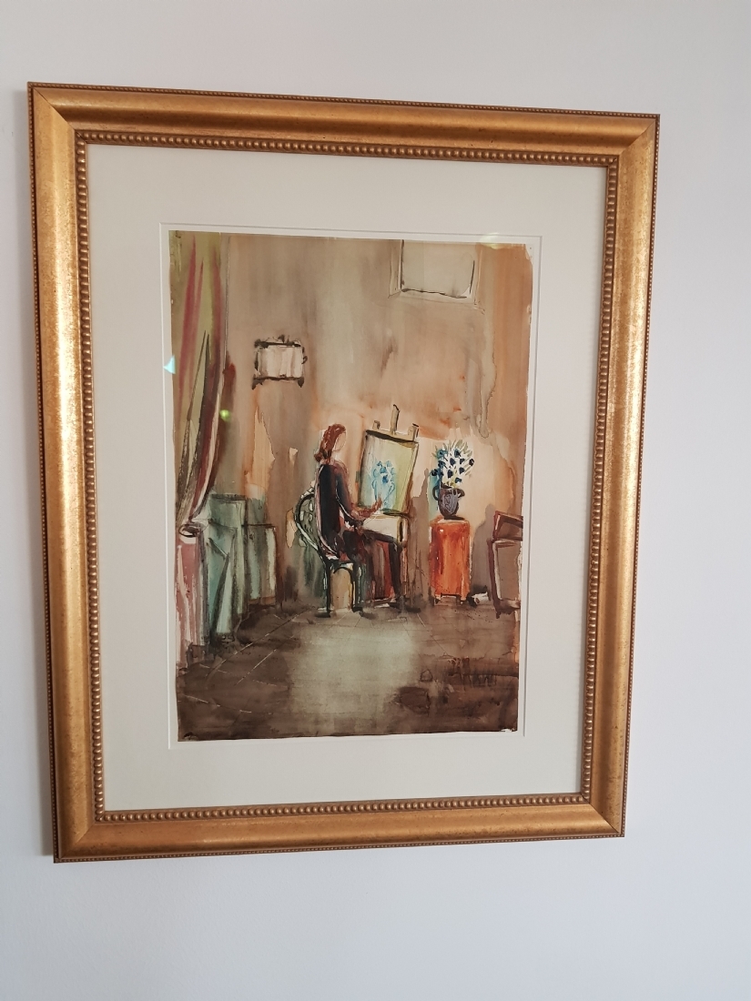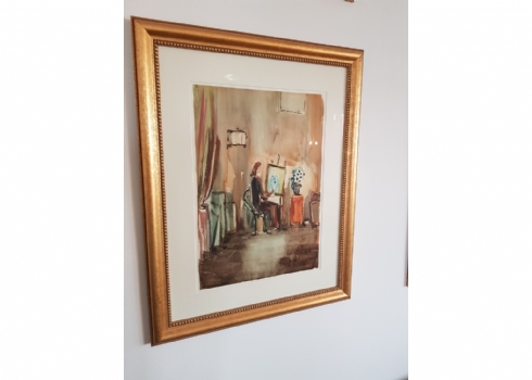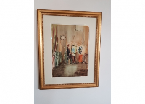 מספר הפריט בקטלוג 299יוסף קוסונוגי - 'נערה מציירת' - ציור ישן, אקוורל על נייר, לא חתום, מידות: 50X35 ס"מ.