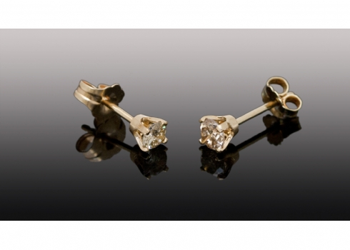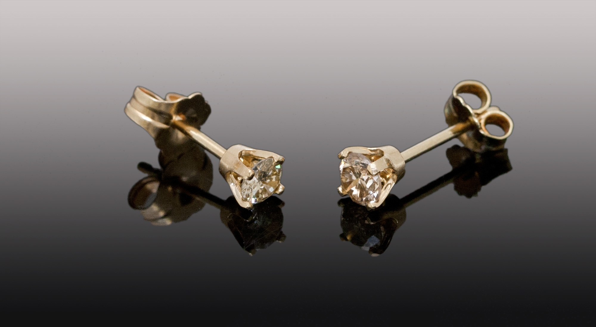 זוג עגילי זהב צהוב, 14 קראט, משובצים יהולומים במשקל כולל של כ: 0.30 נקודות .חתום.