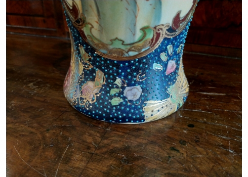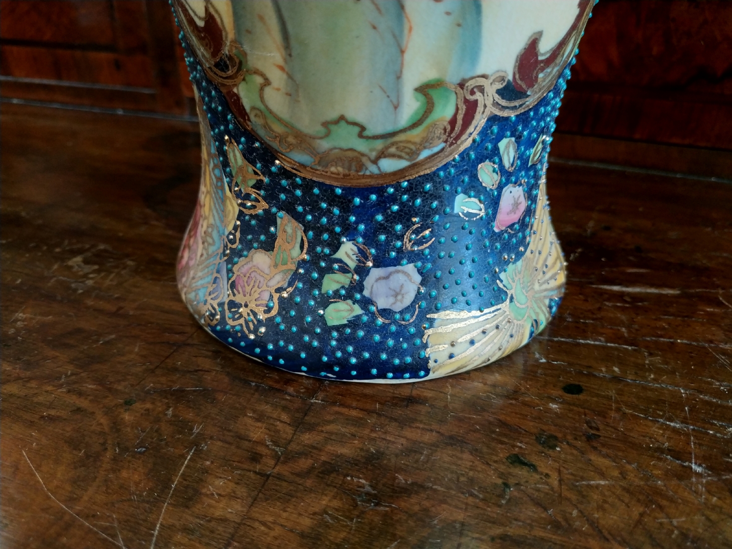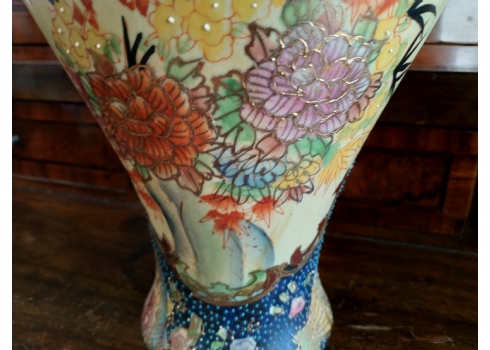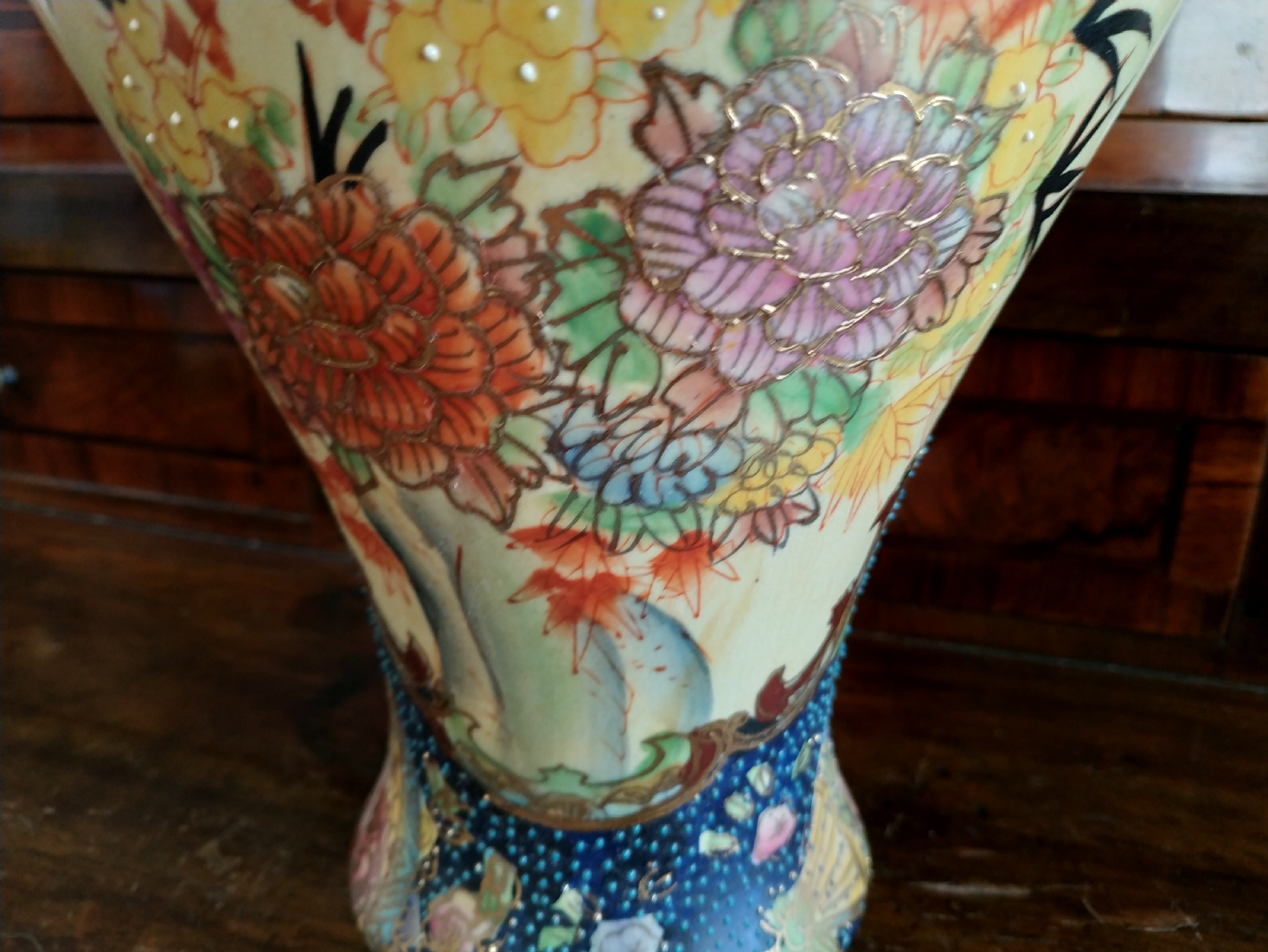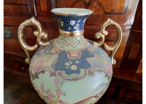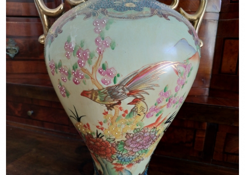 אגרטל סיני דקורטיבי בעל שתי ידיות מוזהבות, עשוי חרס מעוטר באמייל, גובה: 38 ס"מ.
