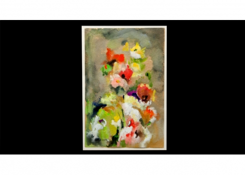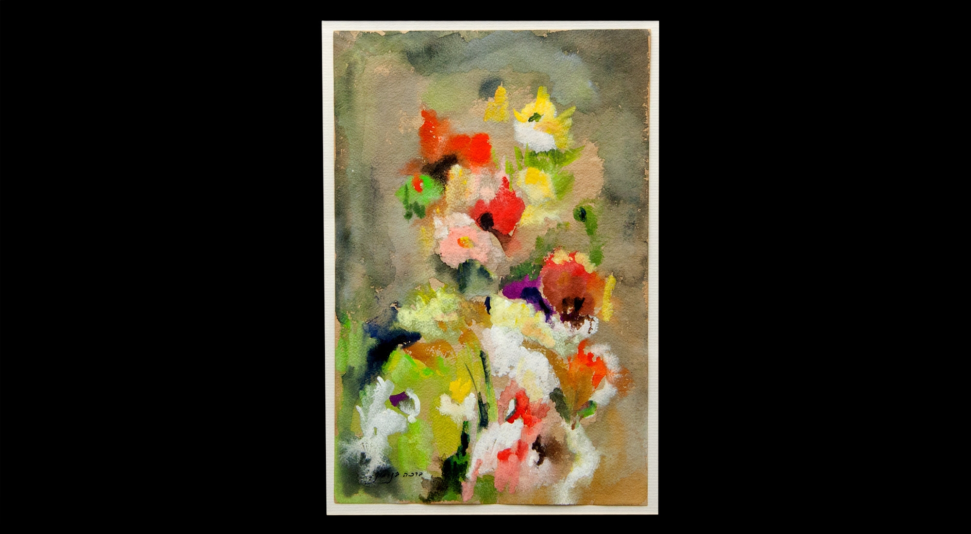 מספר הפריט בקטלוג 341ברכה בנימיני, (1891-1993) - 'זר פרחים' אקוורל על נייר, חתום, מידות 20X19 ס"מ.