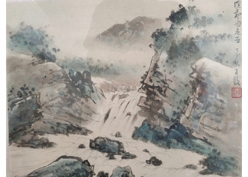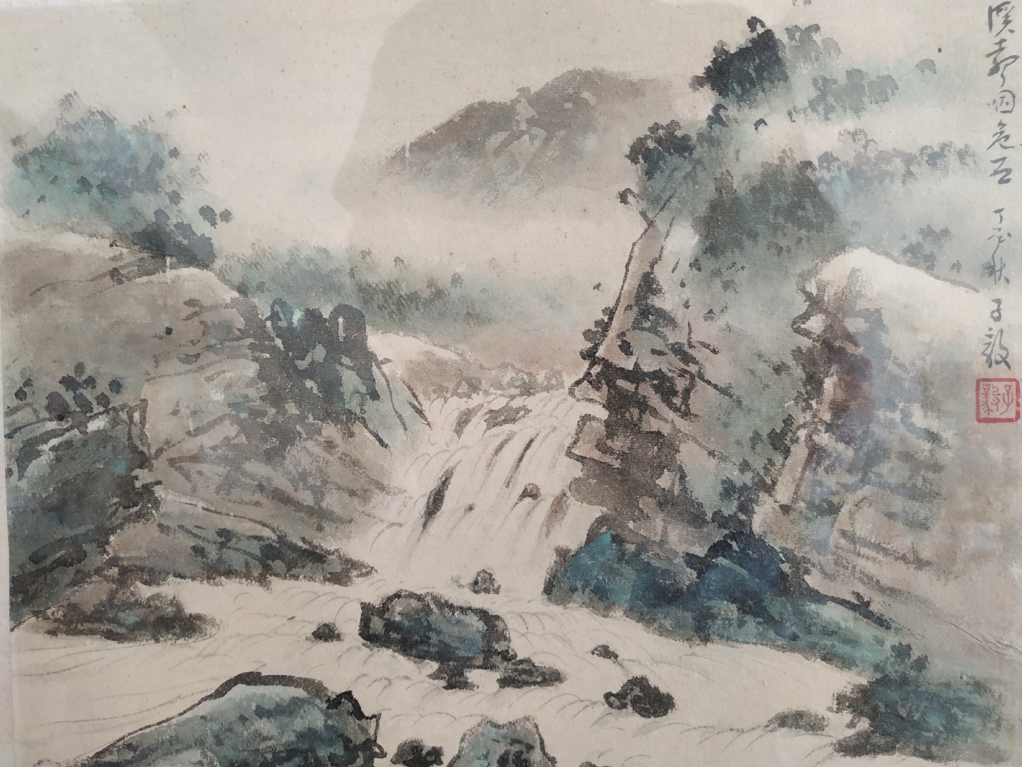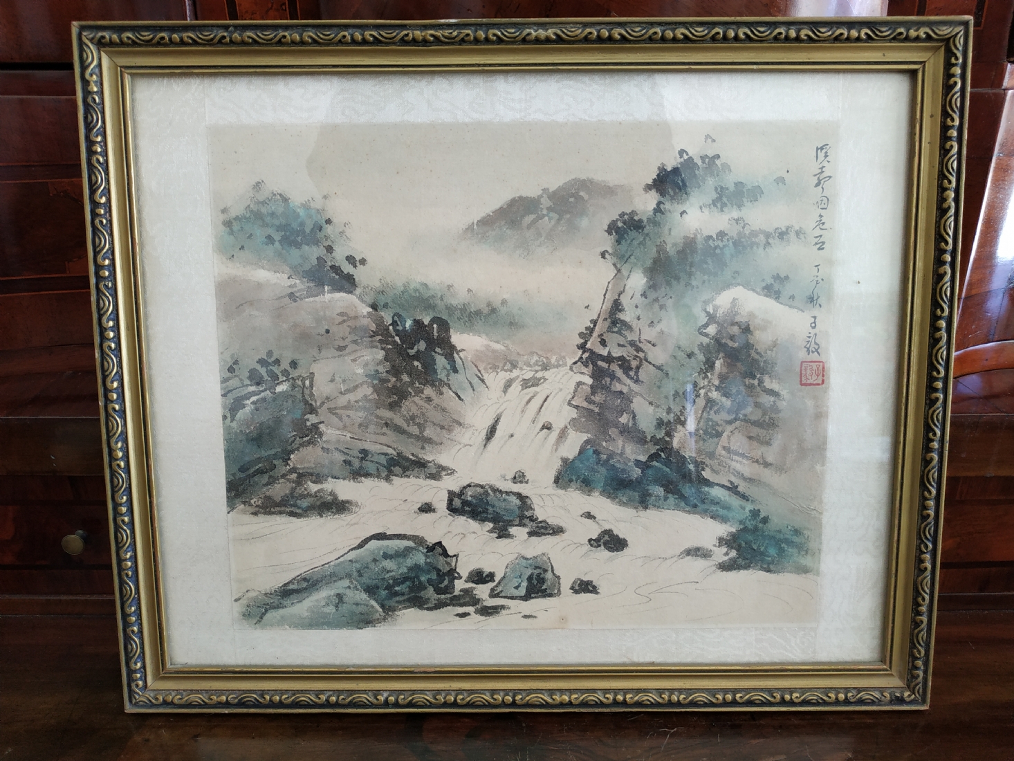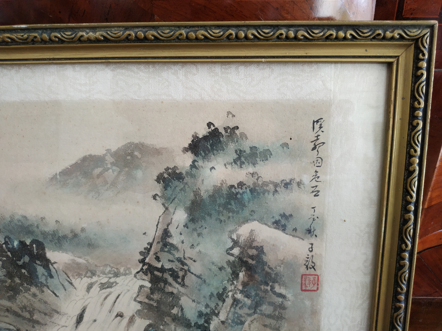 ציור סיני ישן מהמחצית השנייה של המאה העשרים, אקוורל על נייר, חתום, מידות המסגרת: 34X41 ס"מ.