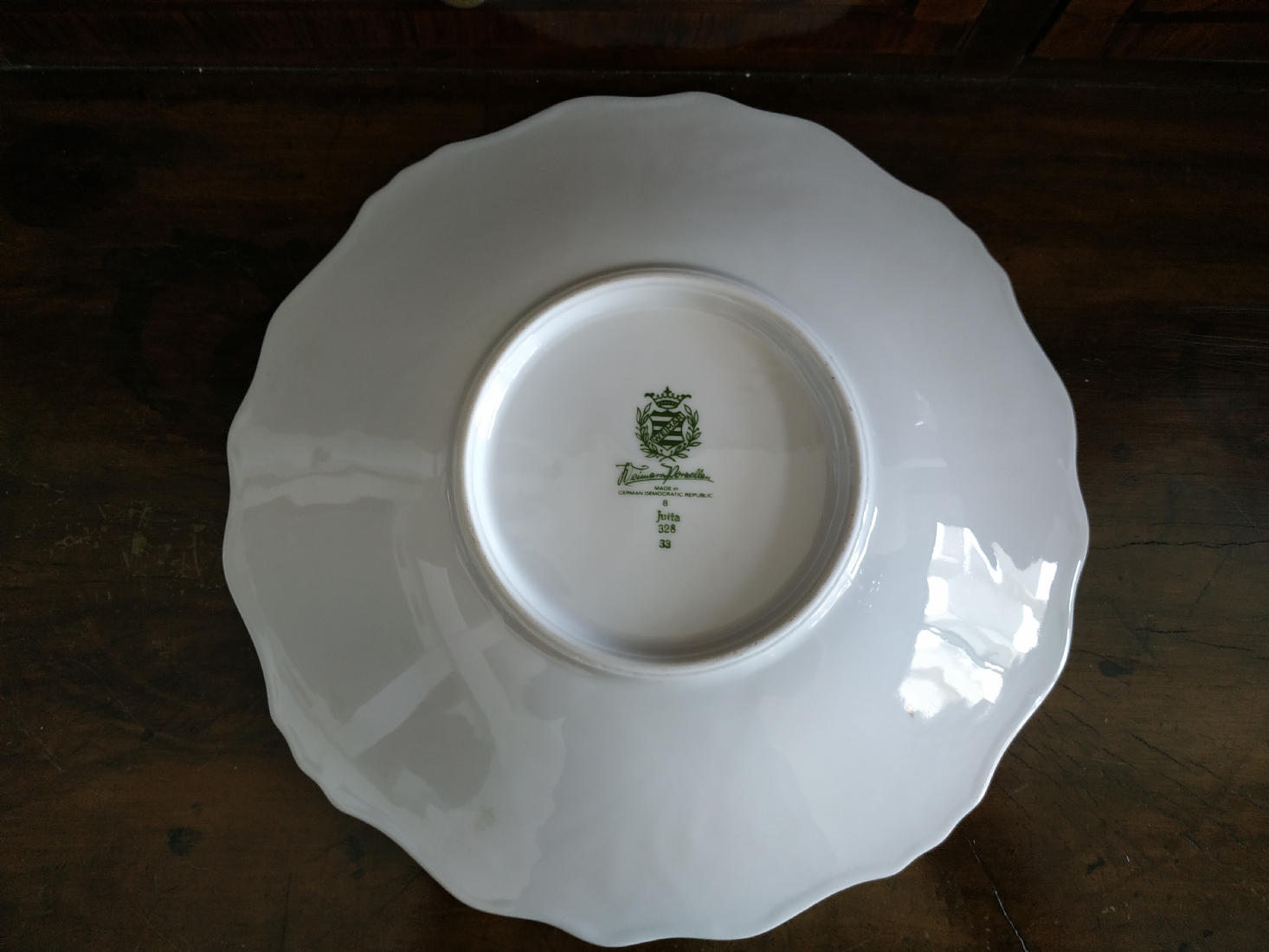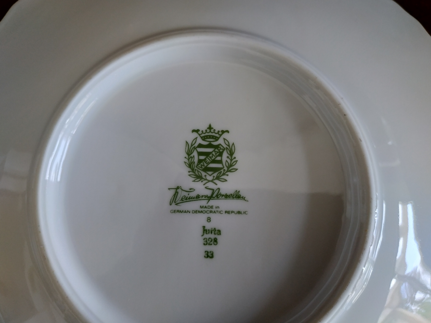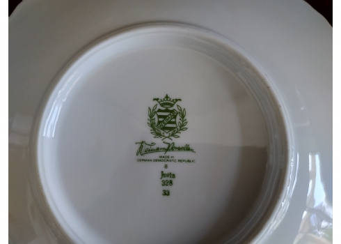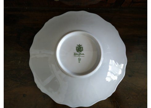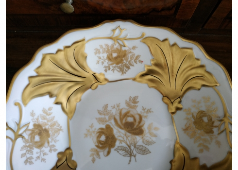 צלחת פורצלן גרמנית איכותית, חתומה, מעוטרת בזהב ובאמייל שחור, קוטר: 24 ס"מ.