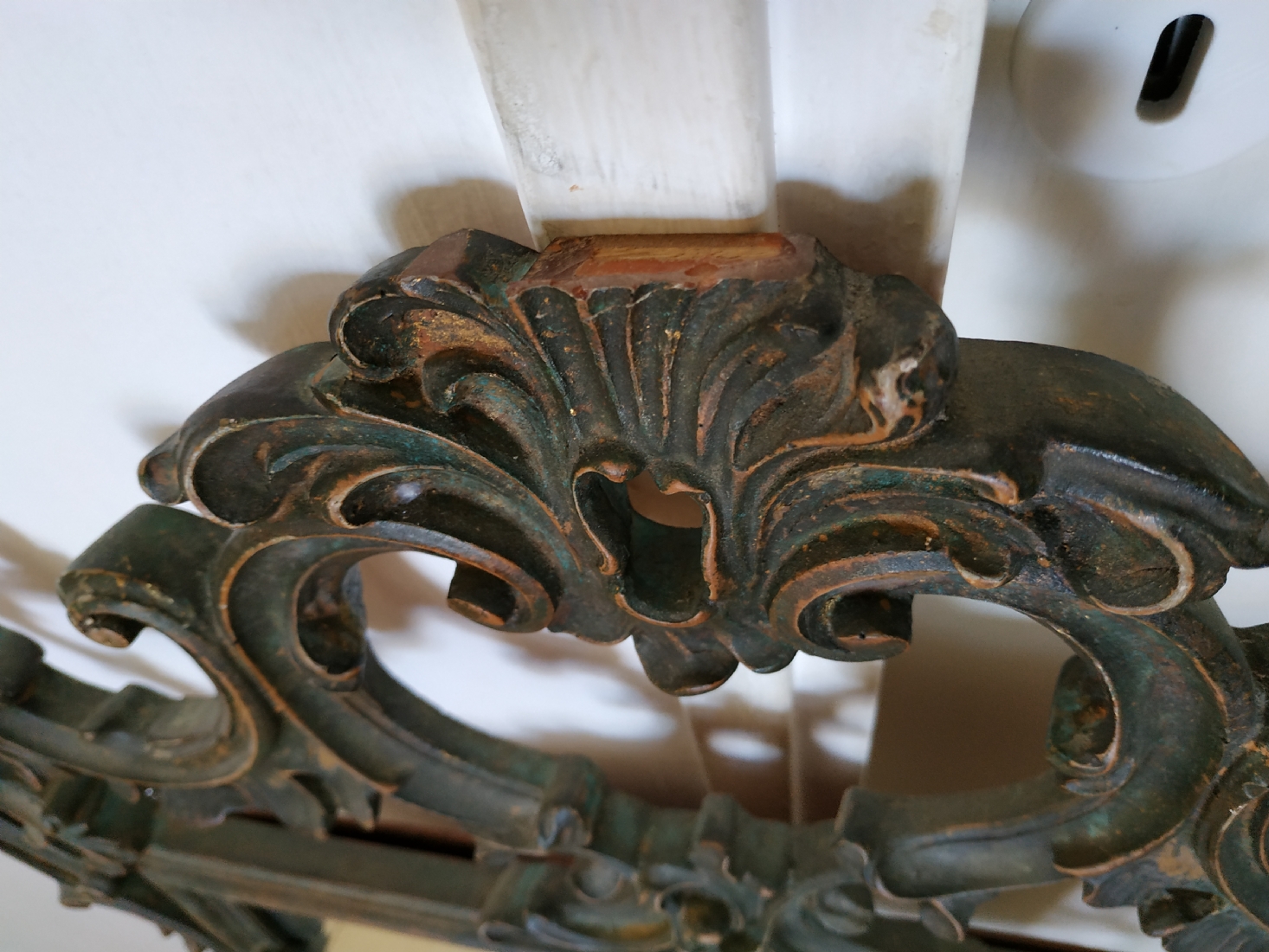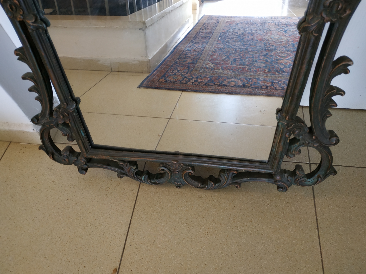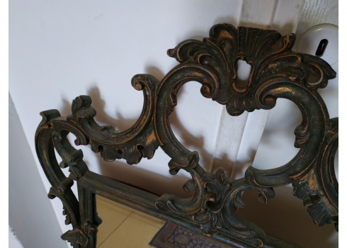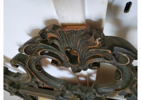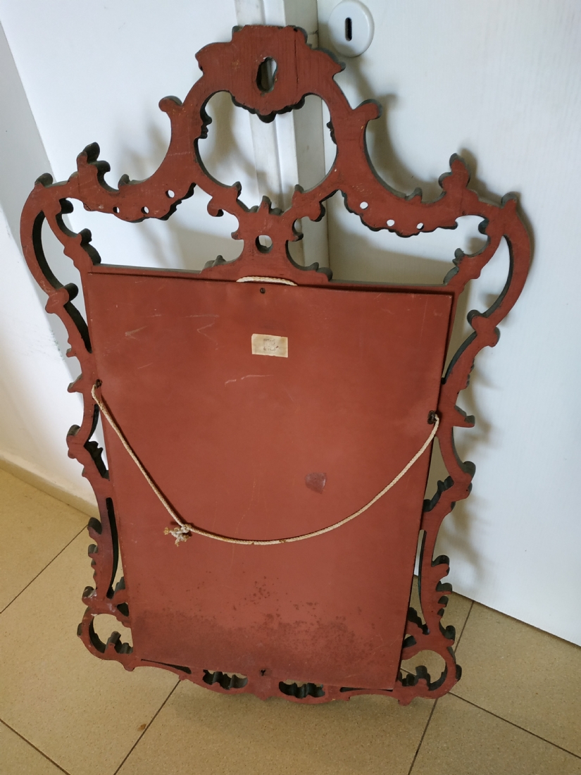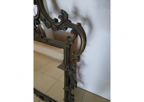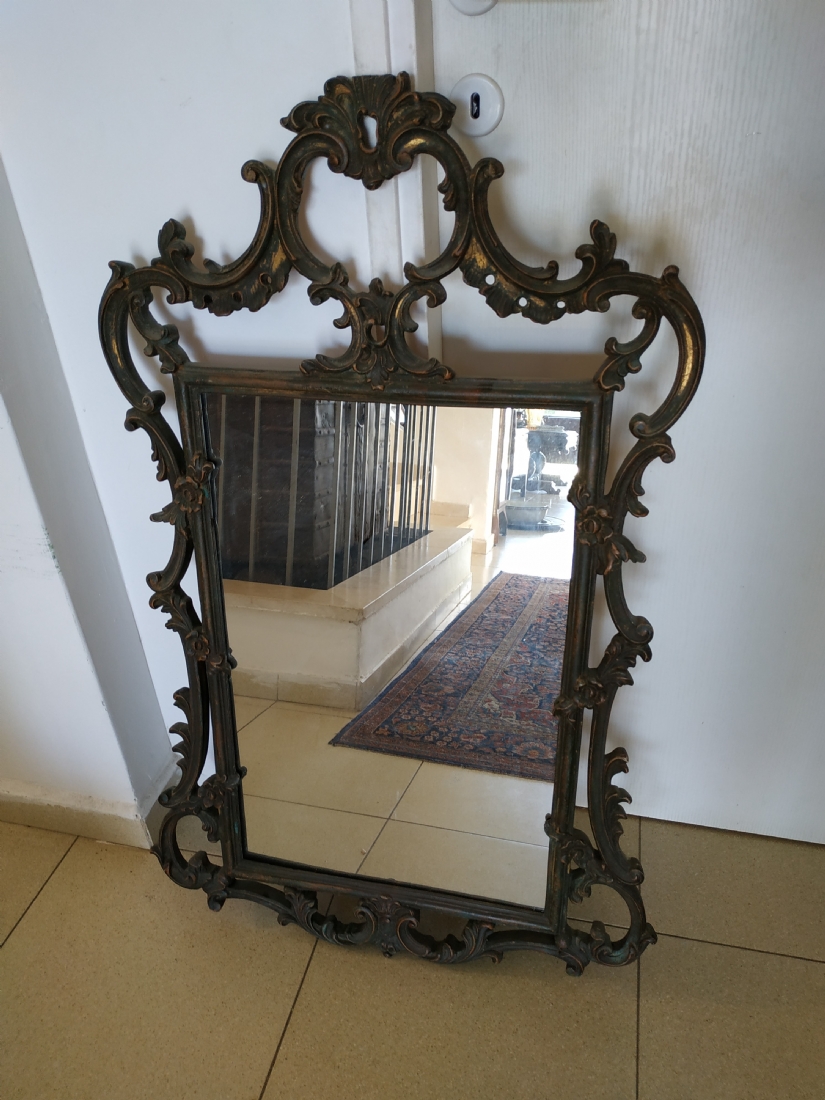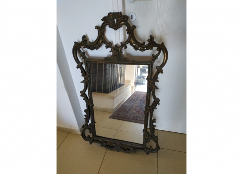 מראה צרפתית בסגנון הניאו רוקוקו, עשויה חומר יצוק, חוסר קטן לקצה העליון, גובה: 97 ס"מ, רוחב: 58 ס"מ.
