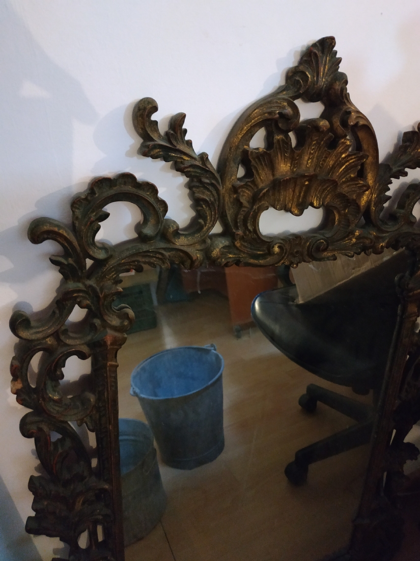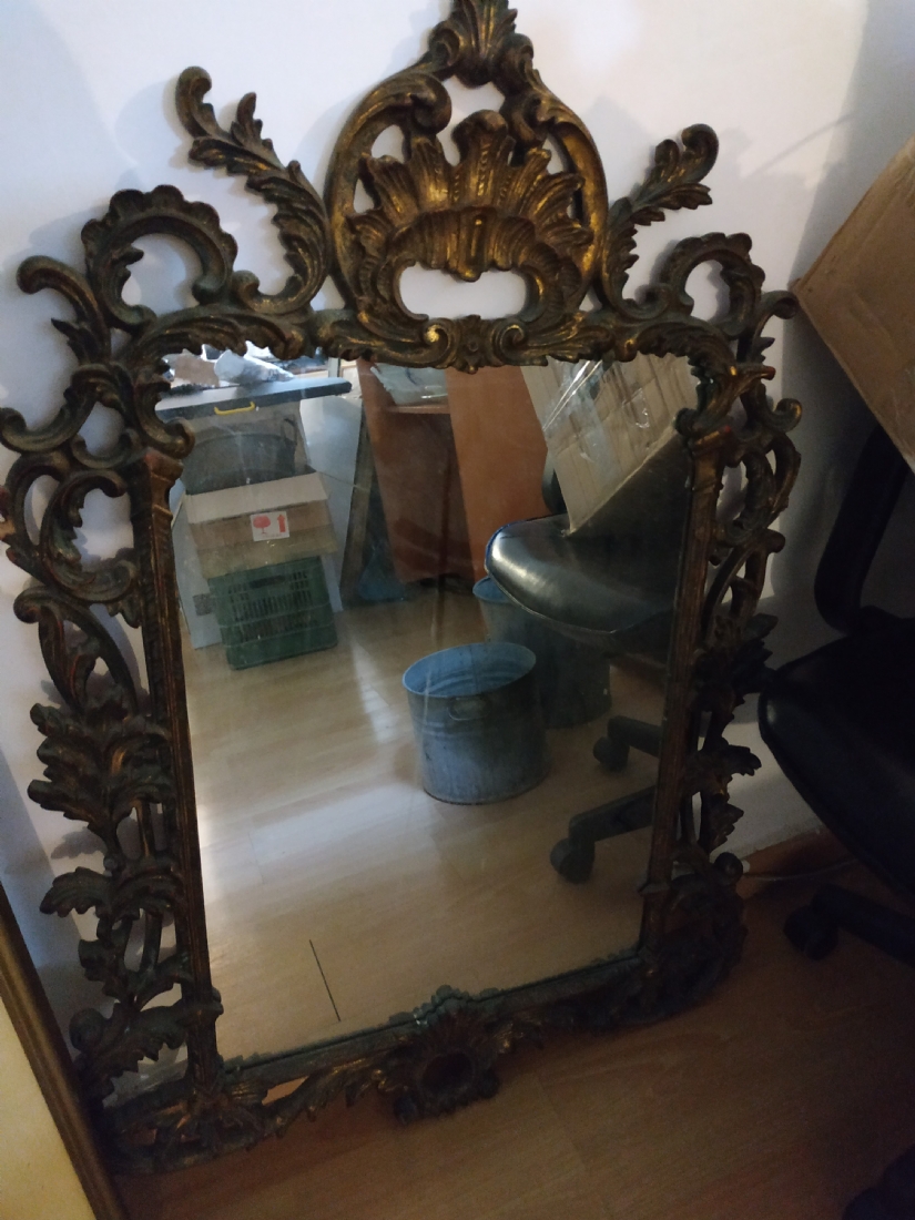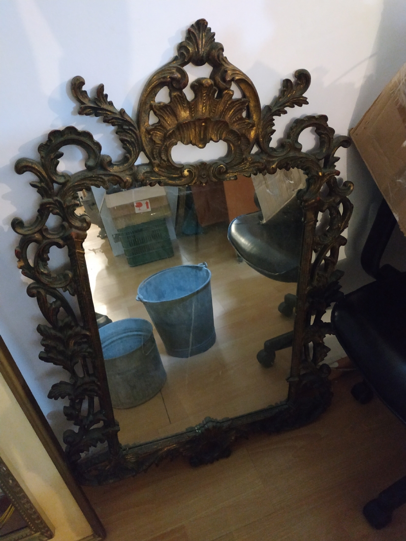מראה צרפתית בסגנון הניאו רוקוקו, עשויה חומר יצוק, גובה: 108 ס"מ, רוחב: 80 ס"מ.