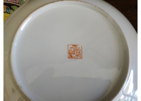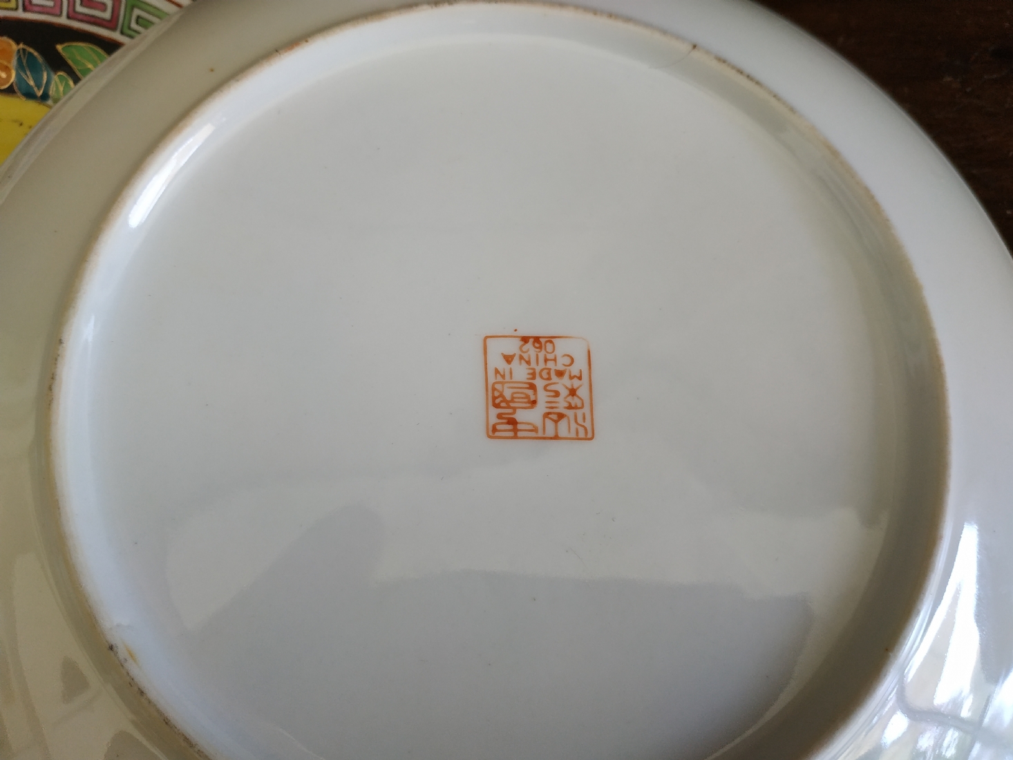 סט של ארבע צלוחיות חרסינה סיניות מעוטרות אמייל וזהב, חתומות, פגם לאחת, קוטר: 18.5 ס"מ.