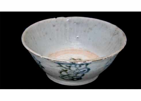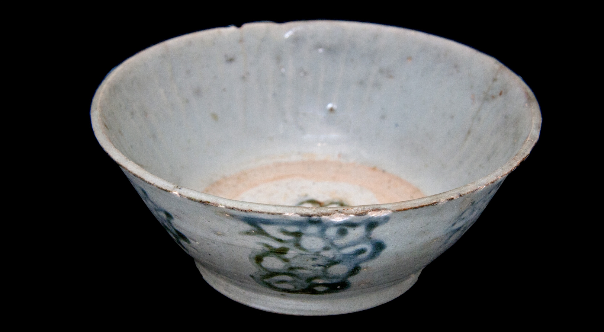 קערה אסייתית ישנה, עשויה חרס ומעוטרת ציורי יד, פגם, קוטר: 14 ס"מ.