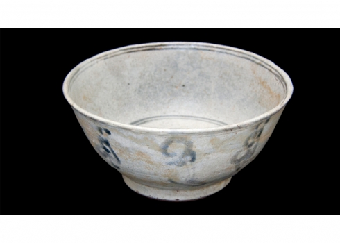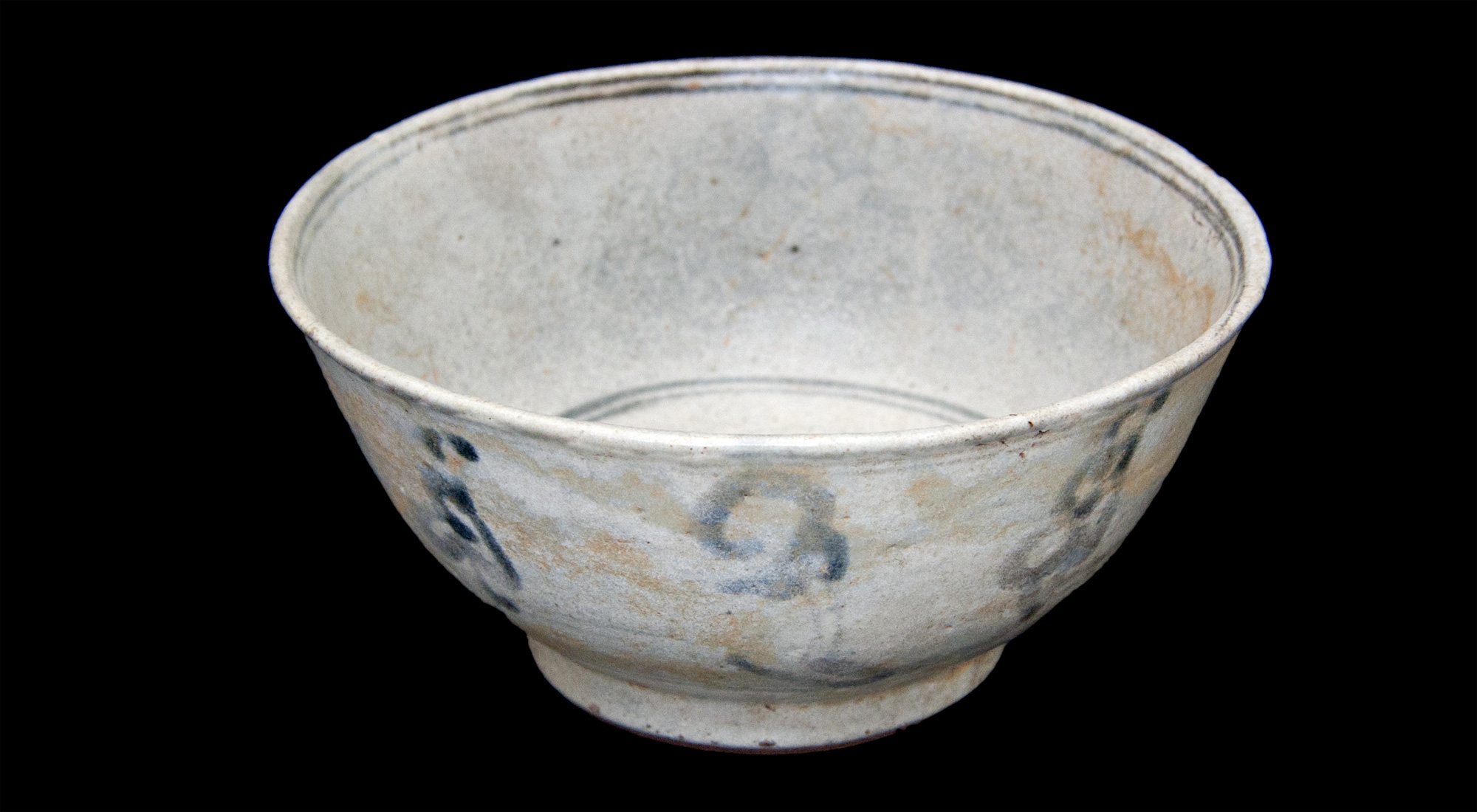 קערה אסייתית ישנה, עשויה חרס ומעוטרת ציורי יד, פגם, קוטר: 14 ס"מ.