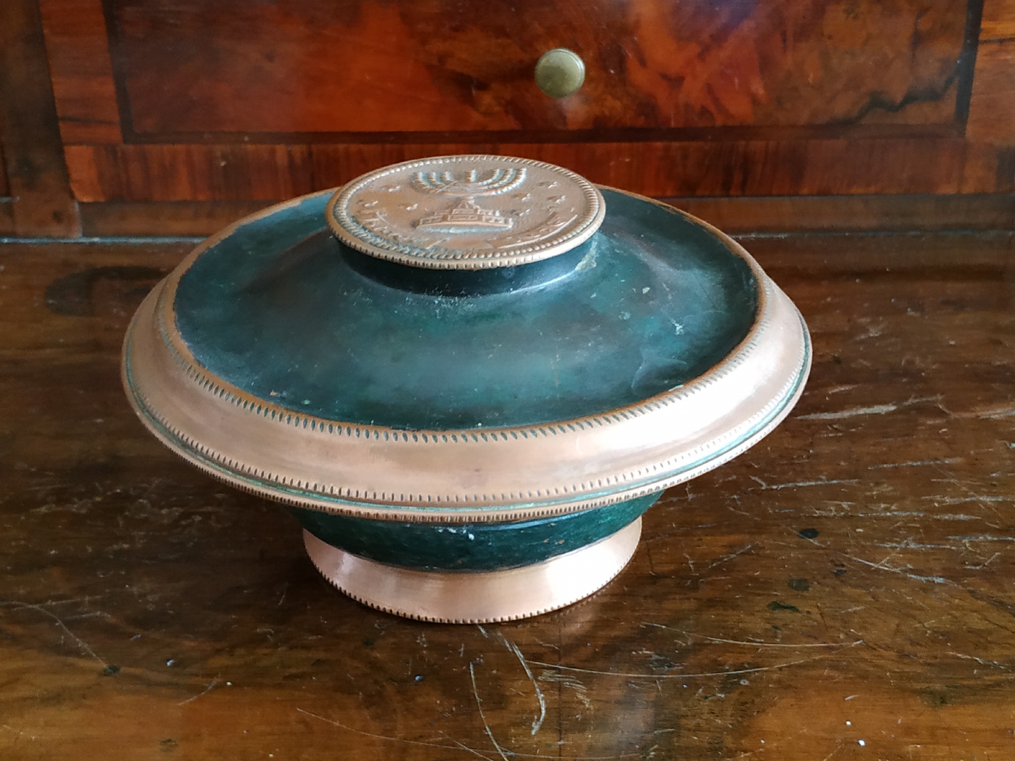 כלי מתכת ישראלי ישן ומכסה תואם, מתוצרת: ('Oppenheim')