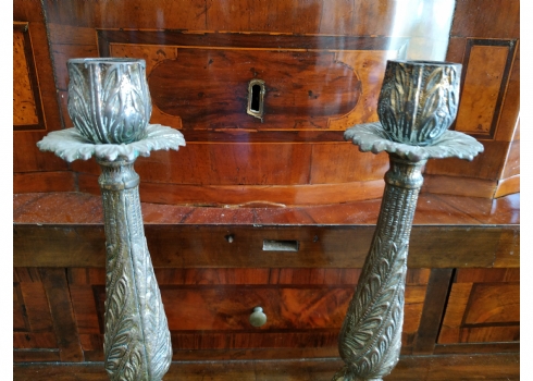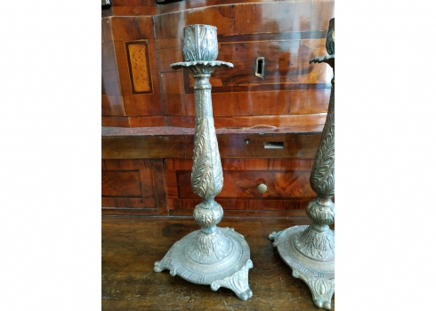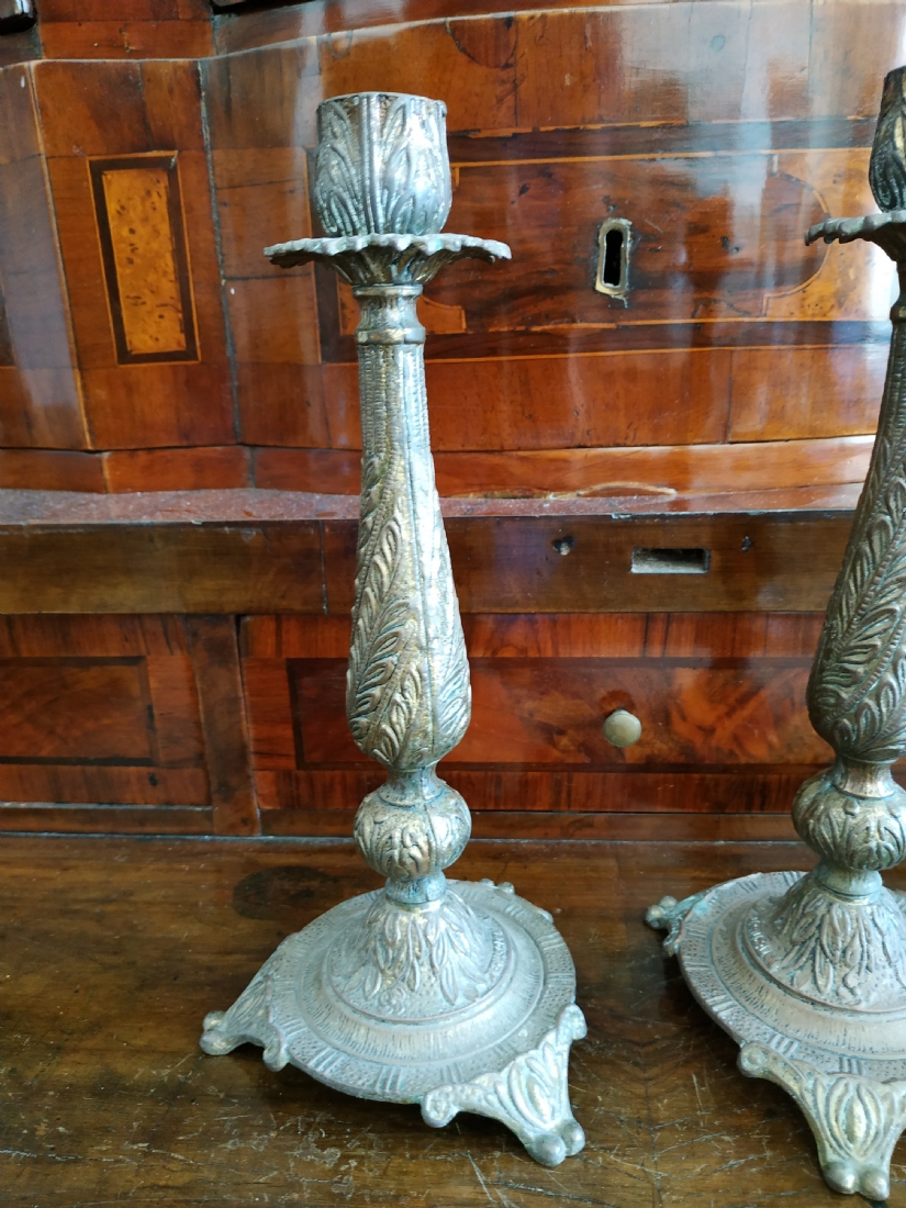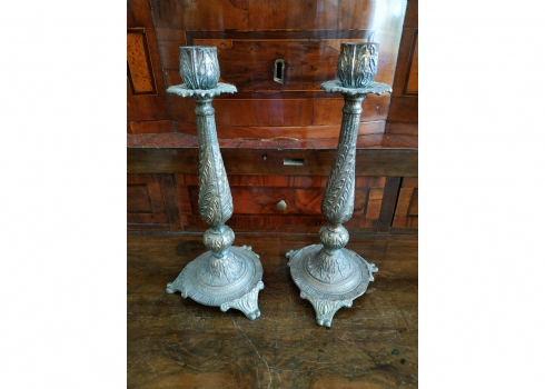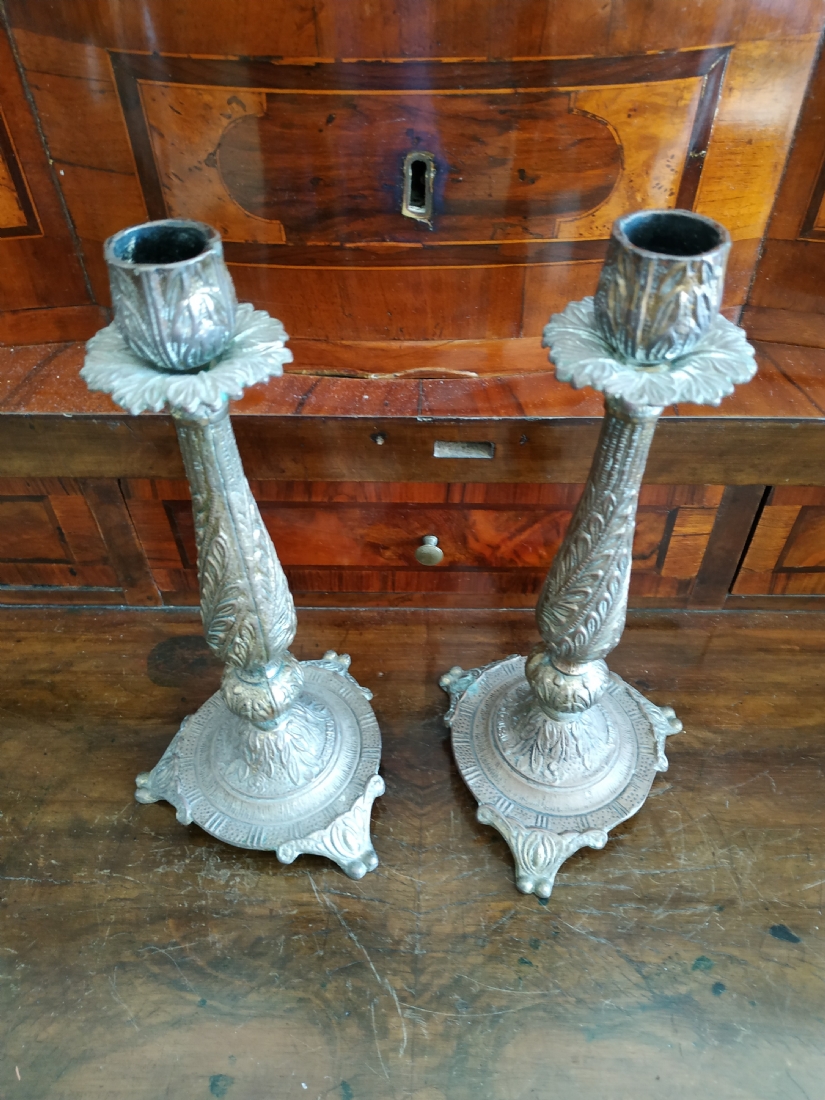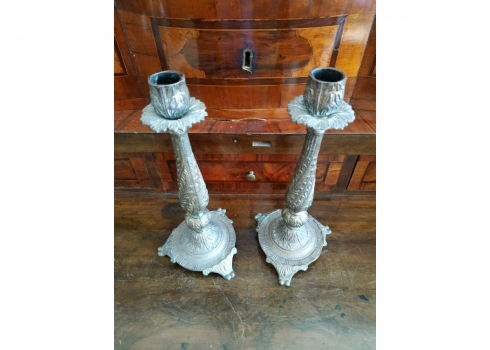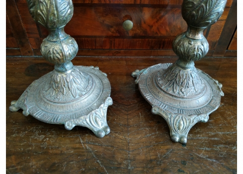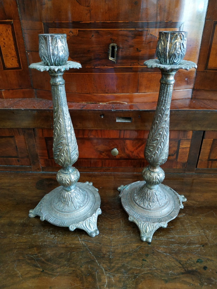 זוג פמוטים ישראלים ישנים מתוצרת: 'תמר', עשויים פליז יצוק, חתומים: 'Tamar', גובה: 25.5 ס"מ.