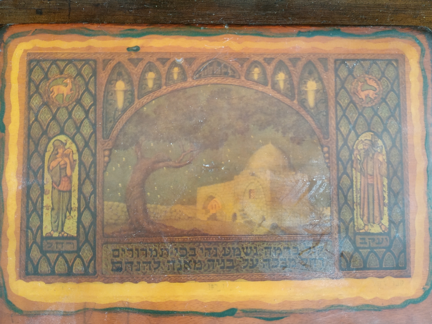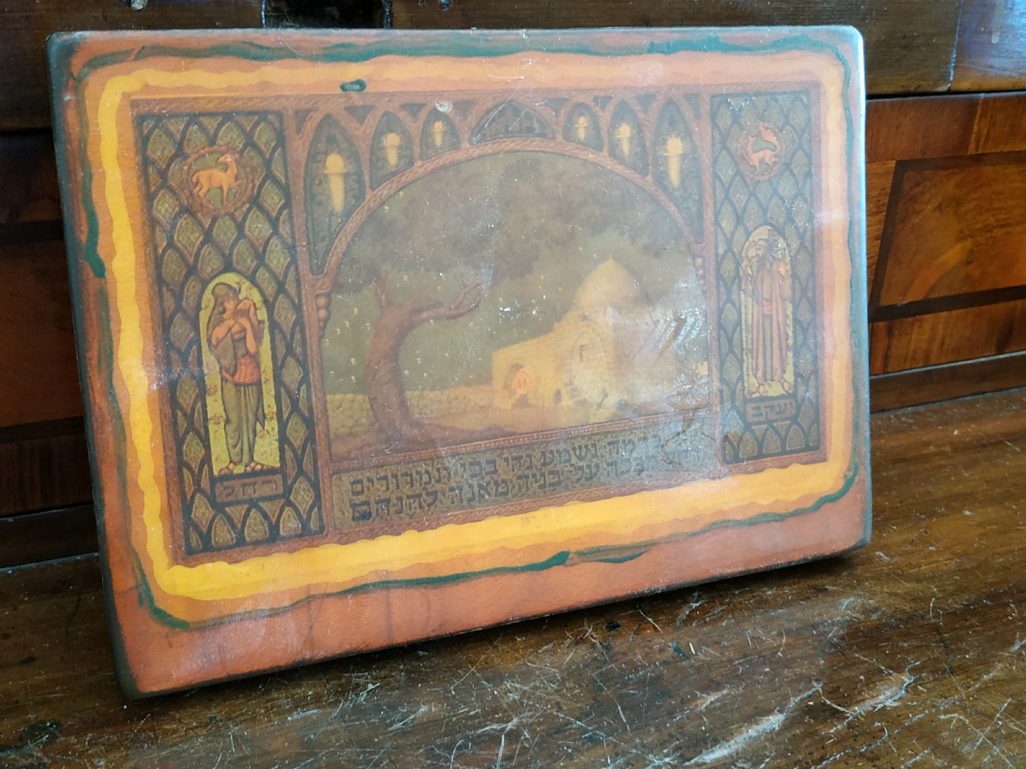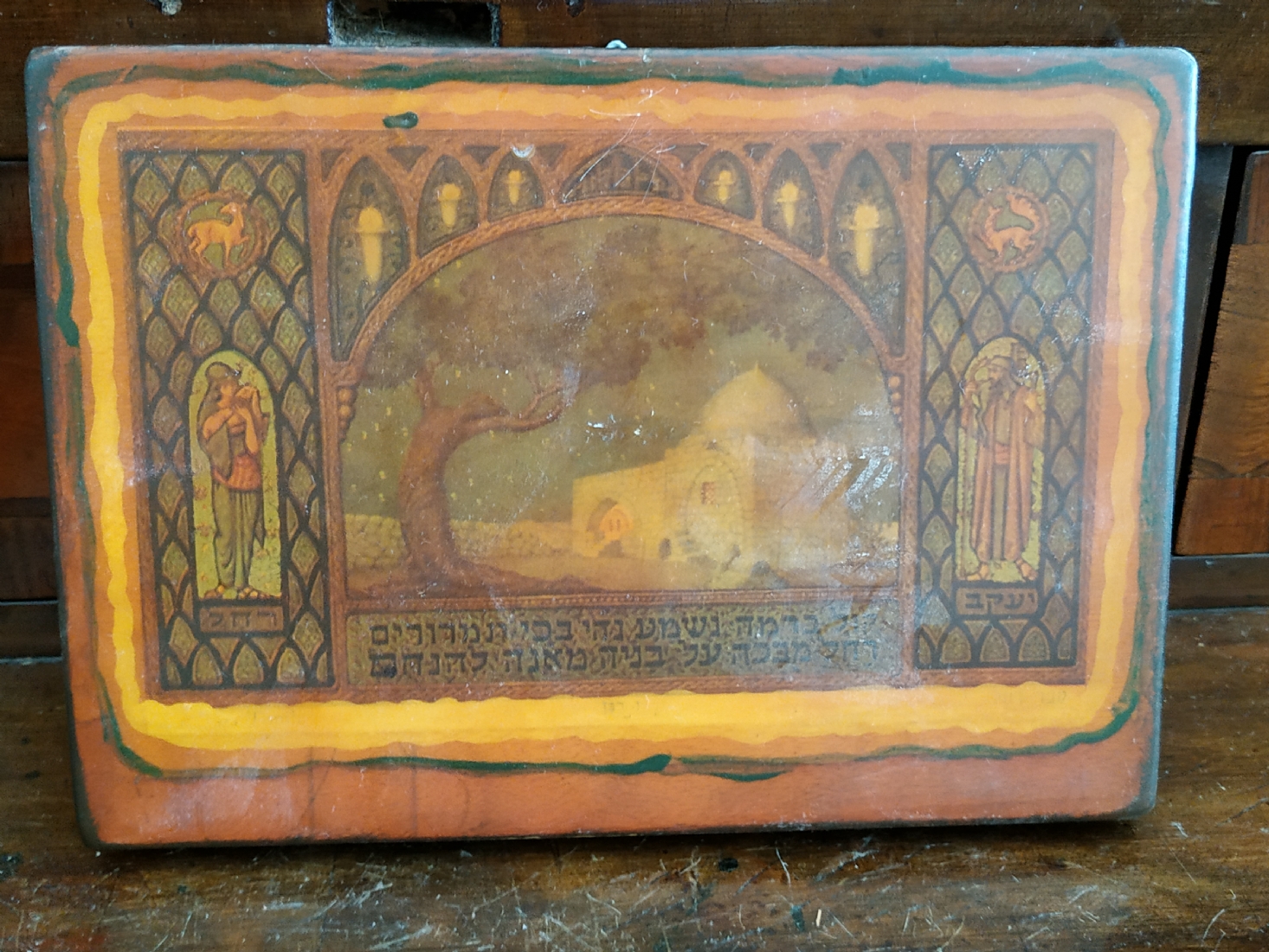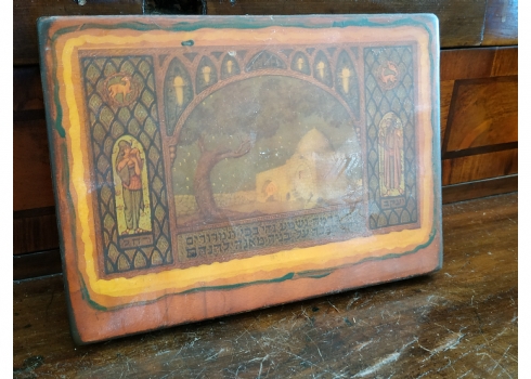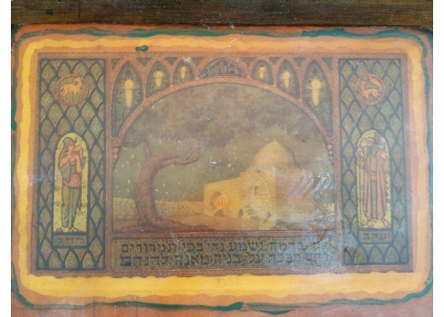 'קבר רחל' - לוח עץ לתליה על הקיר, מעוטר בהדפס על פי זאב רבן, מידות הלוח: 12X17 ס"מ.