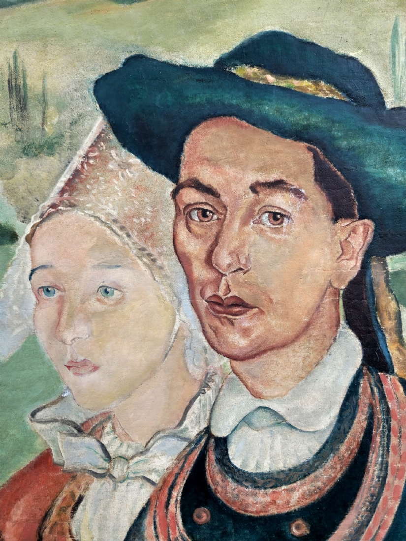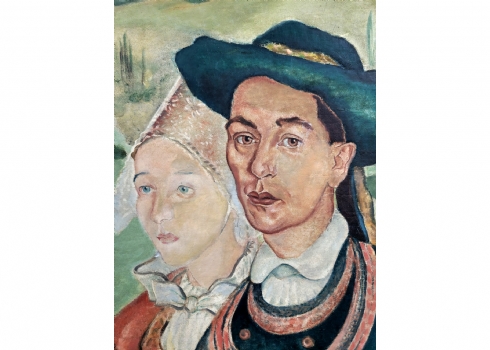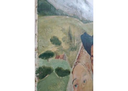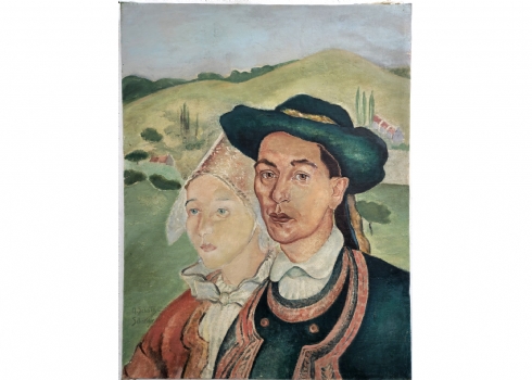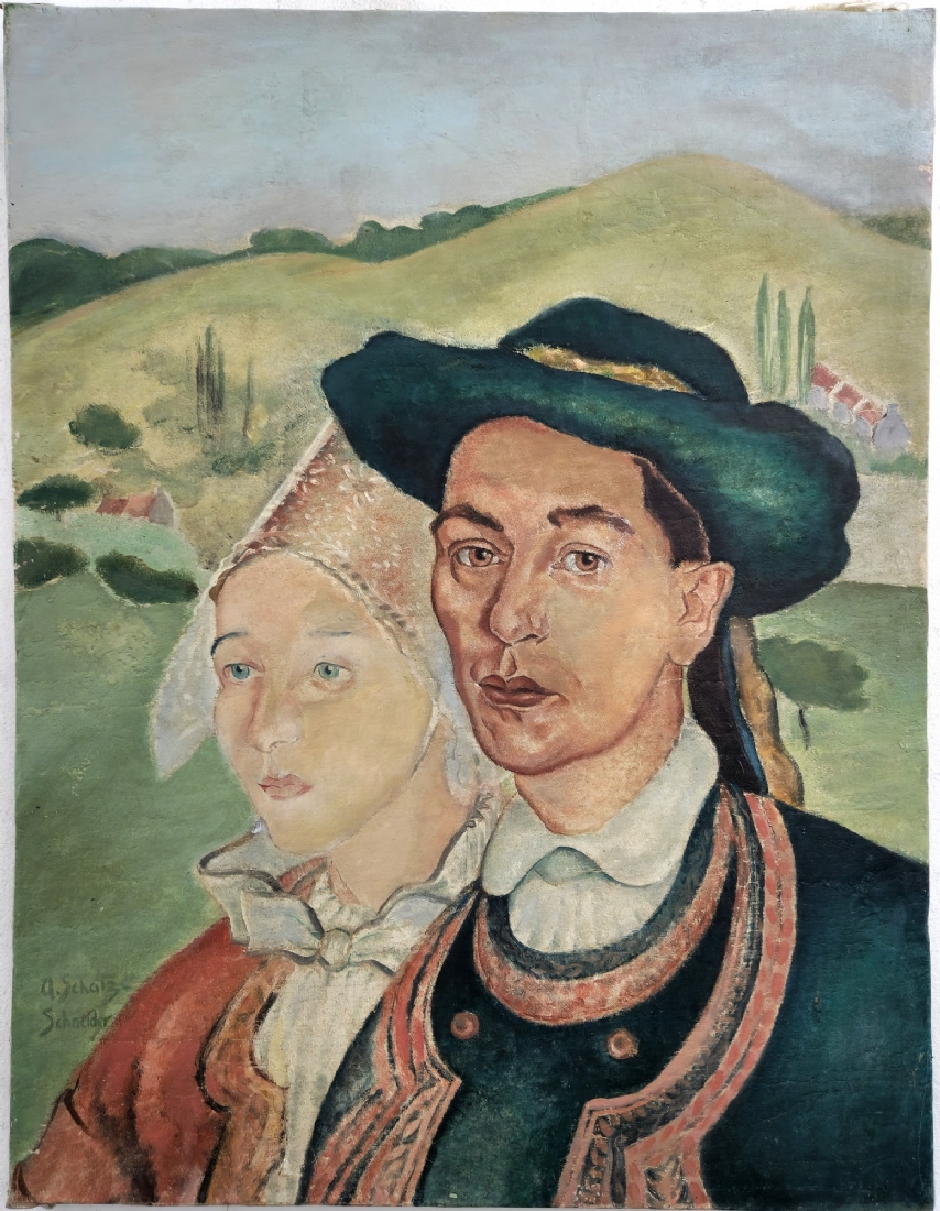 מספר הפריט בקטלוג 147אנג'ליקה שץ שניידר - 'זוג בעמק' - שמן על בד, חתום:'Angelica Schatz Schneider', מידות: 80X60 ס"מ. (* תמונה דומה הוצגה בשנת 2013 בתערוכה: 'אנג'ליקה שץ: בת אבודה, בת אובדת' שאצר ידידי ד"ר דורון לוריא הנהדר, וכך כתב: "אנג'ליקה שץ ( 1897 , סופיה, בולגריה - 1975 תל אביב)