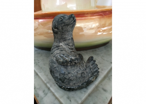 פסל קנדי בדמות כלב ים, עשוי אבן מגולפת, גובה: 14 ס"מ.