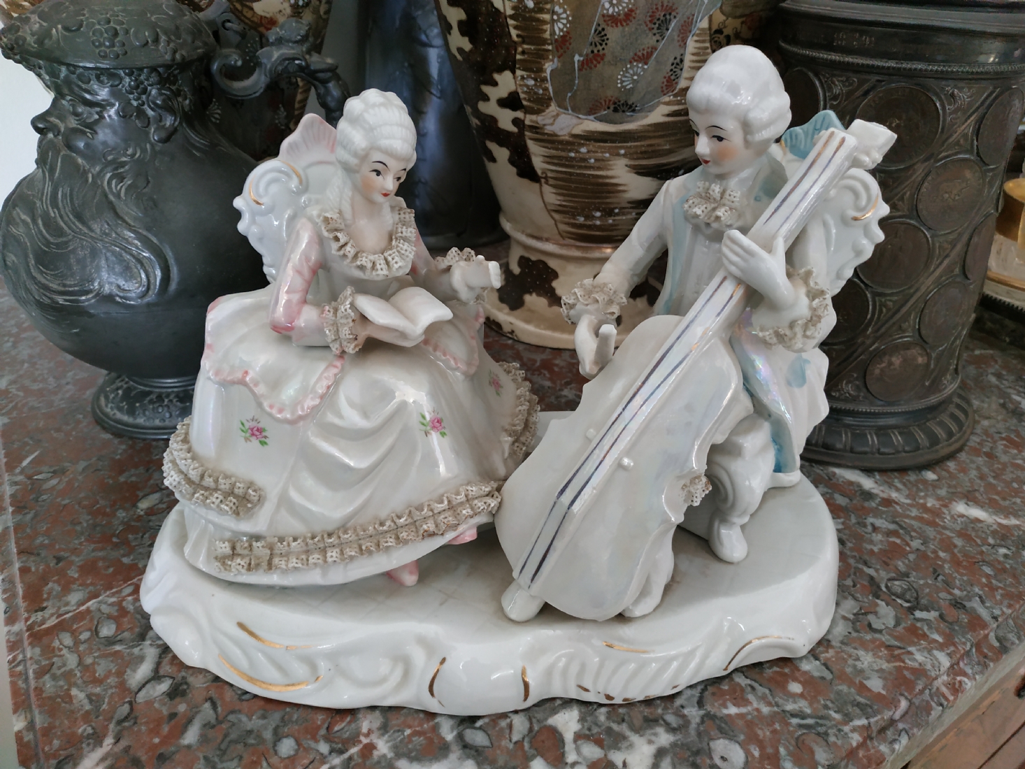 פסל חרסינה בדמות זוג אצילים בקונצרט