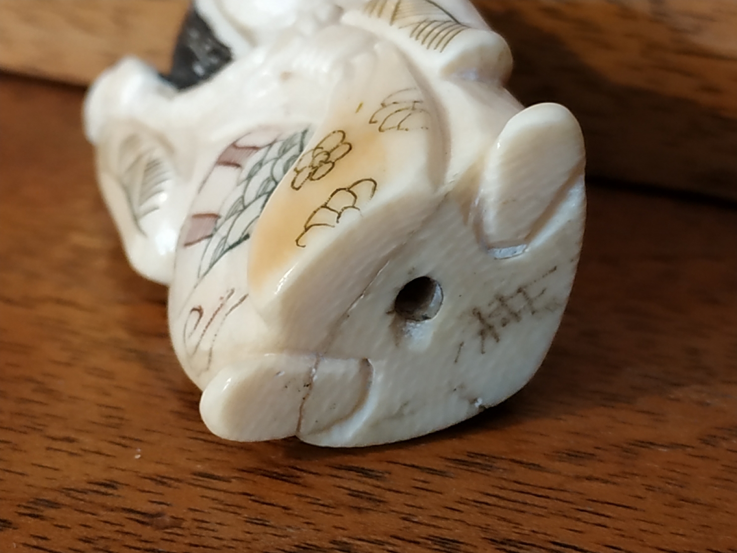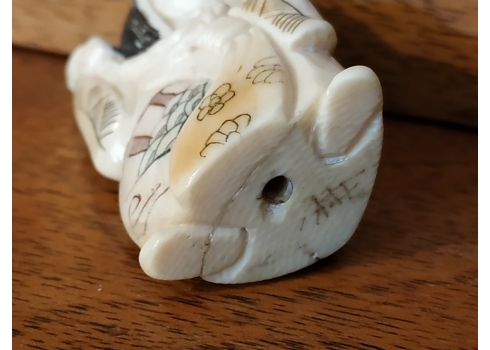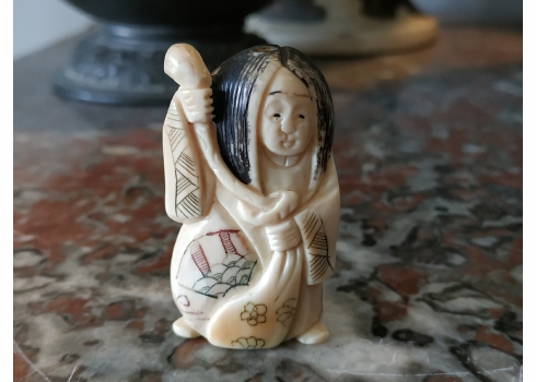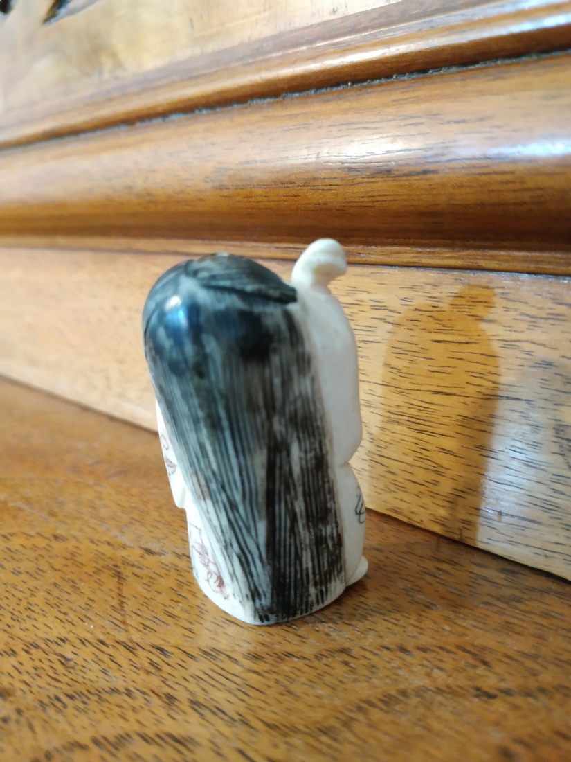 פסלון שנהב סיני מגולף ביד, חתום, גובה: 5 ס"מ.