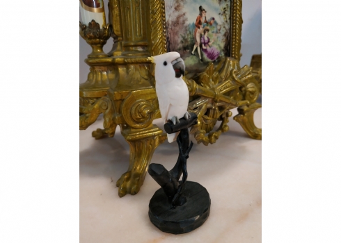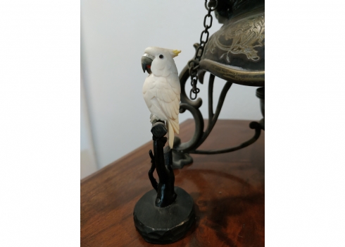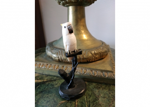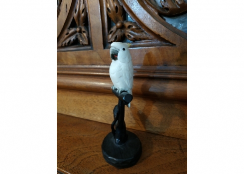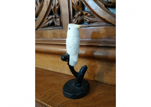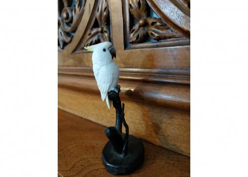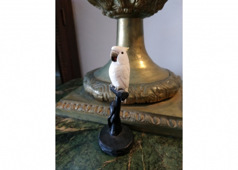 קישוט שנהב מגולף בעבודת יד אמן בדמות תוכי קקדו