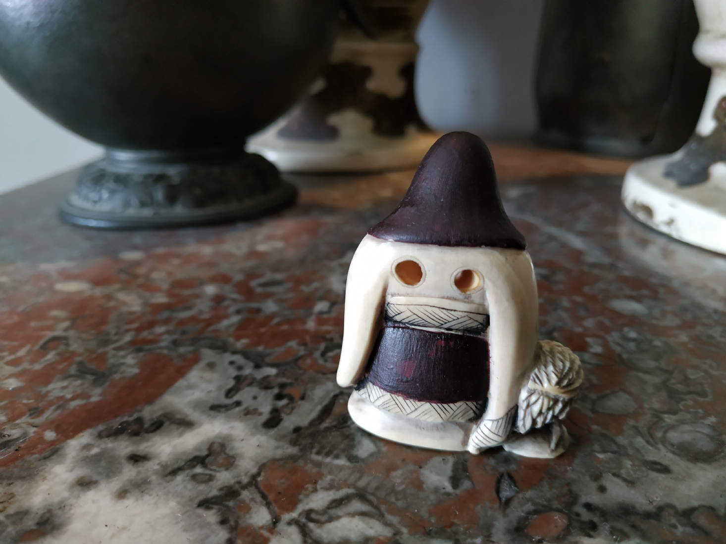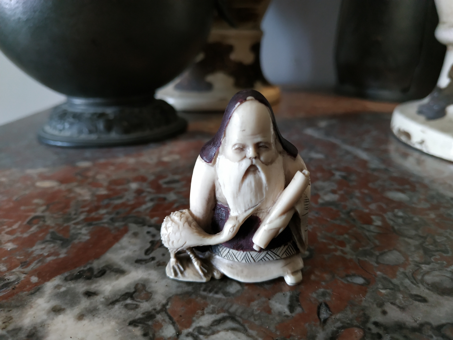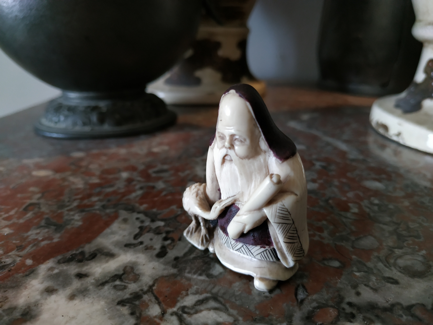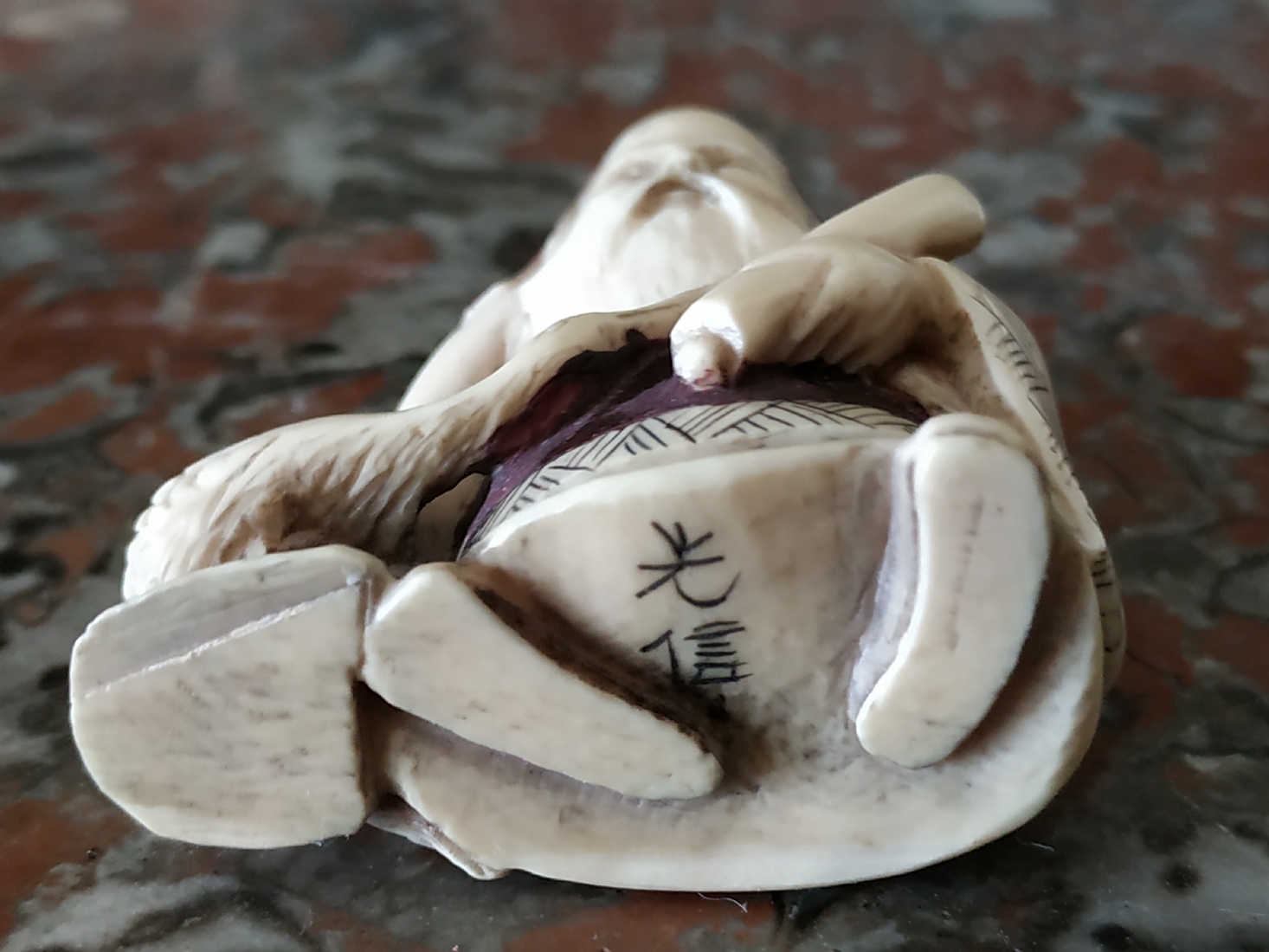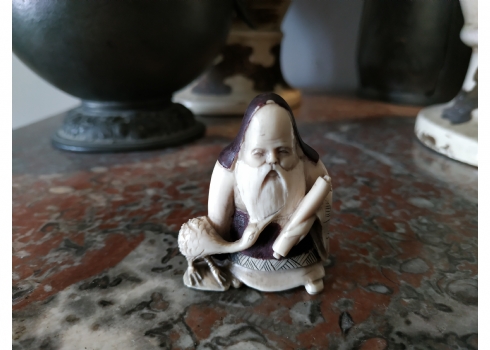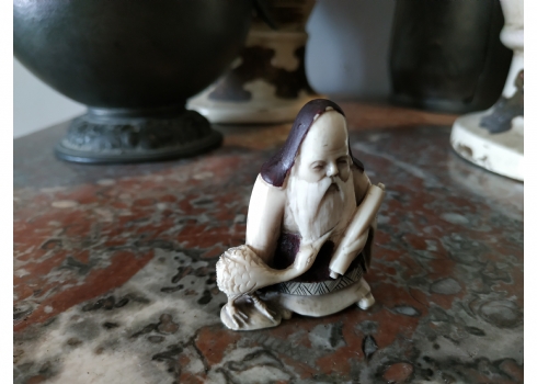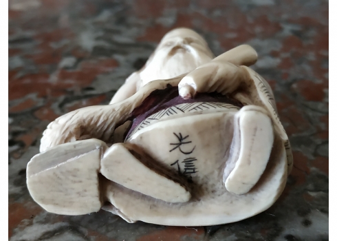 נטסקה שנהב סיני בדמות גבר חובב עגורים, חתום, גובה: 5.2 ס"מ.