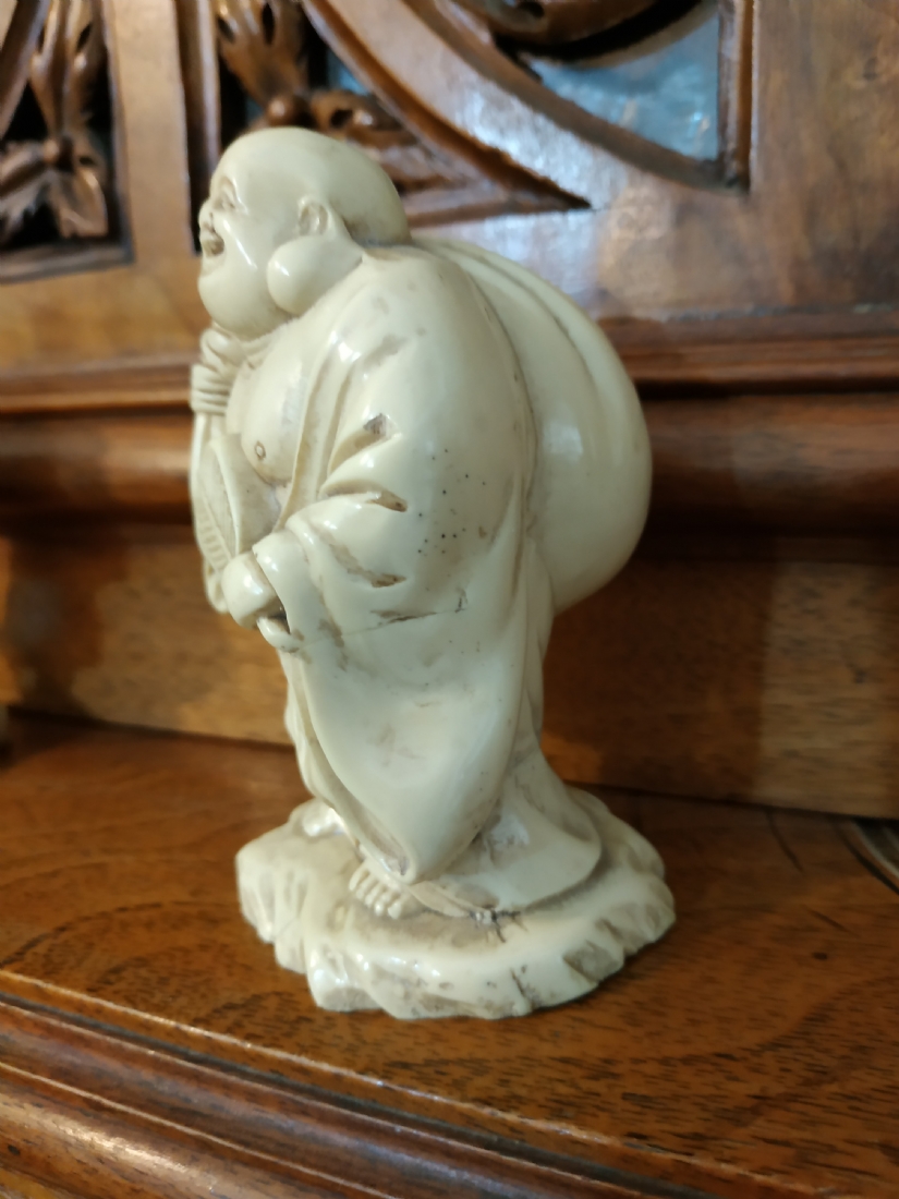 פסלון סיני יצוק מחומר בגוון שנהב, גובה: 10 ס"מ.