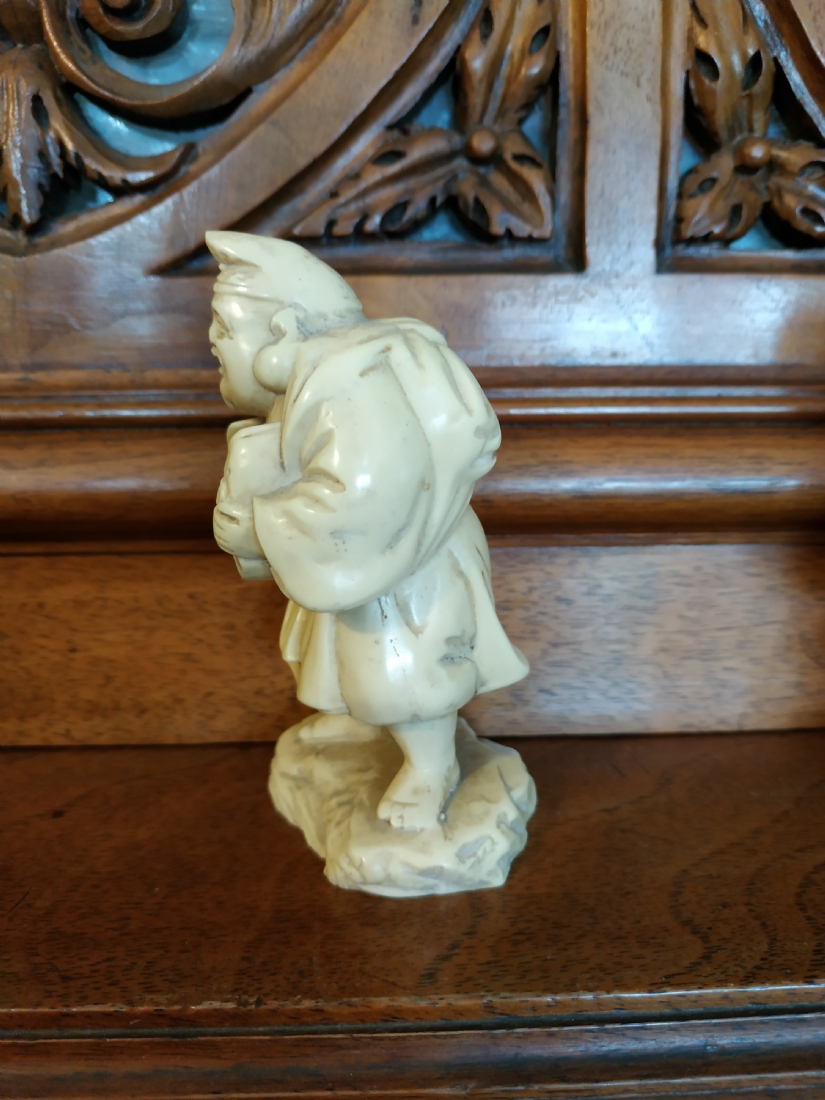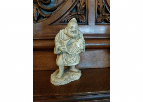 פסלון סיני יצוק מחומר בגוון שנהב, גובה: 9.5 ס"מ.
