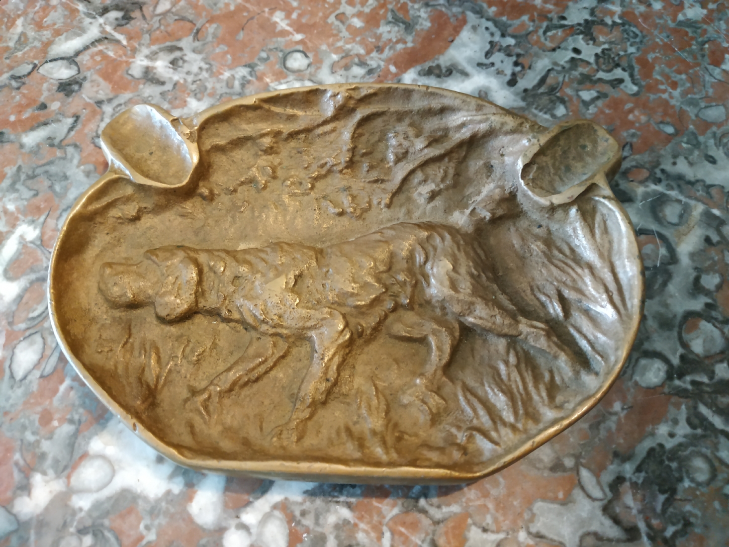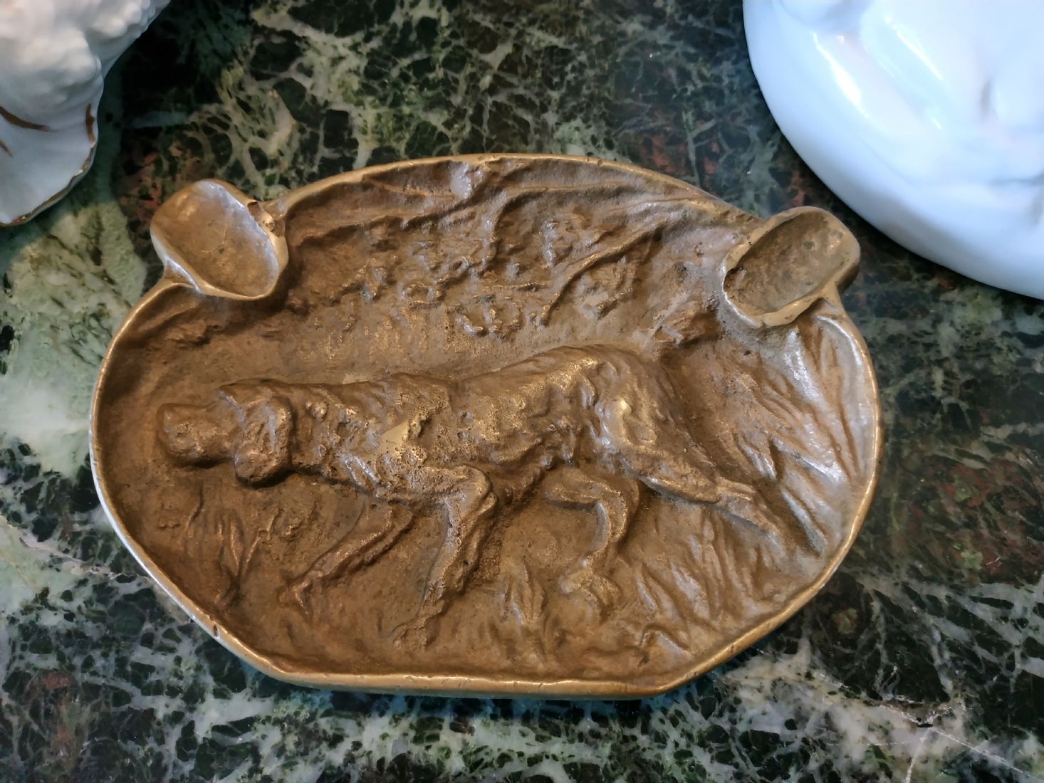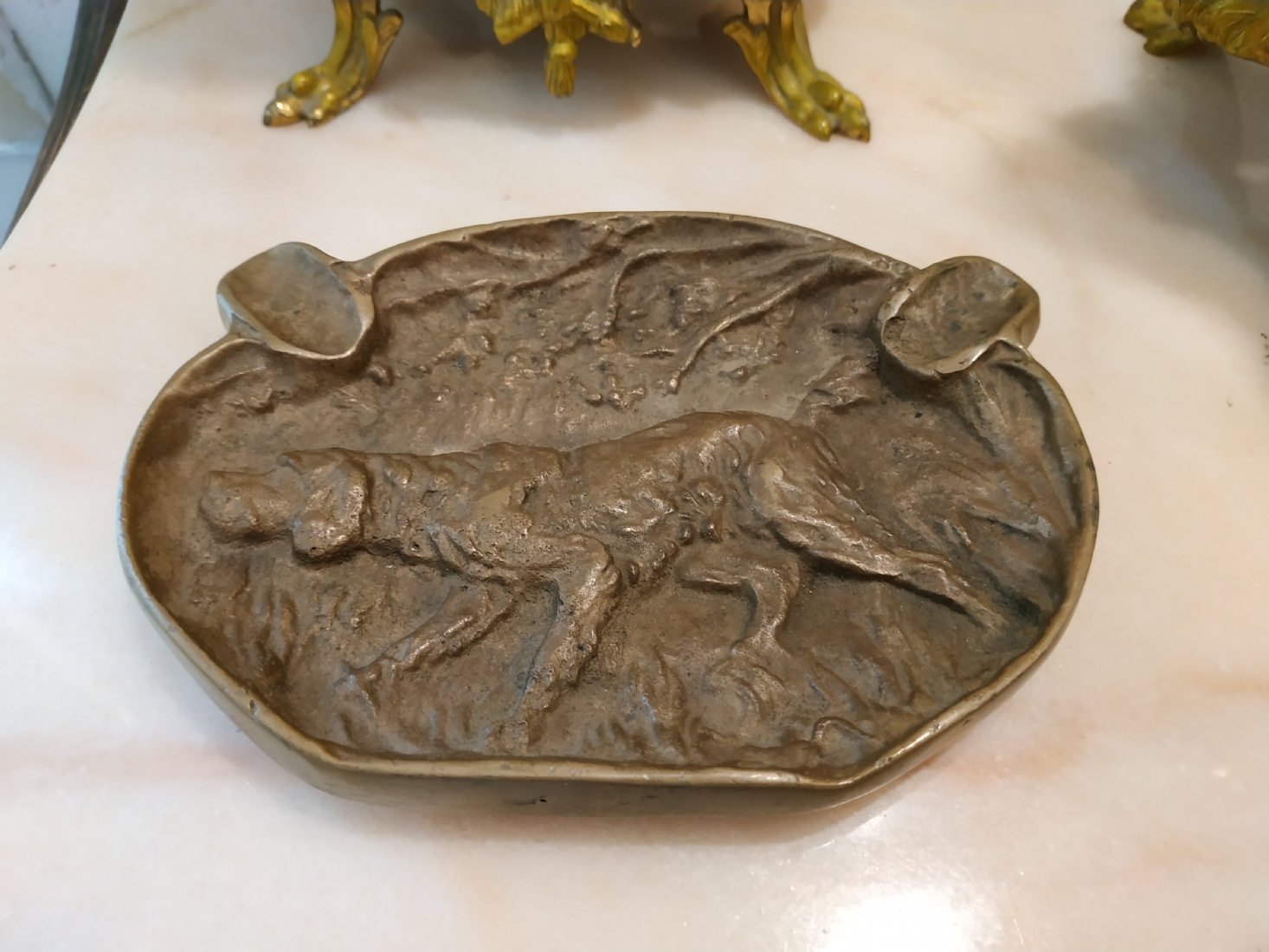 מאפרה צרפתית עתיקה עשויה ברונזה, מעוטרת עיטורי בלט בדמות כלב