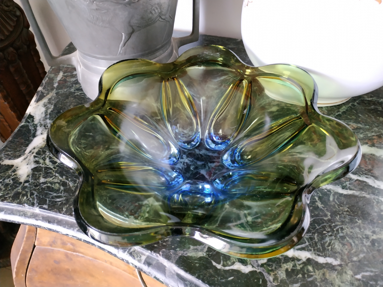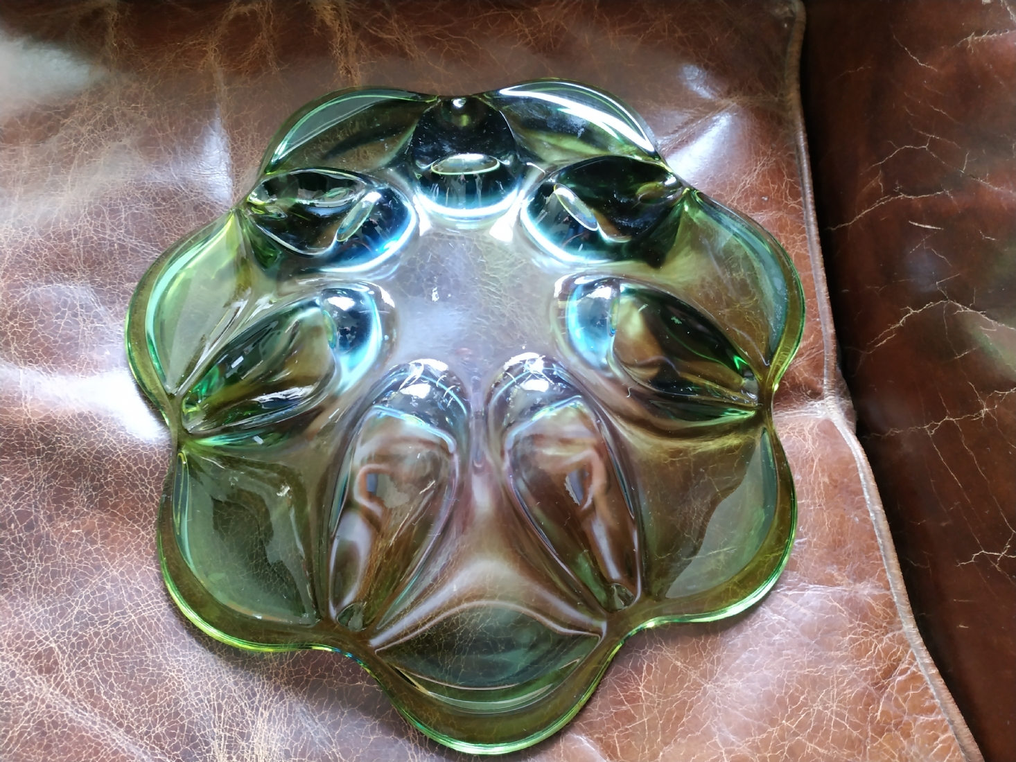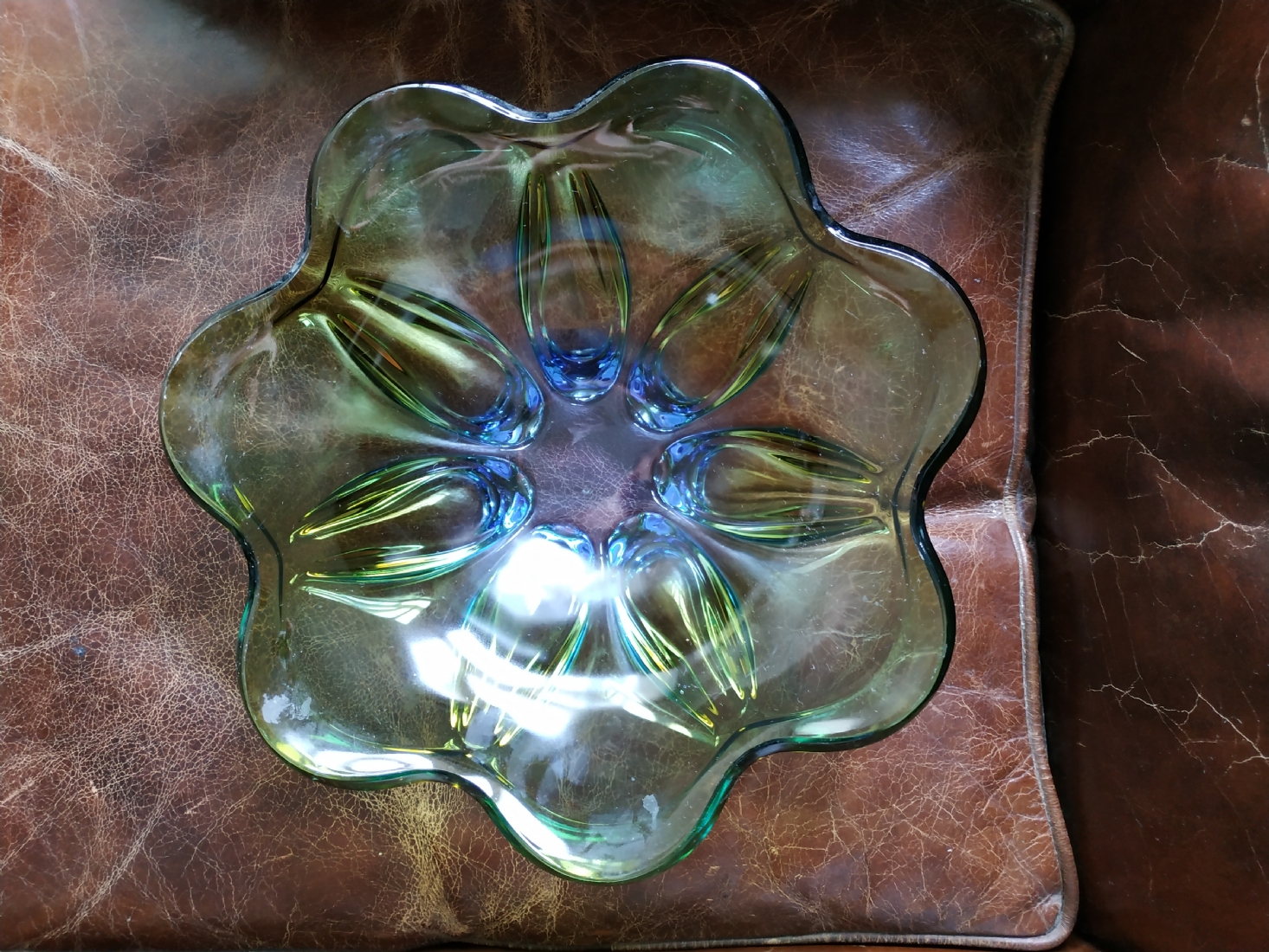 לחובבי וינטג' - כלי זכוכית ישן, כפי הנראה צ'כי, קוטר: 30 ס"מ.