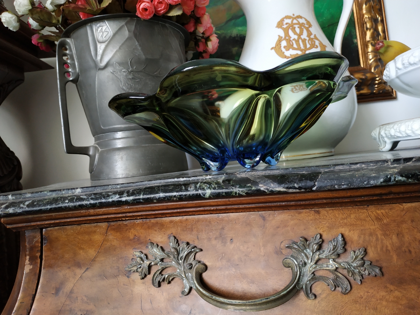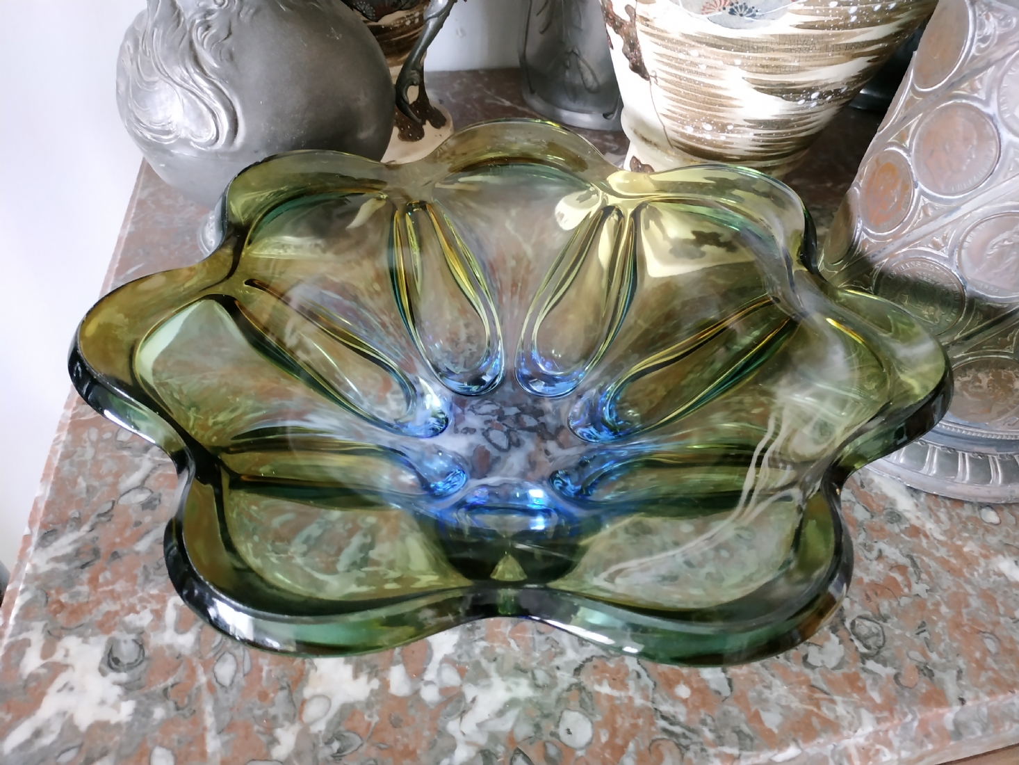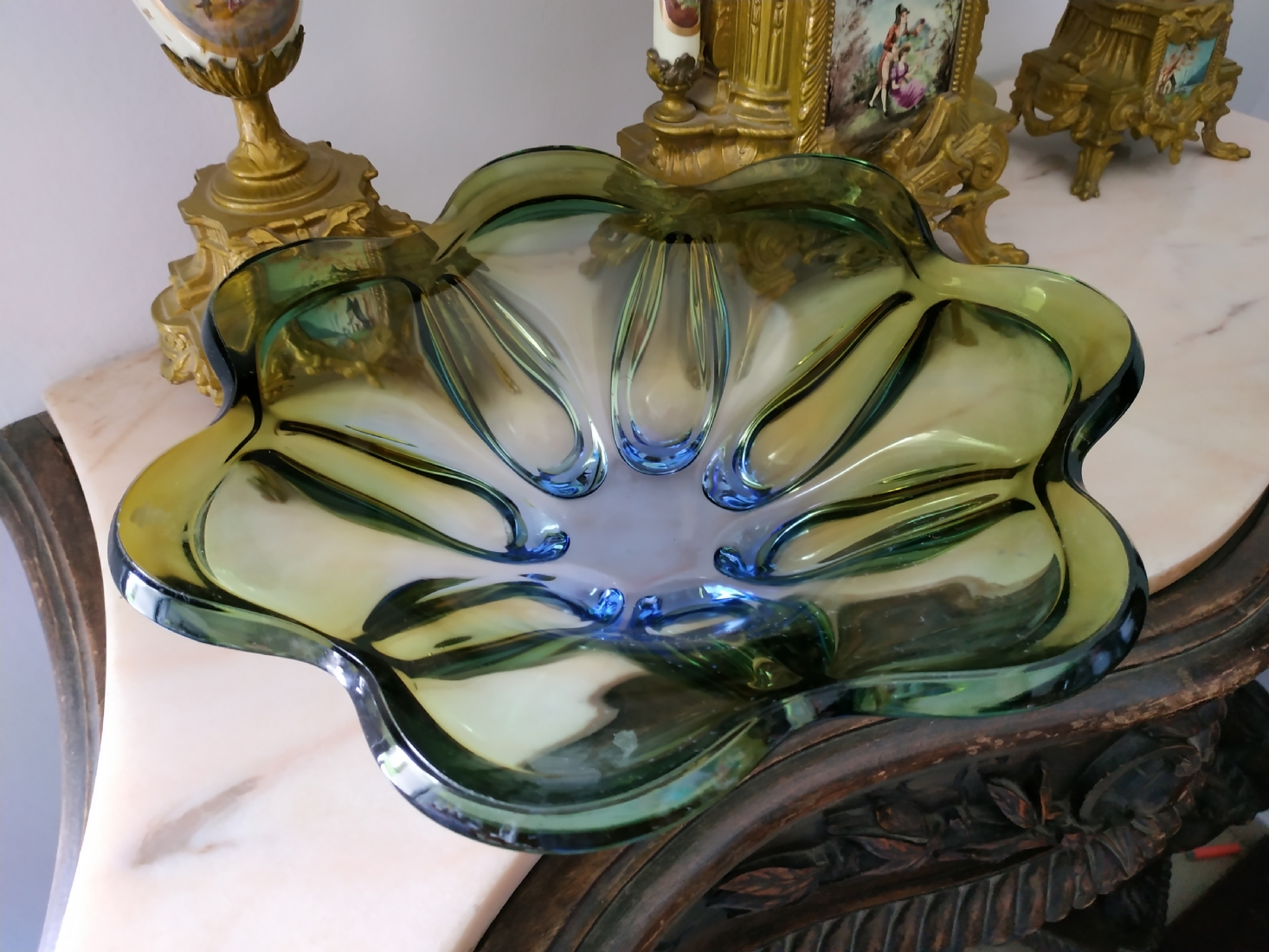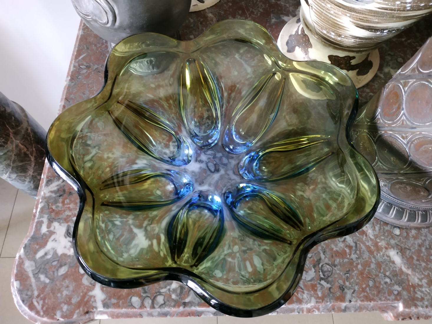 לחובבי וינטג' - כלי זכוכית ישן, כפי הנראה צ'כי, קוטר: 30 ס"מ.