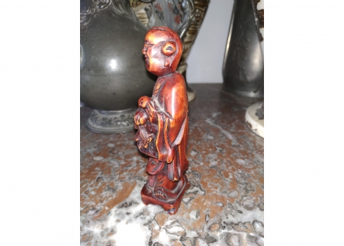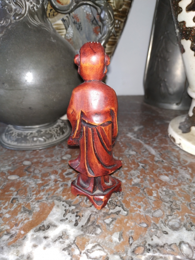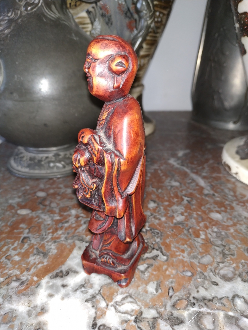 פסלון עץ סיני מגולף, גובה: 12.5 ס"מ.
