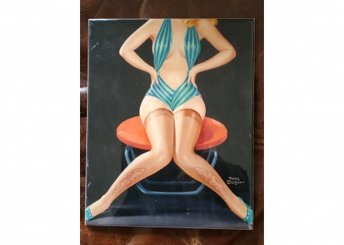 'בקיץ הזה תלבשי פסים' - אריח חרסינה מודפס לתליה על הקיר מעוטר באמירה אופנתית בועטת, מידות: 25X20 ס"מ.