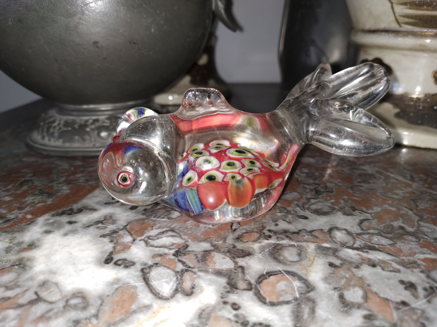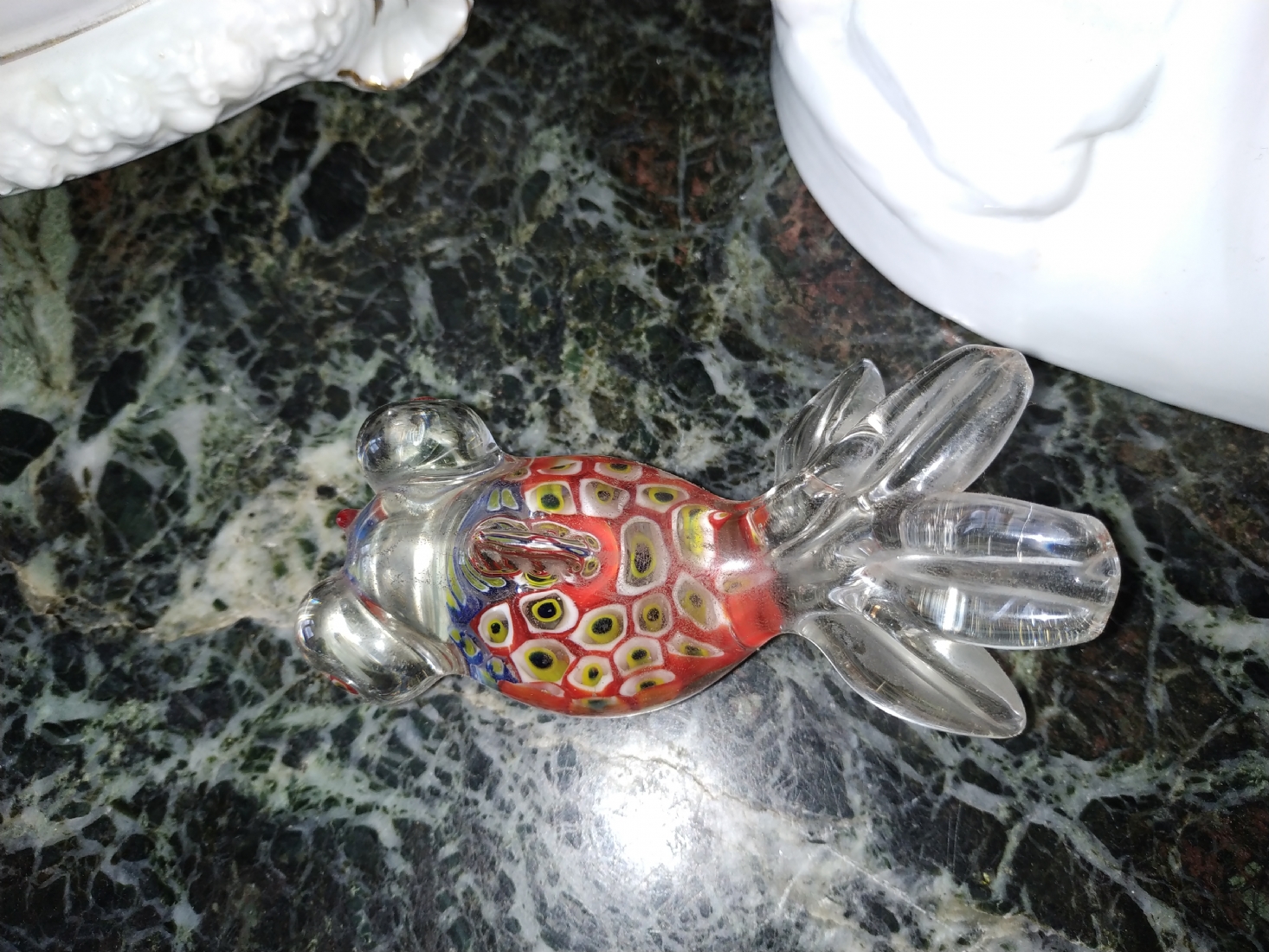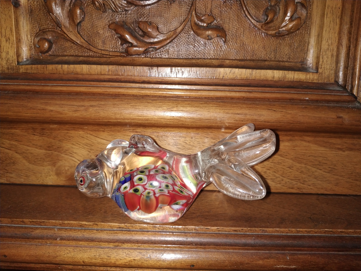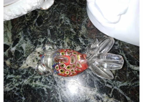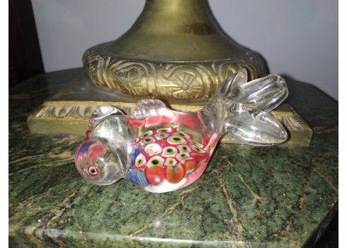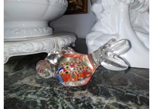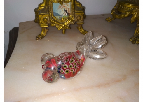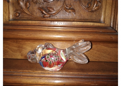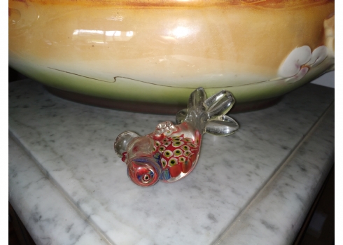 משקולת נייר ישנה עשויה זכוכית בעבודת ניפוח ידנית, מעוצבת כדג