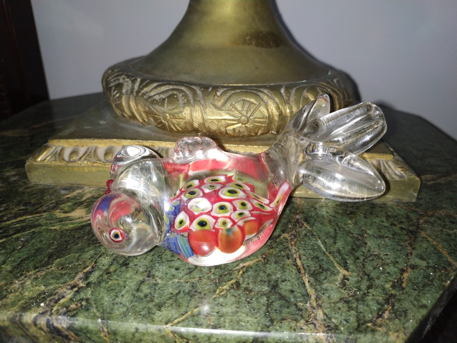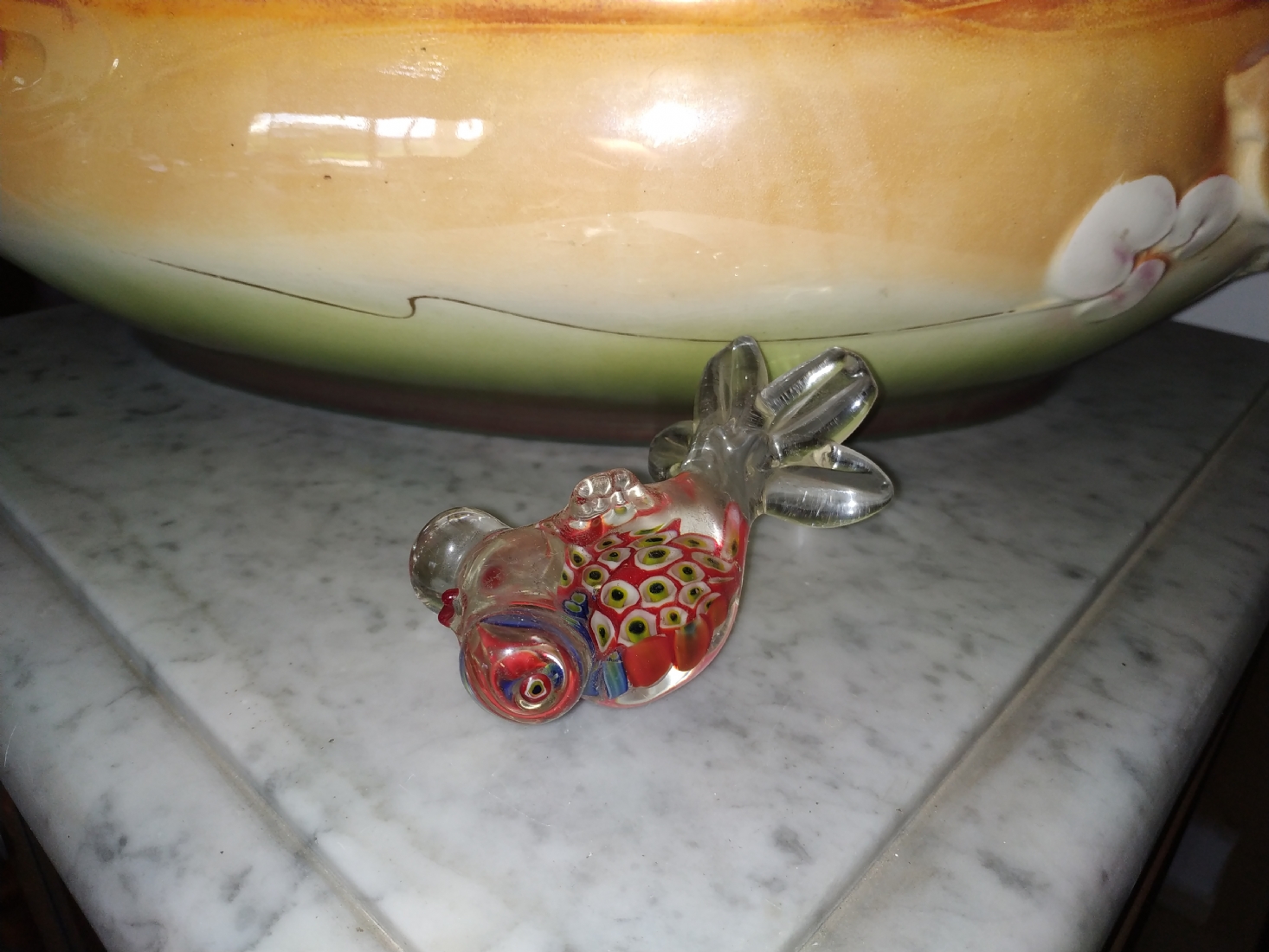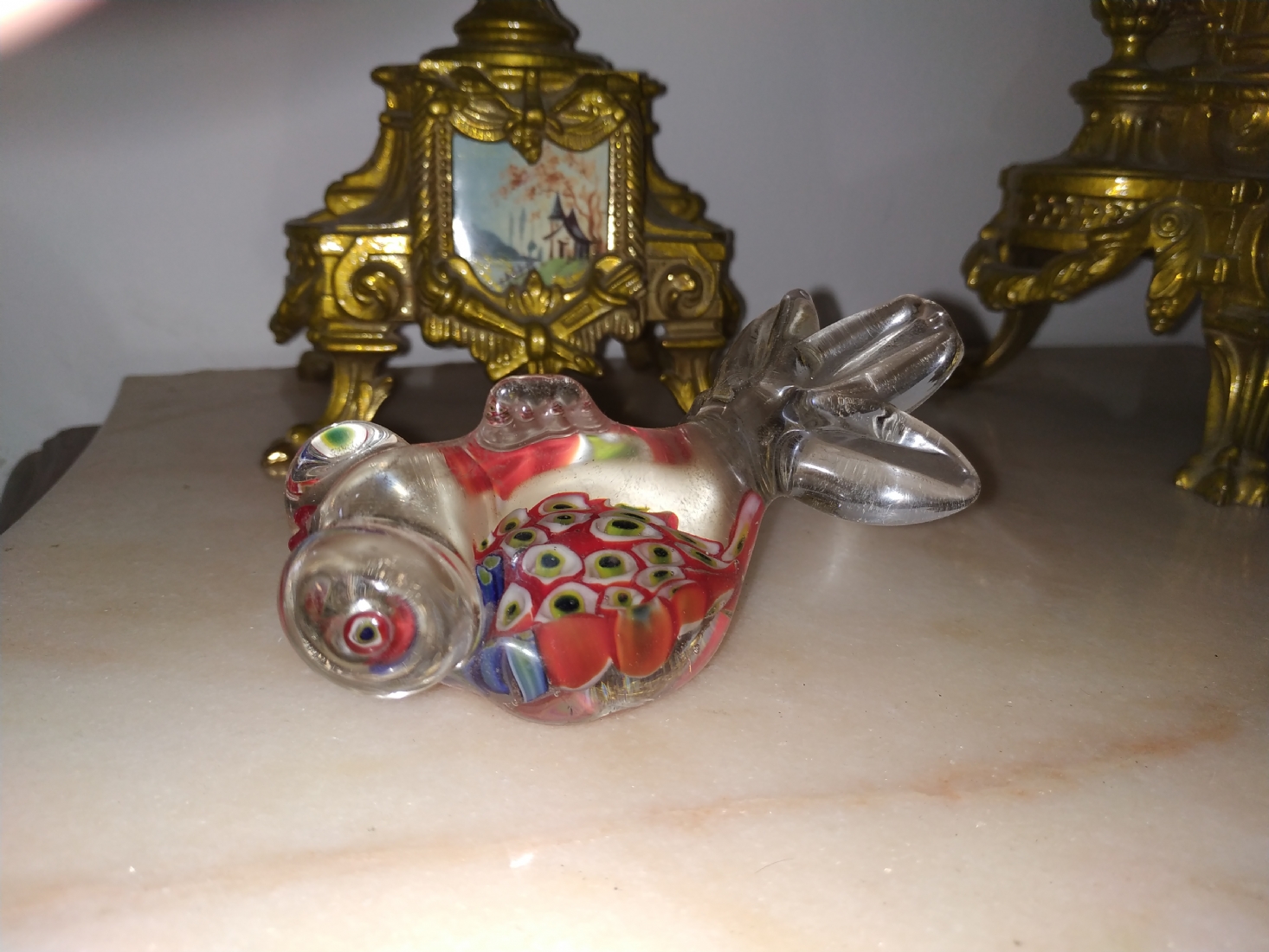 משקולת נייר ישנה עשויה זכוכית בעבודת ניפוח ידנית, מעוצבת כדג