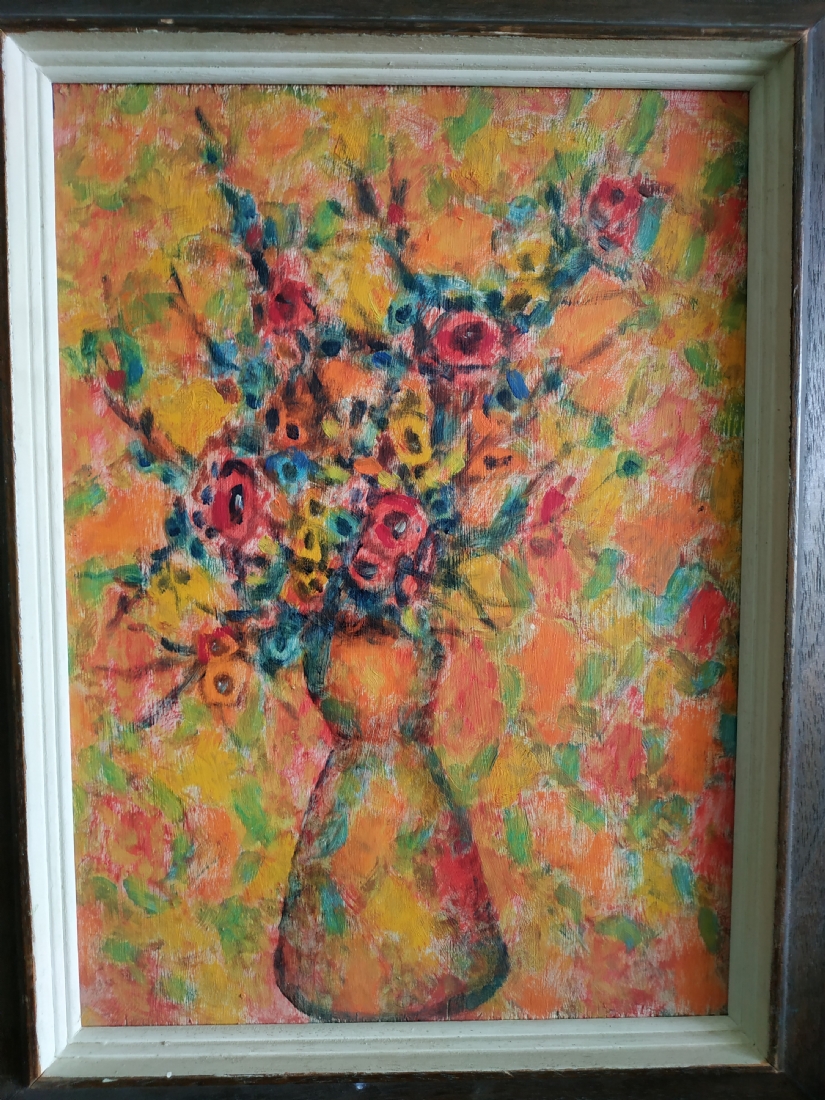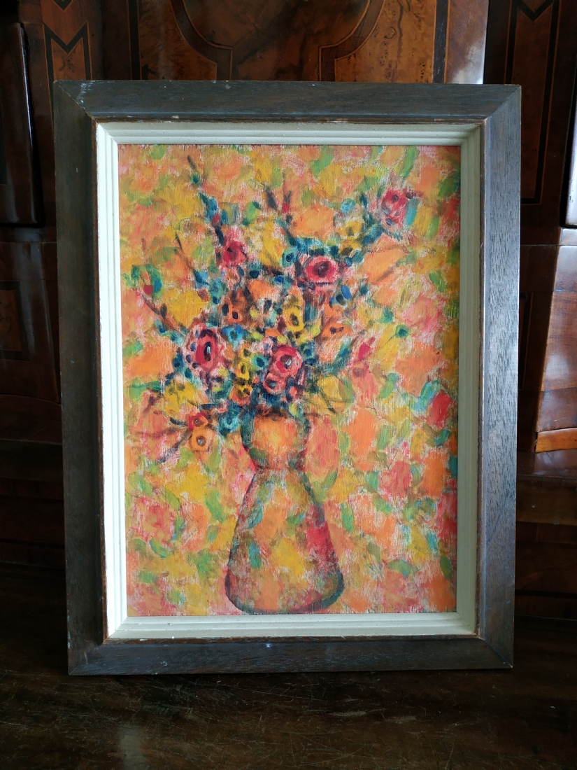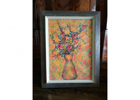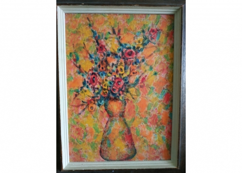 מספר הפריט בקטלוג 56אריה קפלון - 'עוד זר פרחים מאברשה' - ציור ישן, שמן על לוח, לא חתום, מידות: 33X24 ס"מ.