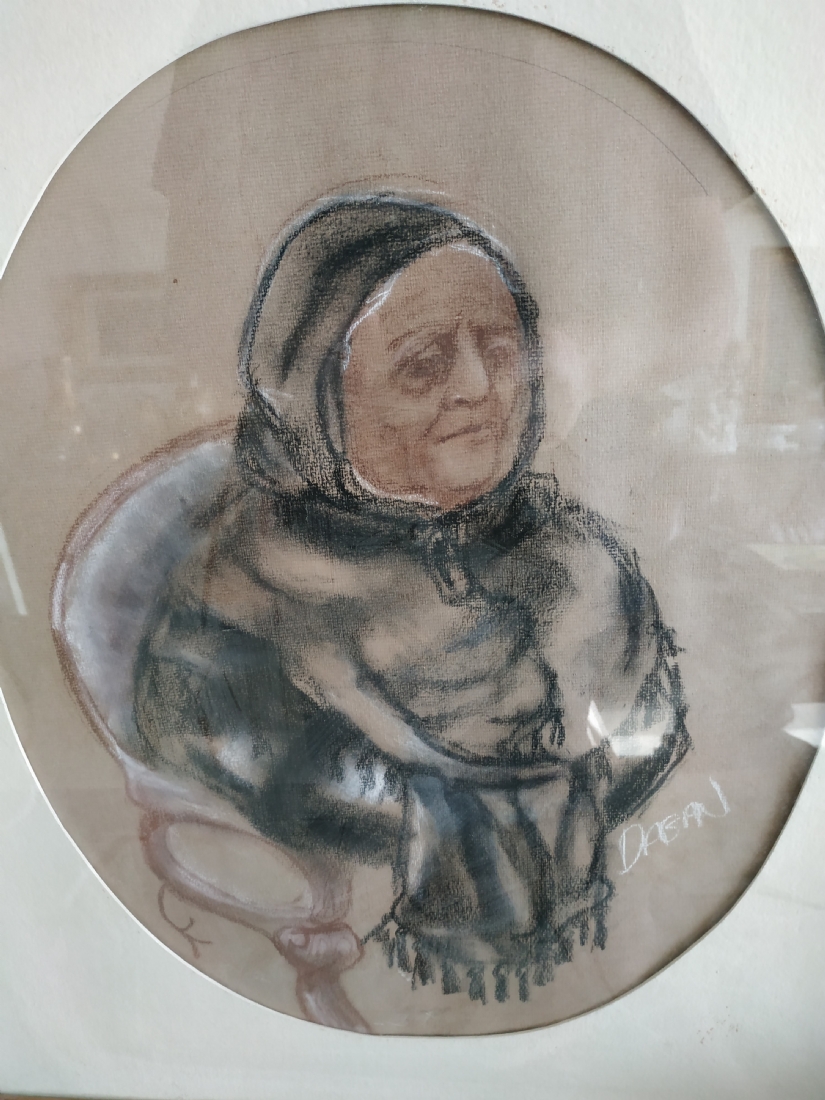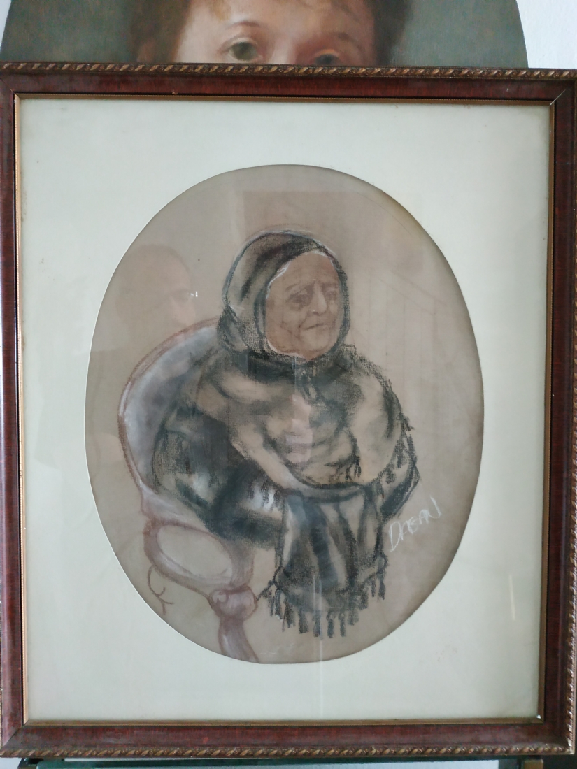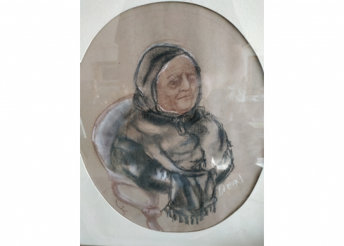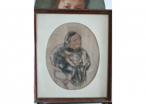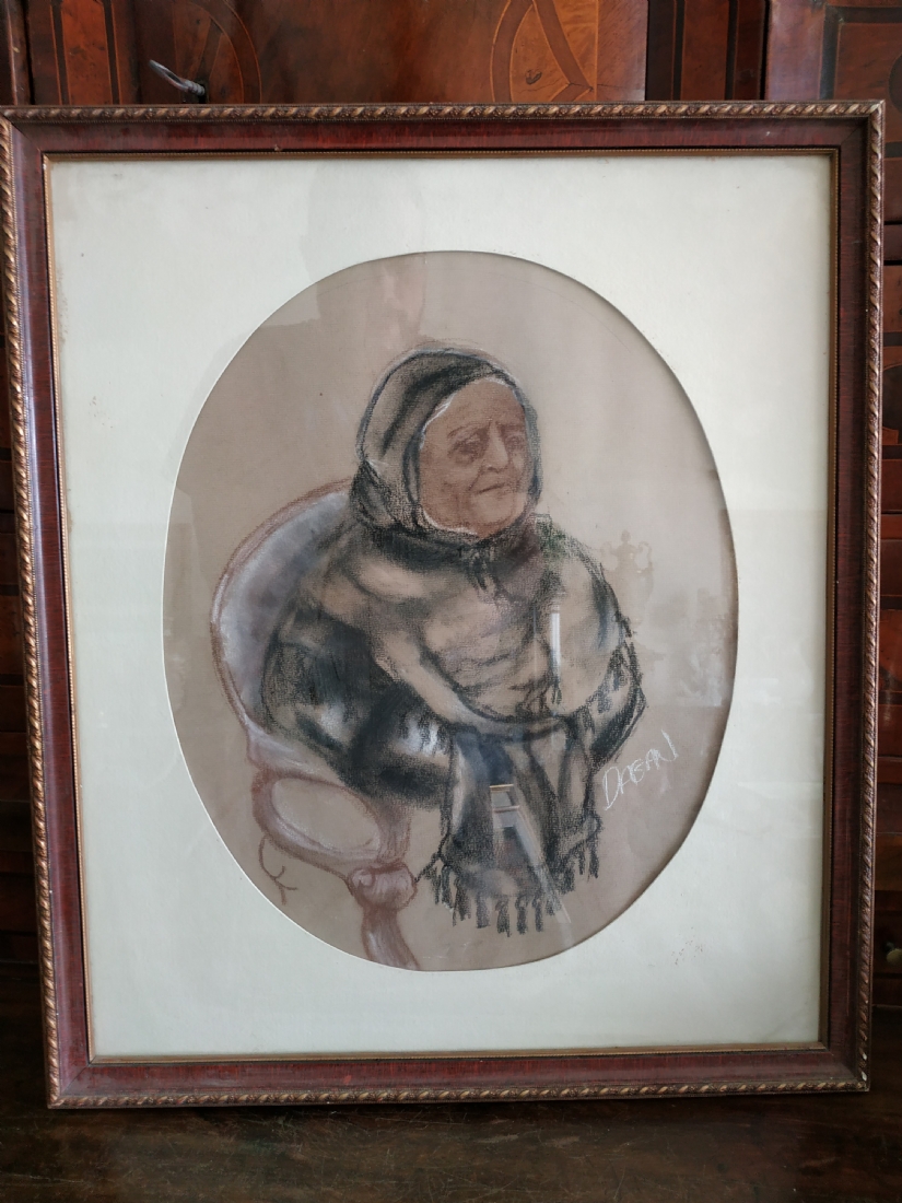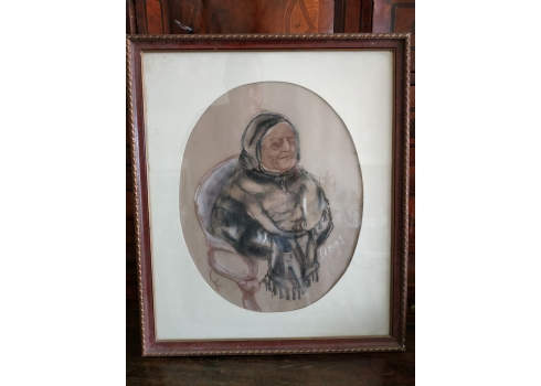 'פעם הייתי דוגמנית מפורסמת בוינה' - ציור ישן, גירי פסטל על נייר, חתום, גובה: 40 ס"מ.