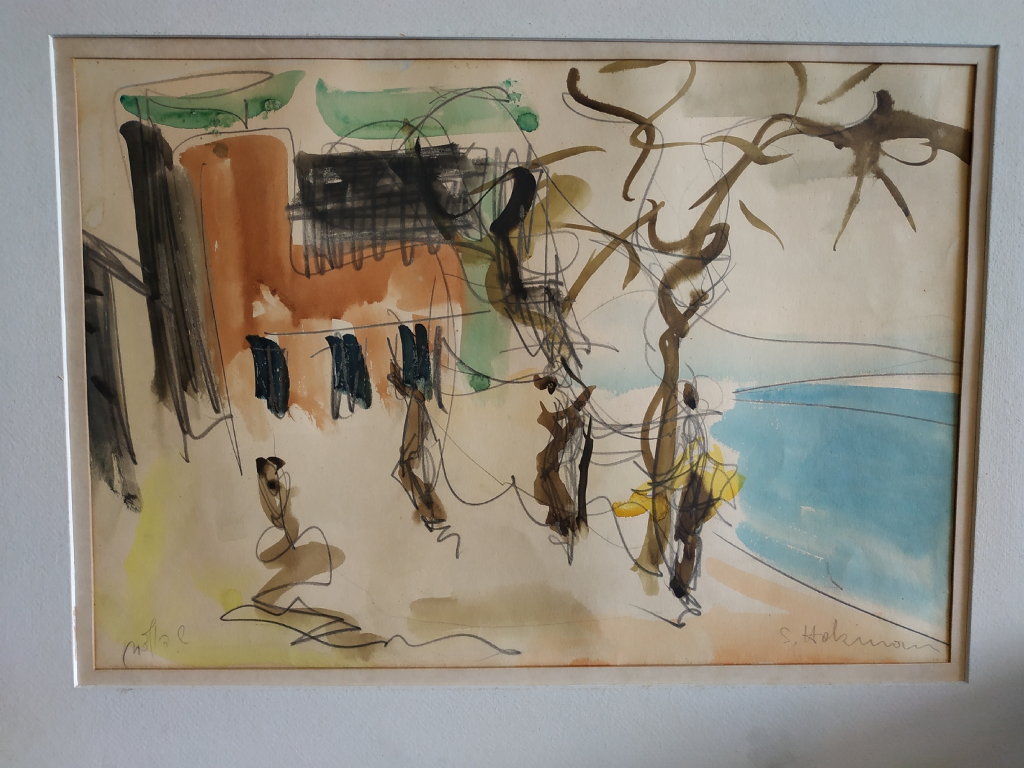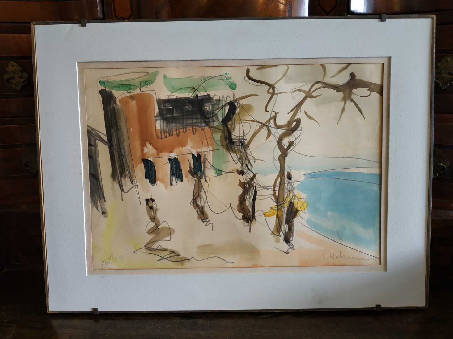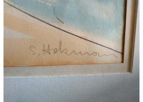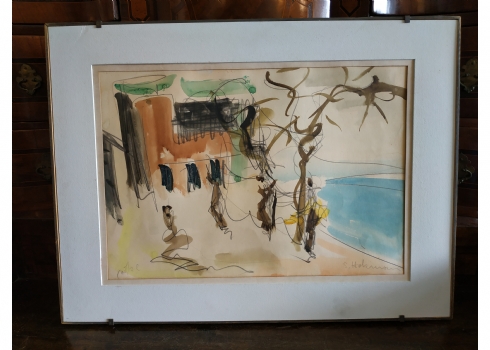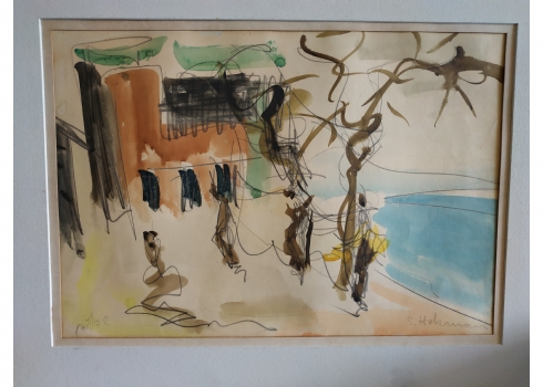מספר הפריט בקטלוג 127שמשון הולצמן (Shimshon Holzman) - 'דמויות', ציור גדול, אקוורל על נייר, חתום, מידות: 35X50 ס"מ.