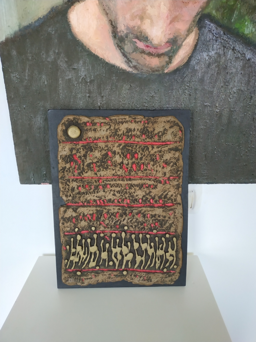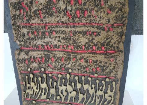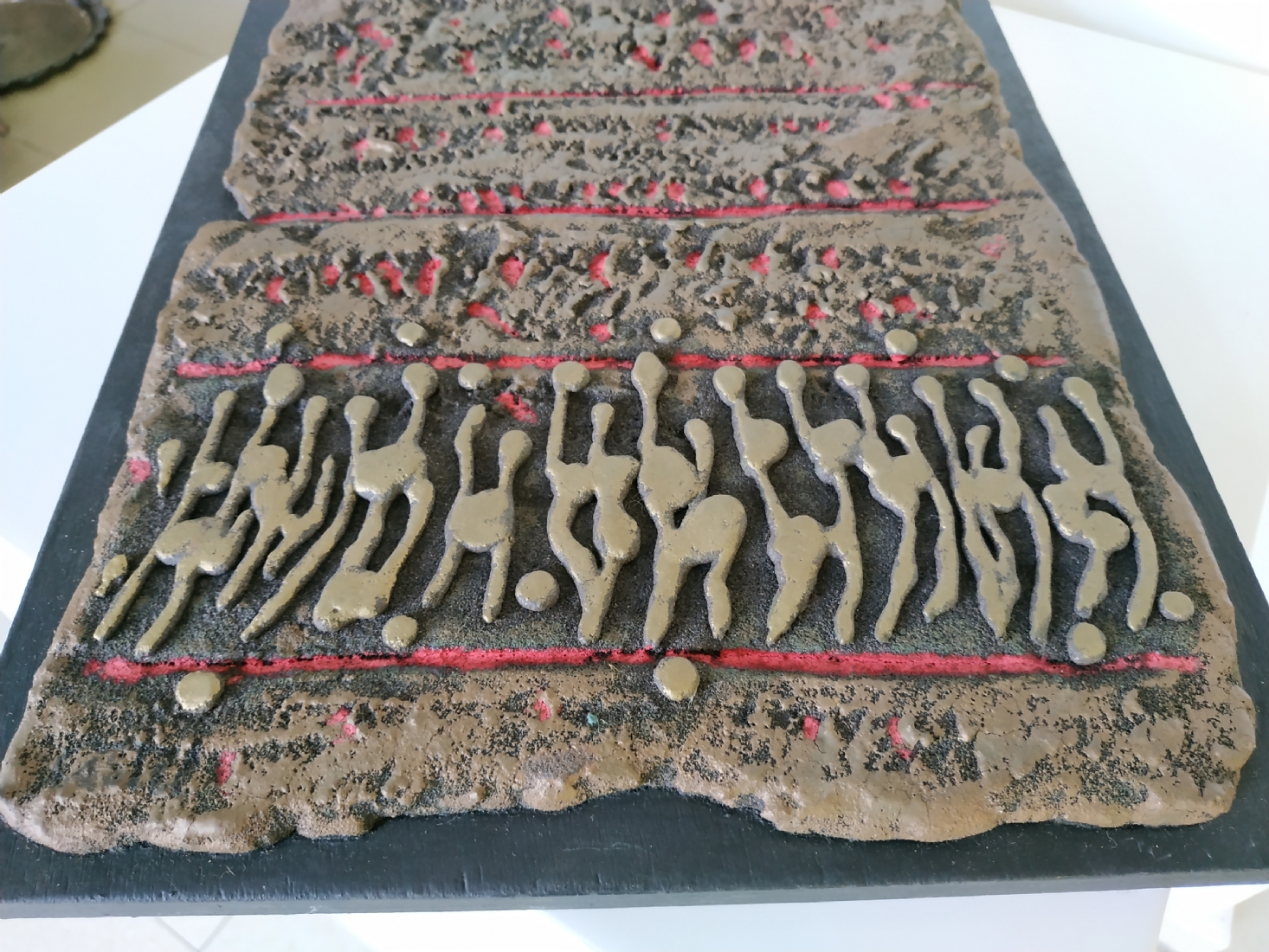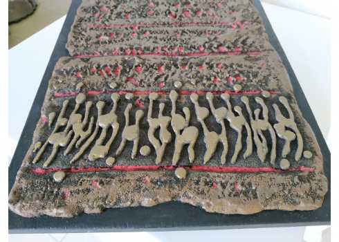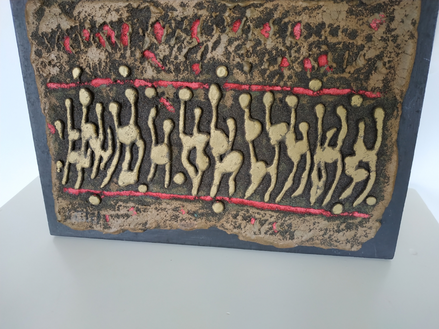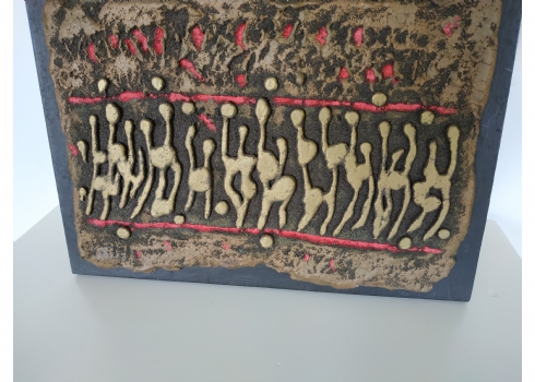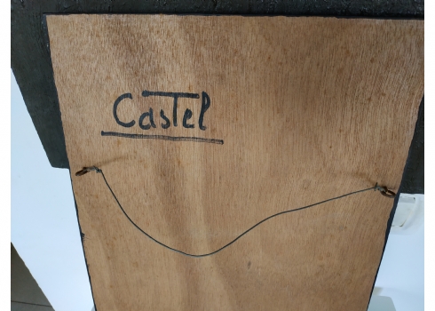 מספר הפריט בקטלוג 119משה קסטל (Moshe Castel) - דמויות, בזלת ושמן על עץ, חתום מאחור, נרכש בשנות השבעים על ידי סבו של הבעלים, מידות לוח העץ: 37X27 ס"מ.