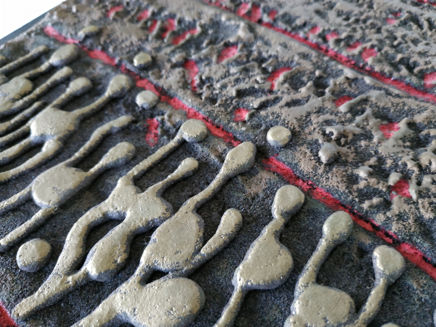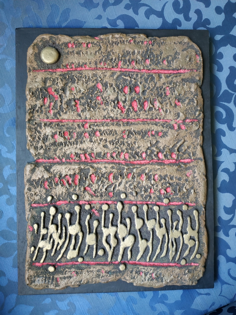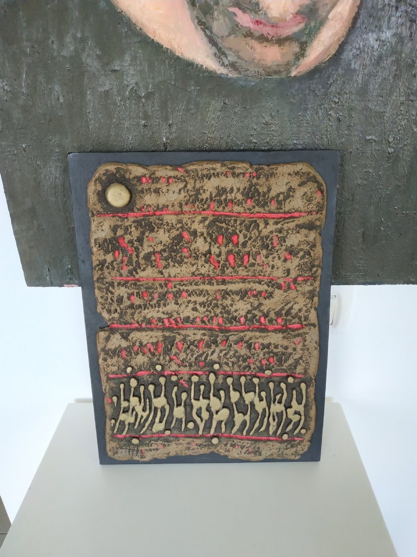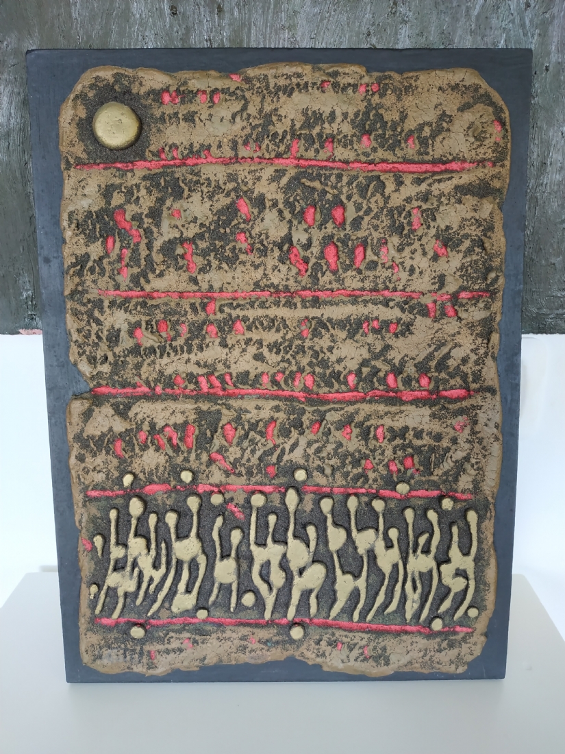 מספר הפריט בקטלוג 119משה קסטל (Moshe Castel) - דמויות, בזלת ושמן על עץ, חתום מאחור, נרכש בשנות השבעים על ידי סבו של הבעלים, מידות לוח העץ: 37X27 ס"מ.