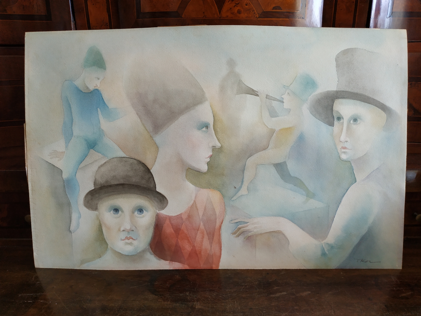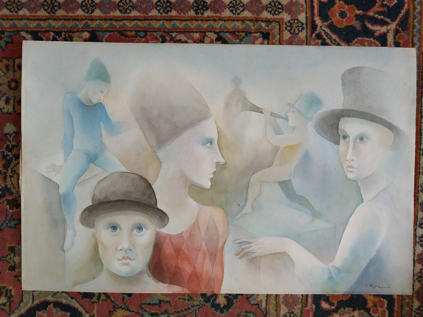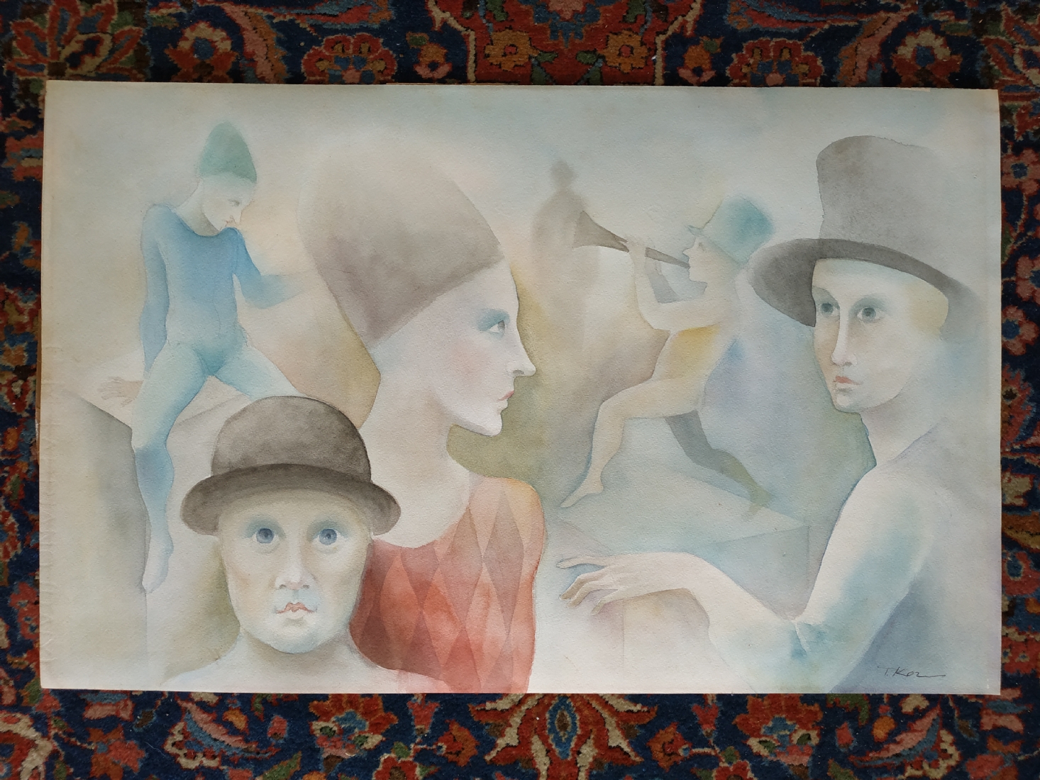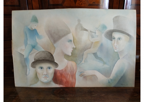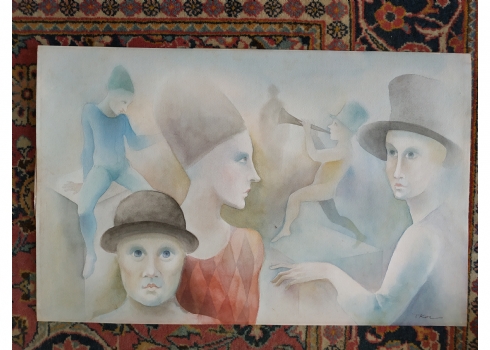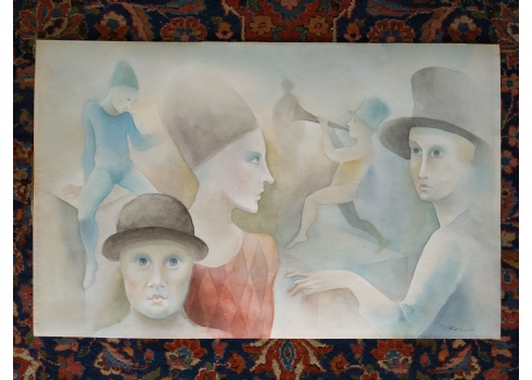 מספר הפריט בקטלוג 181פול קור - 'החצוצרן הערום' - אקוורל על נייר, חתום, לא ממוסגר, מידות: 34X54 ס"מ.