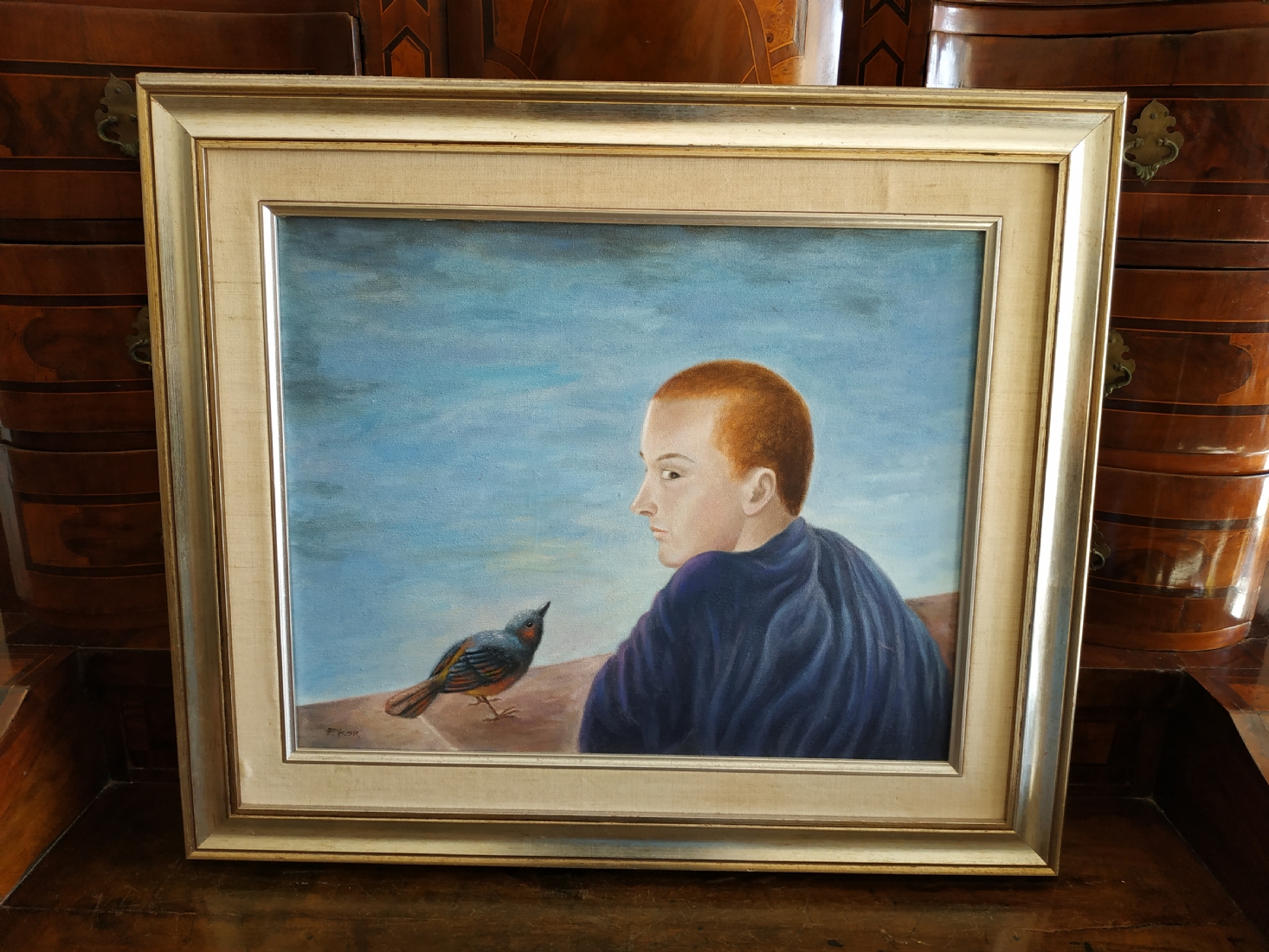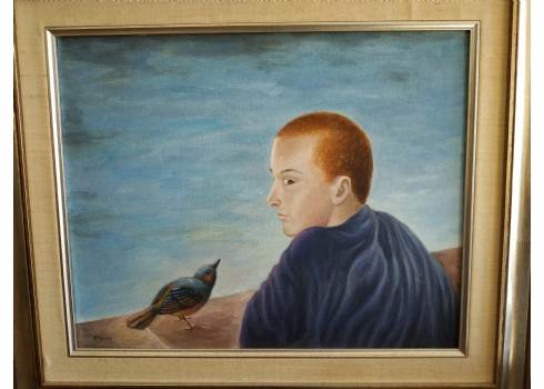 מספר הפריט בקטלוג 187פול קור - 'ציפור קטנה לחשה לי' - שמן על בד, חתום, מידות: 40X50 ס"מ.