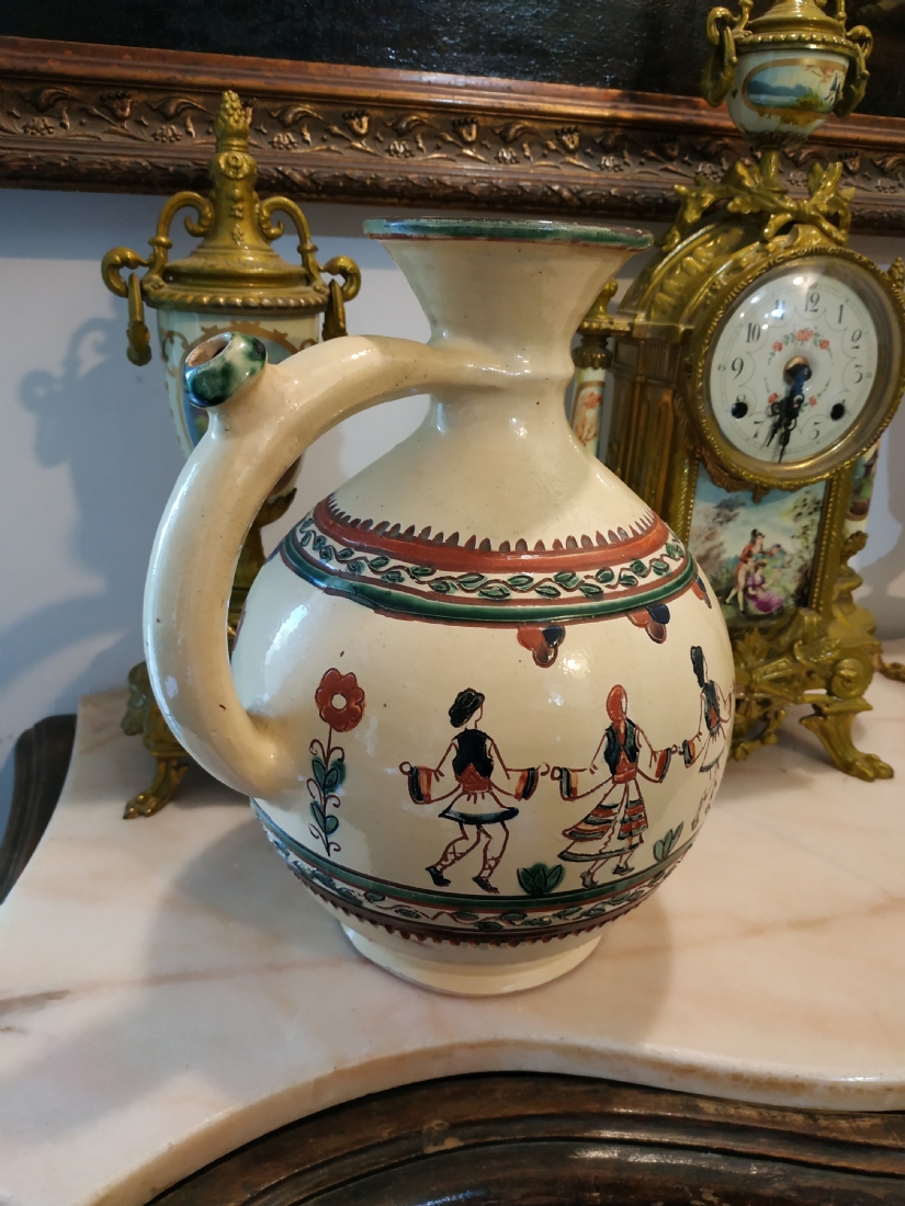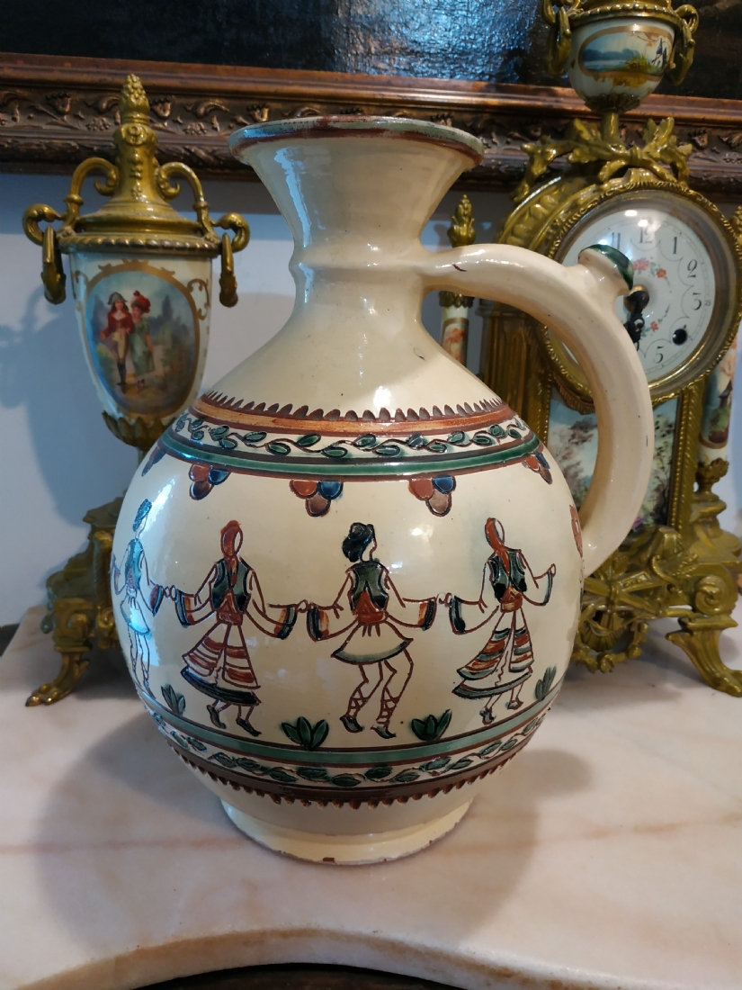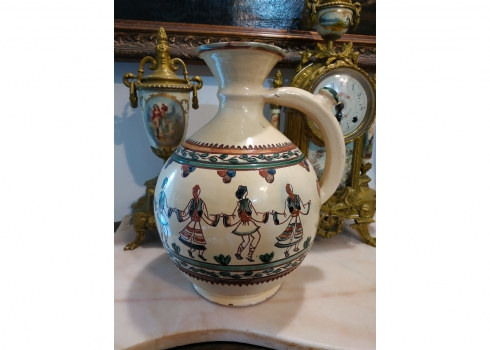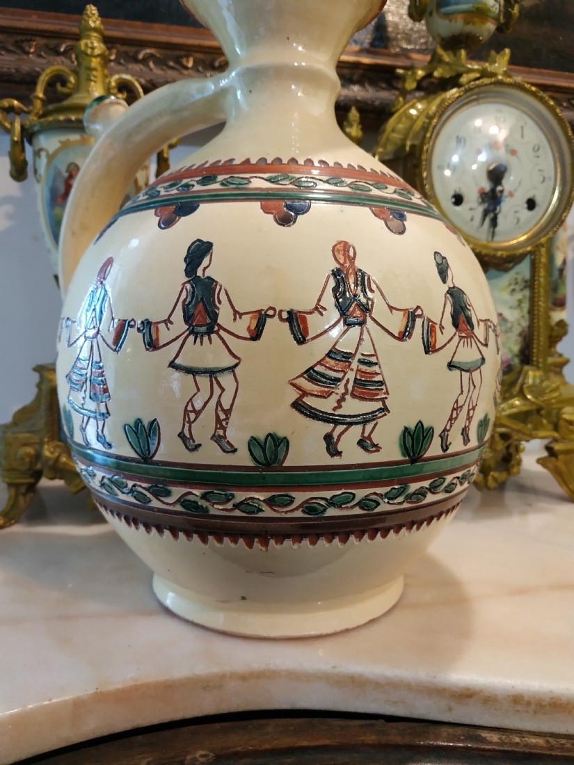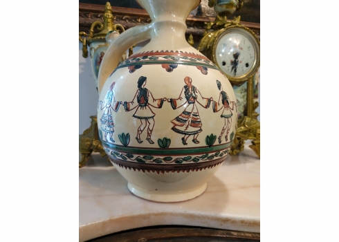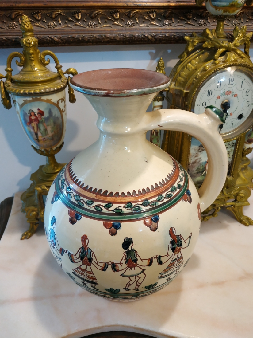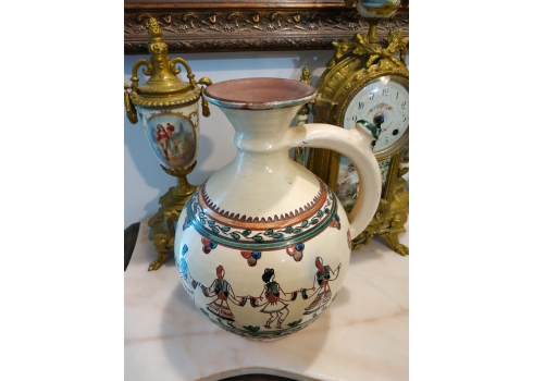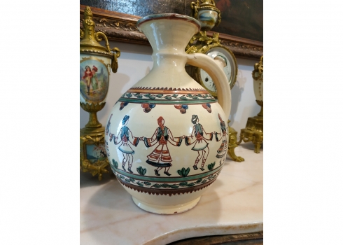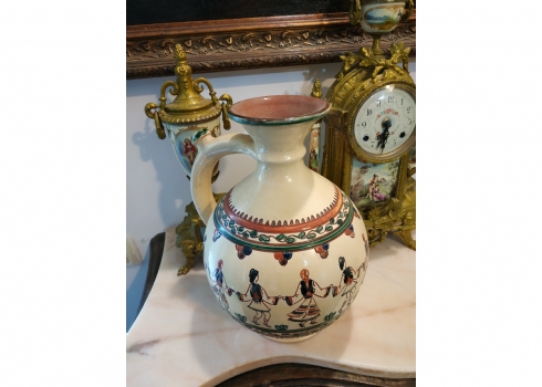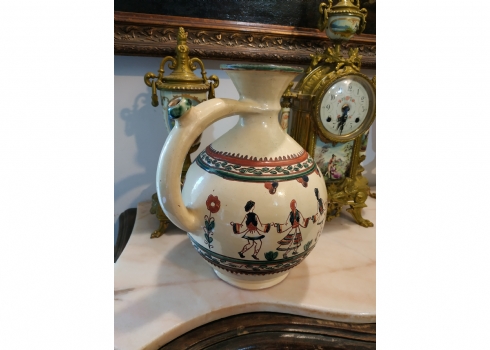 קנקן רומני גדול עשוי קרמיקה מצויירת, חתום, גובה: 27.5 ס"מ.