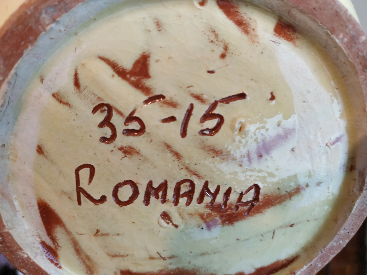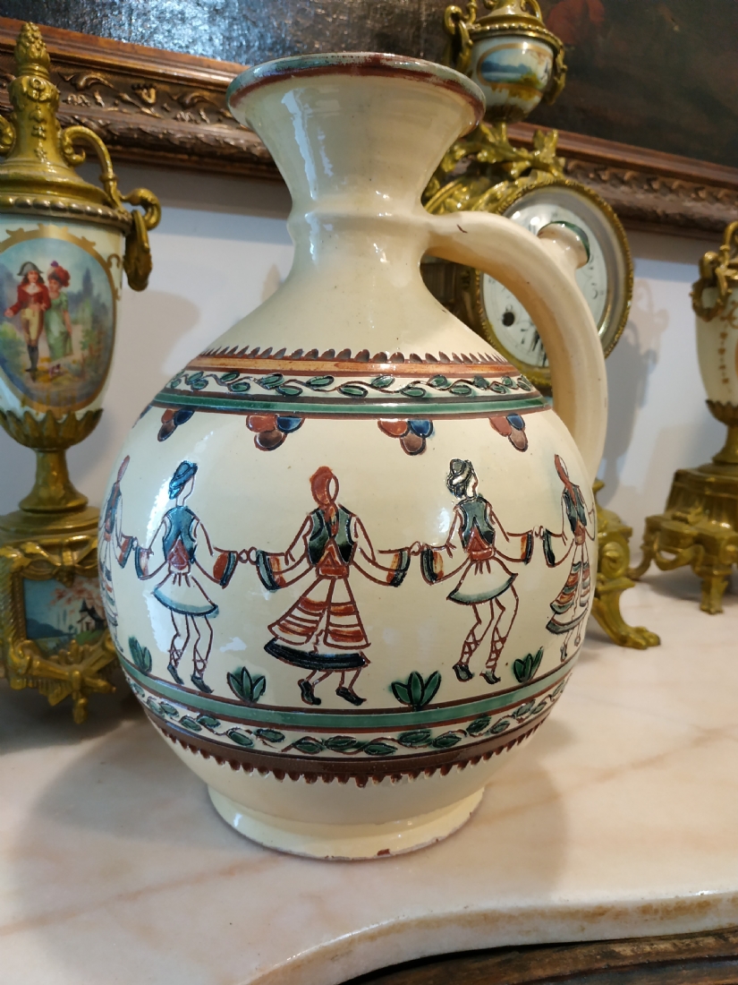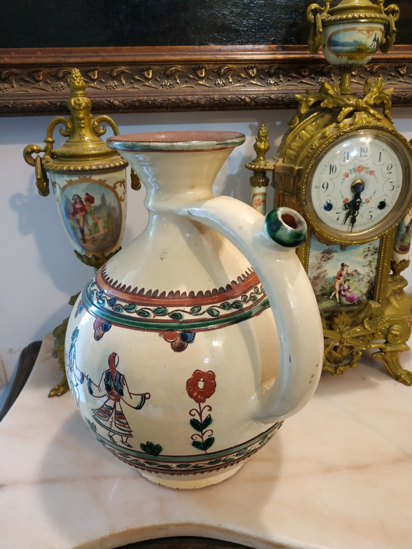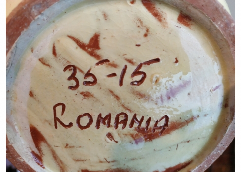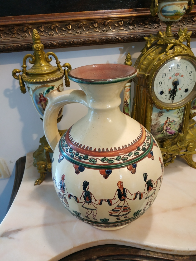קנקן רומני גדול עשוי קרמיקה מצויירת, חתום, גובה: 27.5 ס"מ.