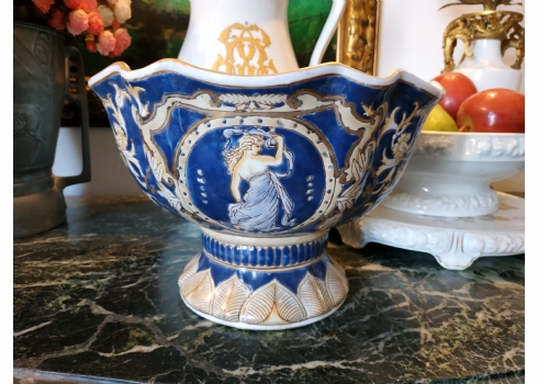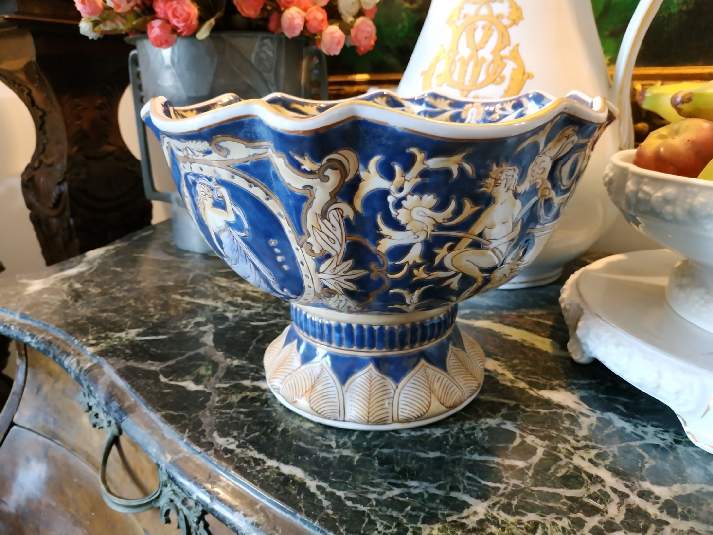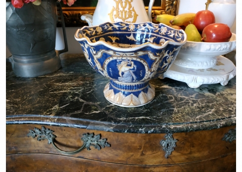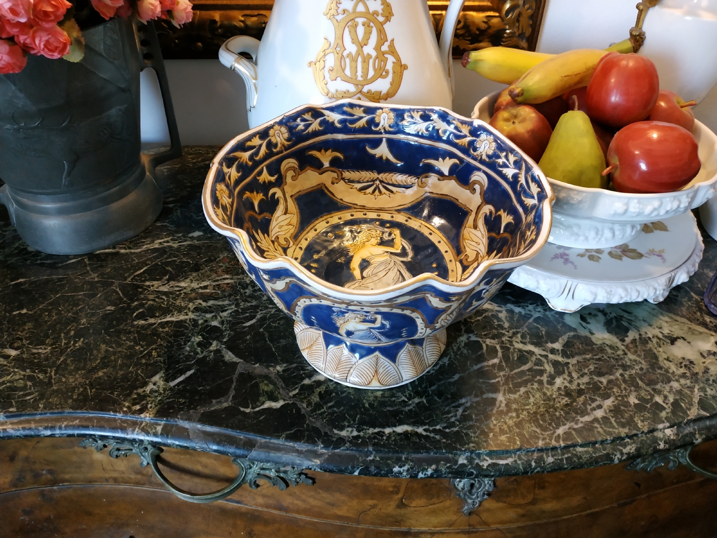 קערה איטלקית מרשימה, מעוטרת אמייל, תיקון ישן, גובה: 19 ס"מ, קוטר: 27 ס"מ.