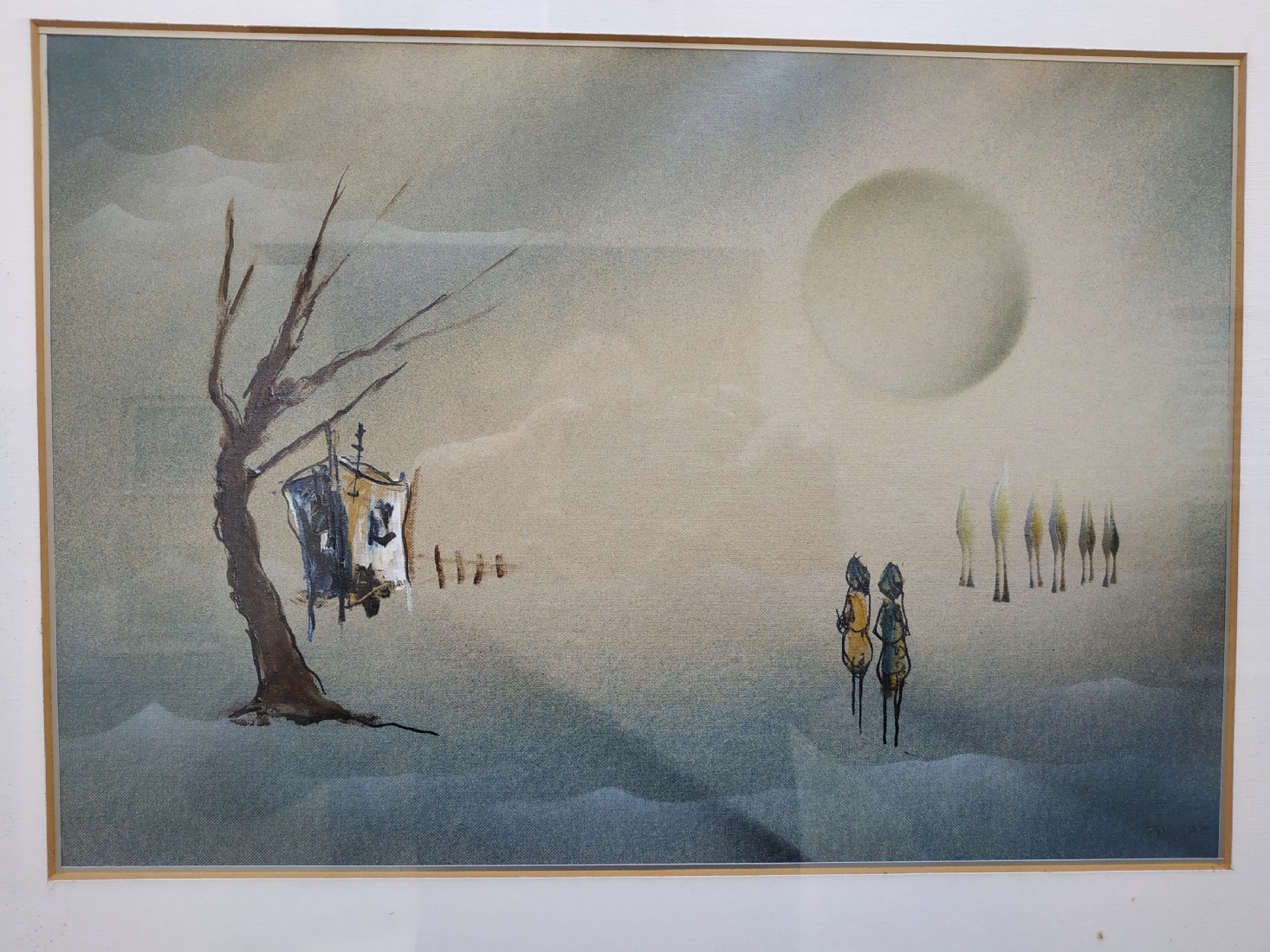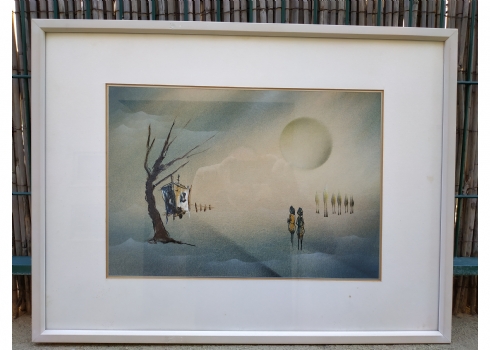 ציור ישן, טכניקה מעורבת על נייר, לא חתום, אמן לא מזוהה, מידות: 33X45 ס"מ.