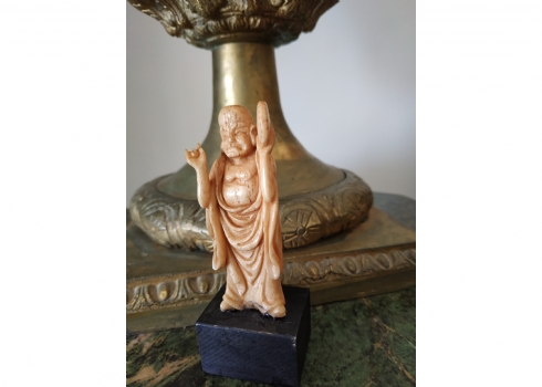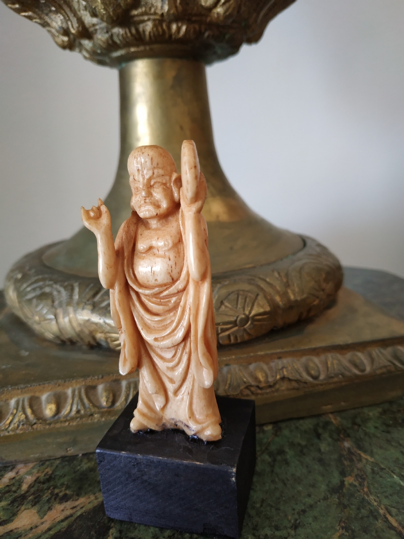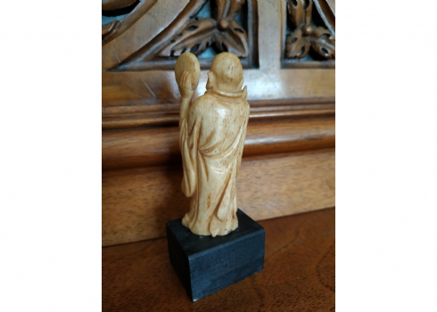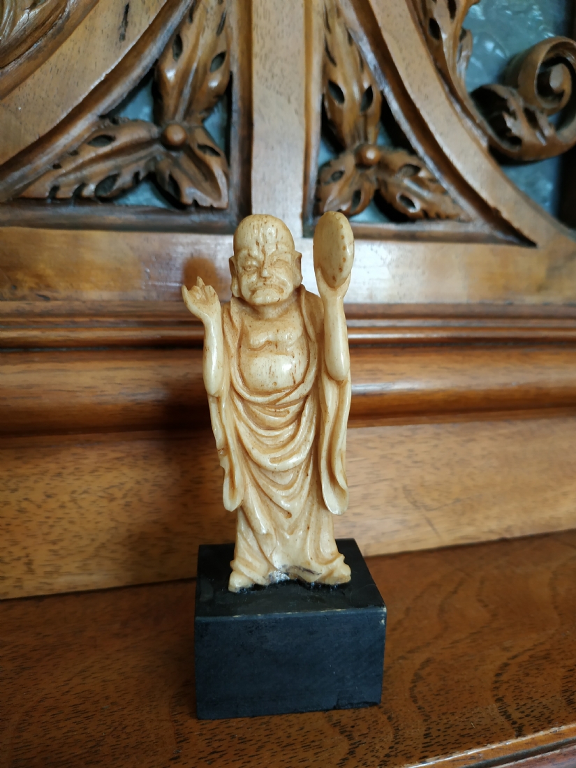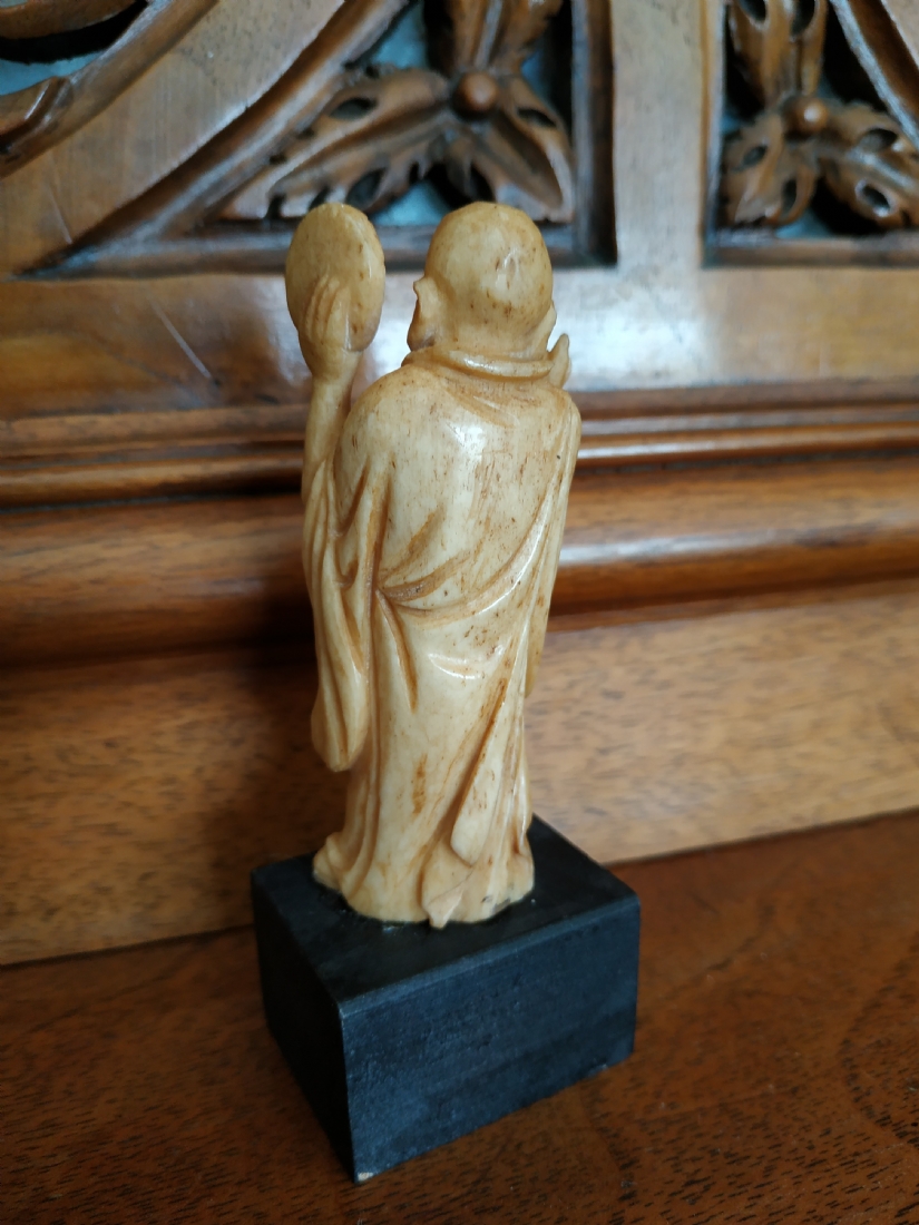 פסלון שנהב סיני ישן, בסיס עץ, גובה כולל: 9.5 ס"מ.