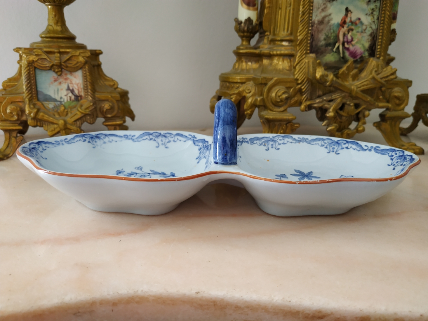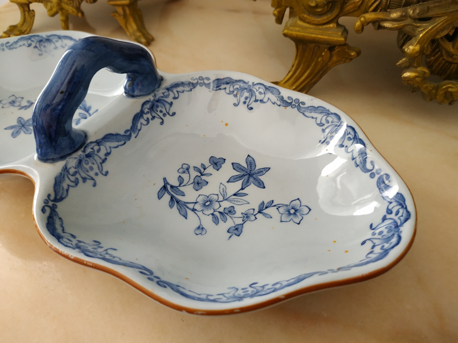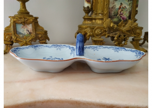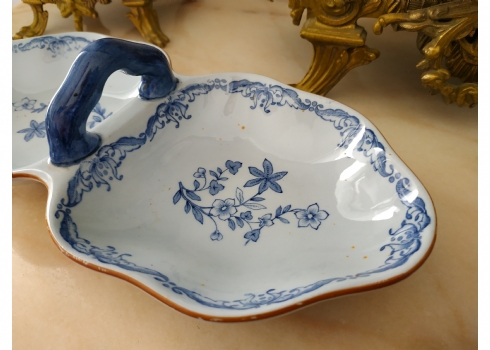 כלי שבדי ישן להגשה וכיבוד, עשוי פאיינס מעוטר בכחול