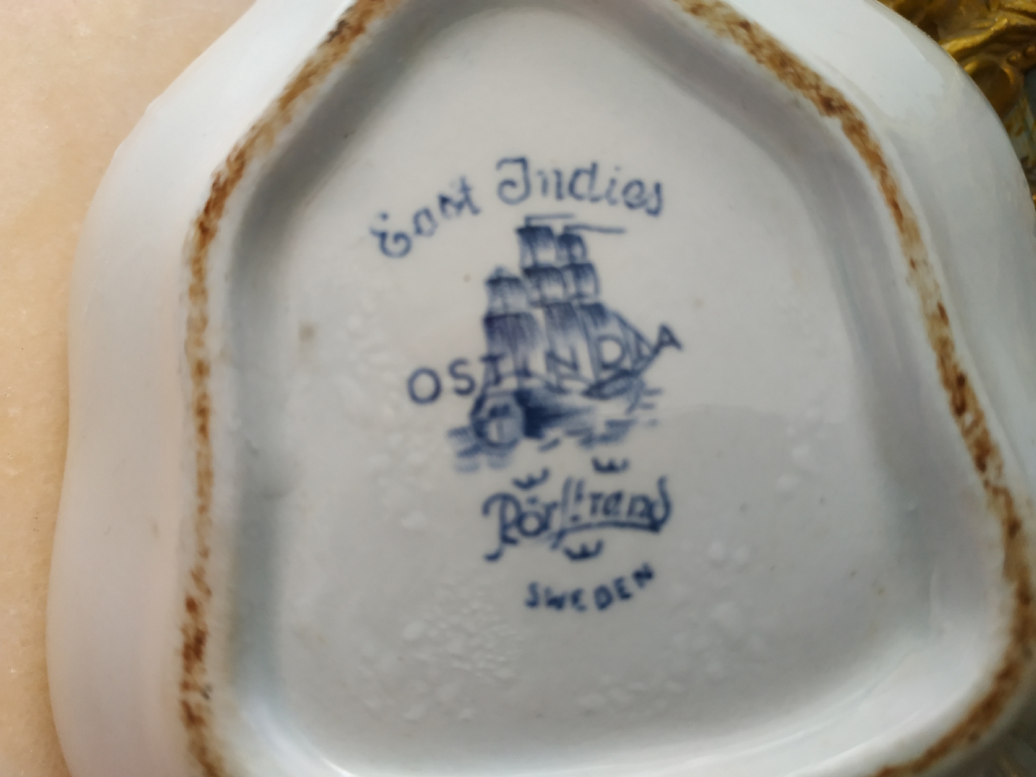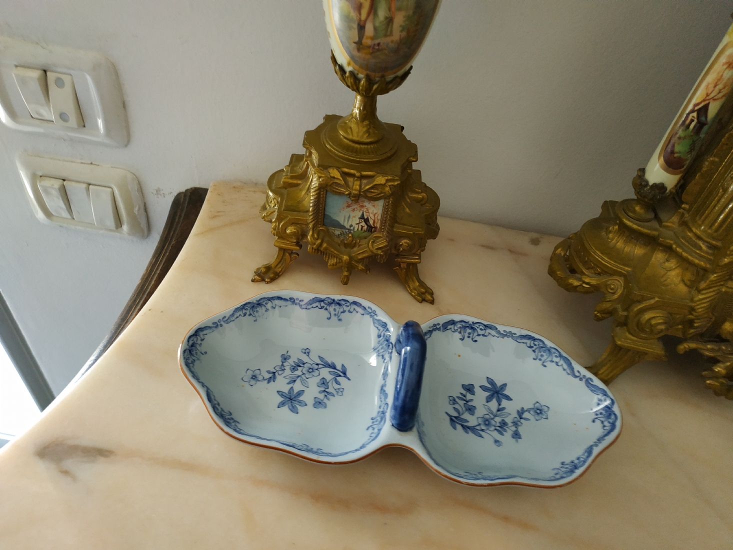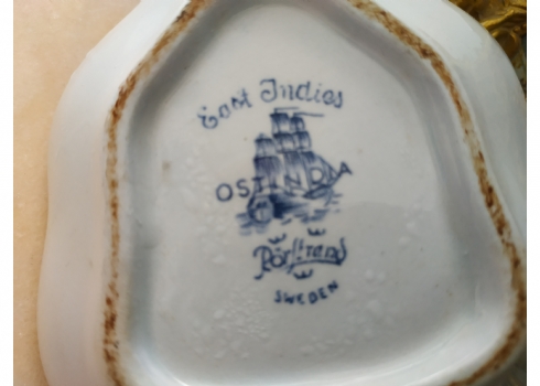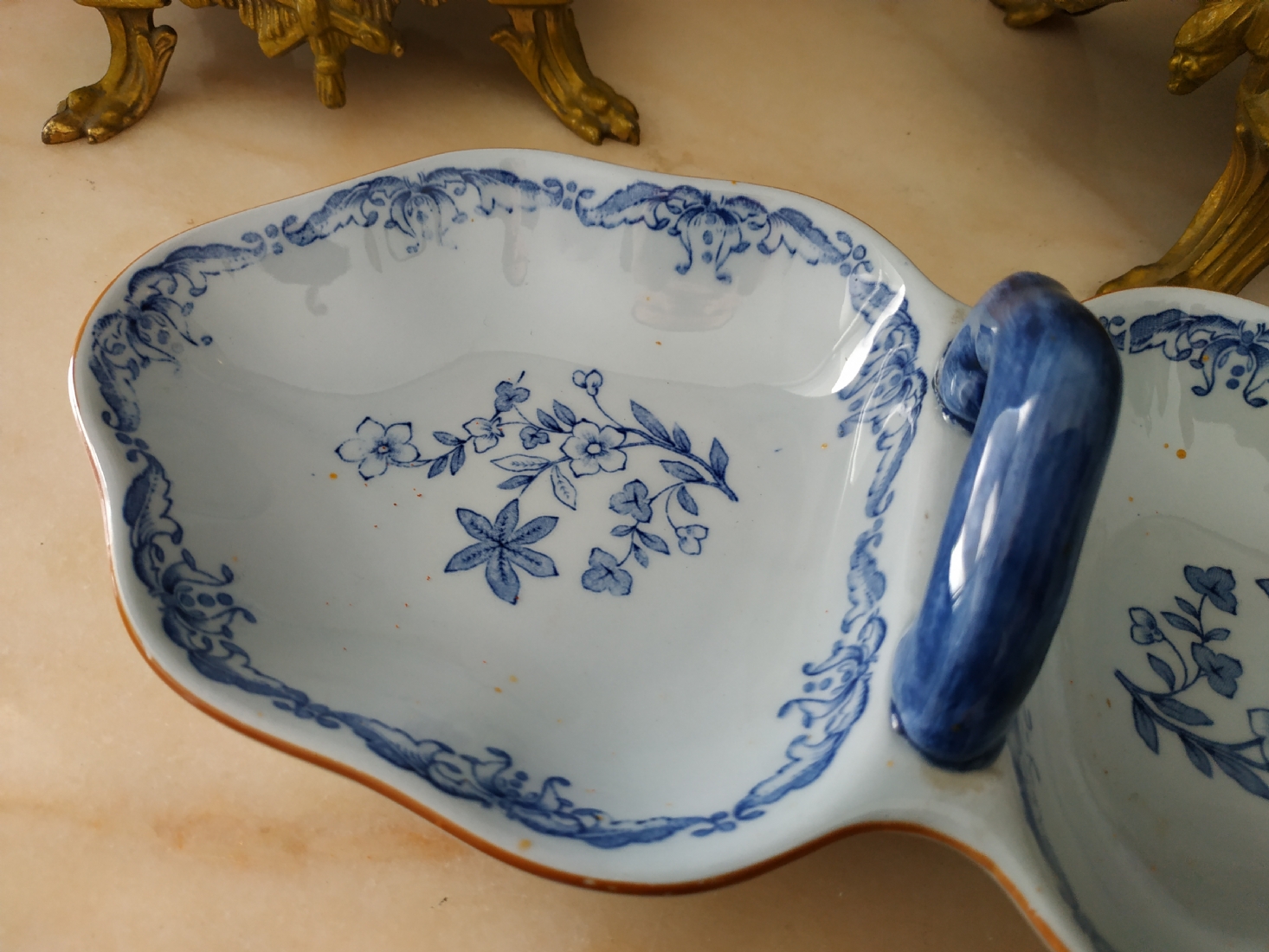 כלי שבדי ישן להגשה וכיבוד, עשוי פאיינס מעוטר בכחול