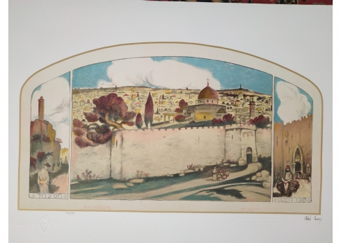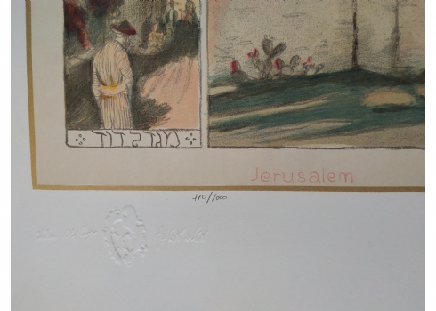 מספר הפריט בקטלוג 25אבל פן (Abel Pann) - ליטוגרפיה חתומה בפלטה, ממוספרת: 710/1000, נושא גם חותם של 'אטליה אבל פן / Atalier Abel Pan', מידות: 49X68.5 ס"מ.